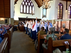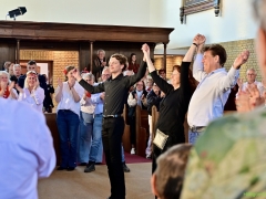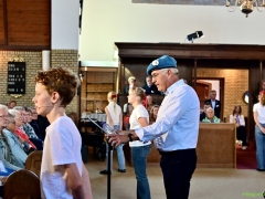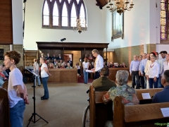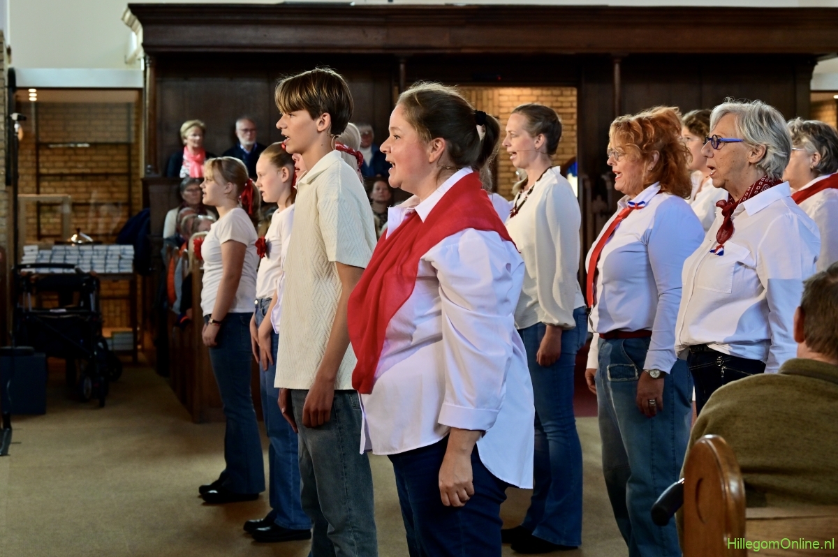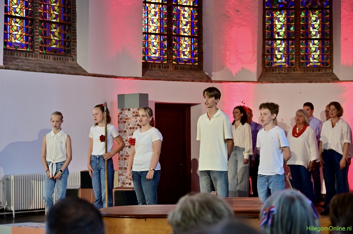 Hillegom – In de Maartenskerk werd op drie momenten gedurende Bevrijdingsdag het indrukwekkende muziektheater Leve(n) de vrijheid opgevoerd. Een gezelschap van Hillegommers in de leeftijd van 11 tot 75 jaar, die het stuk in de afgelopen twee maanden hebben gerepeteerd. Met succes, dat was duidelijk.