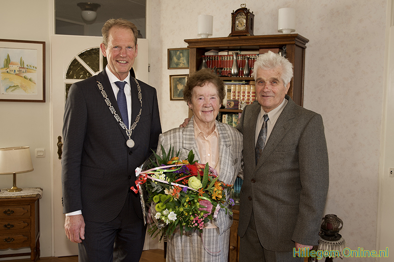 Woensdagmiddag 3 Oktober kwam Burgermeester Arie van Erk het bruidspaar feliciteren met hun 60 jarig huwelijk en had ook nog een mooi boeket bloemen meegenomen.
