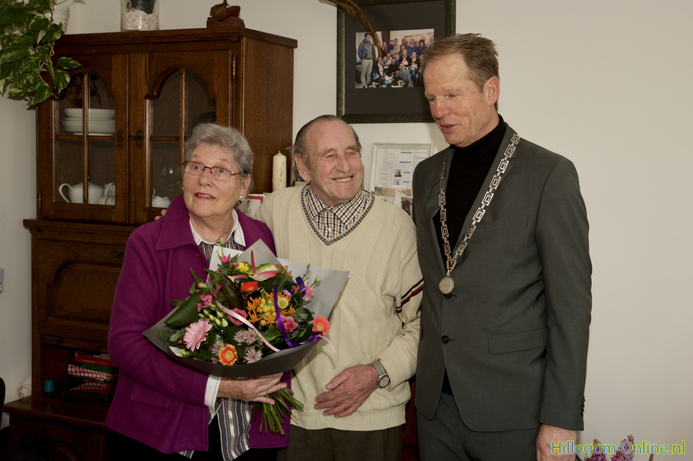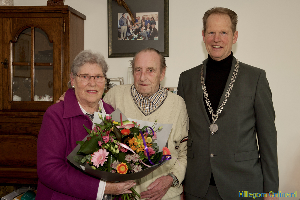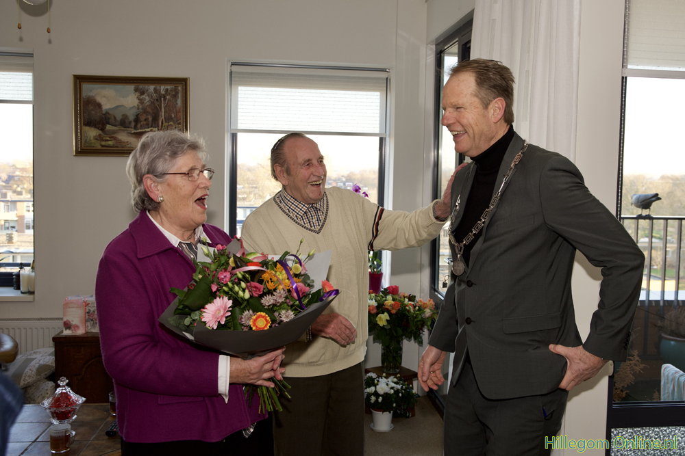 Hillegom – Het Bruidspaar dhr. en mevr. van Leeuwen waren op zondag 29 december 60 jaar getrouwd. Burgemeester Arie van Erk bracht op maandag 30 december een bezoek aan het bruidspaar.