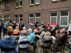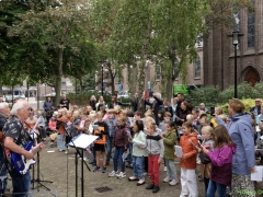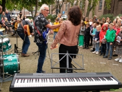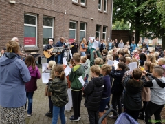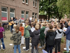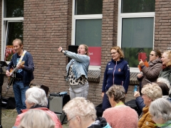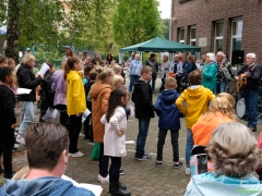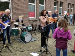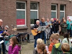 Hillegom – Vrijdagmorgen hadden de Johannesschool, Zorgbalans en de Hillegomse muziekschool een burendag georganiseerd op het terrein van ontmoetingscentrum Bollenstroom. Het festival werd geopend door wethouder Karin Hoekstra. Er waren twee sessies waarin de groepen 5 en 6 van de Johannesschool de ingestudeerde liedjes ten gehore brachten. In het publiek zaten bezoekers van de Bollenstroom en ouders van de scholieren. Er werd meegezongen en gedanst op muziek van Annie M.G. Schmidt o.l.v. de band “Sing and Swing”. Gezien de grote belangstelling was het een succes.