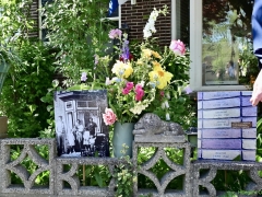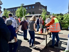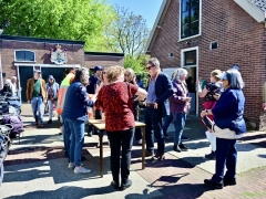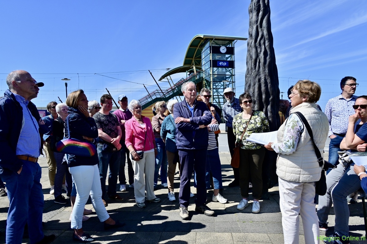 Bij het station hoorden we over 12 november 1944, de dag dat op het station van Hillegom een lange trein stond met wagons vol Rotterdamse en Schiedamse mannen die werden weggevoerd, Een dag waarop veel Hillegommers eten inzamelden en hielpen. Een dag die nog in vele geheugens gegrift staat. Tot slot kwamen we terug bij Kwekerij Veelzorg, waar nog drinken en lekkers klaarstond.