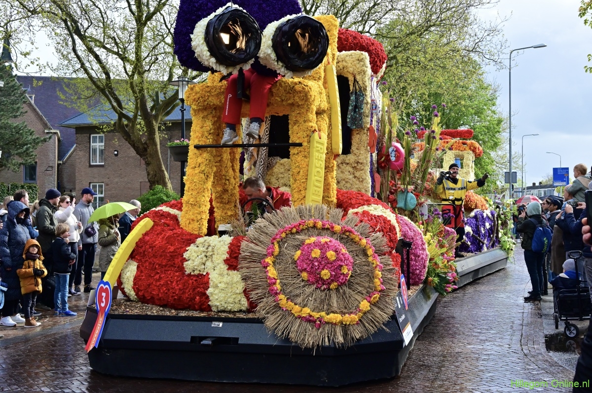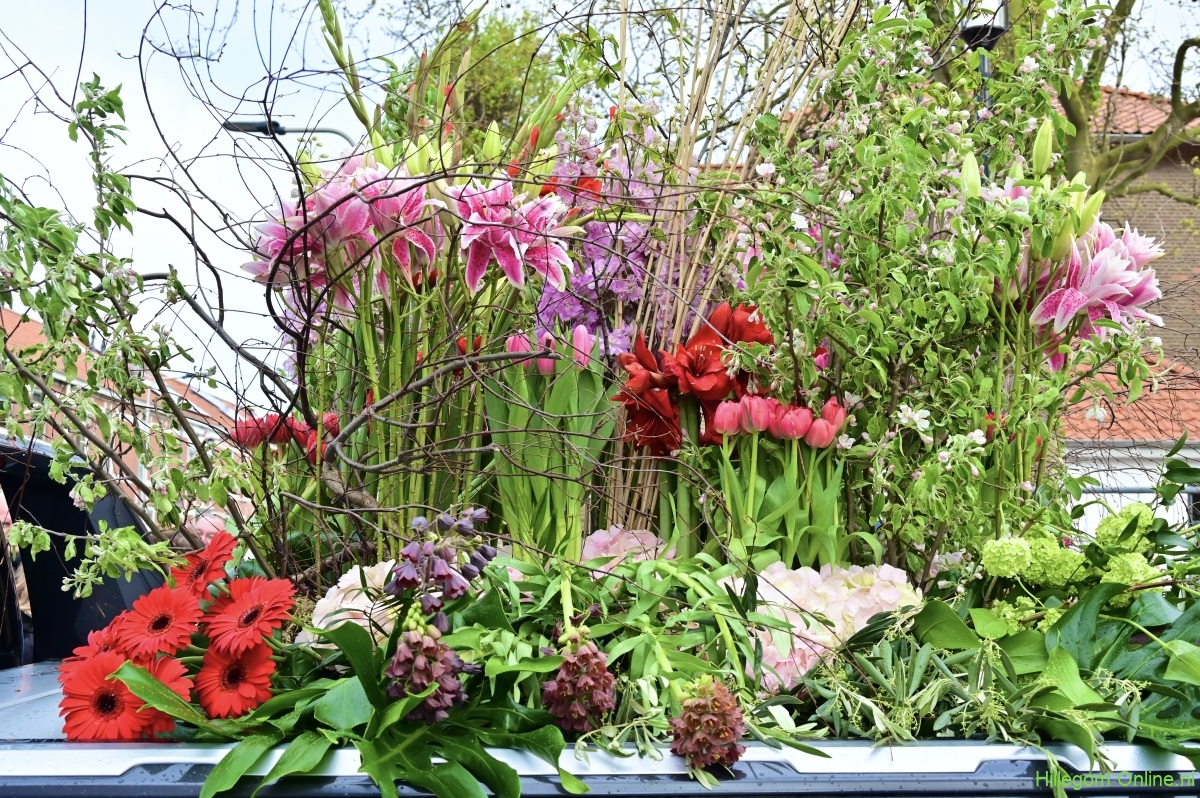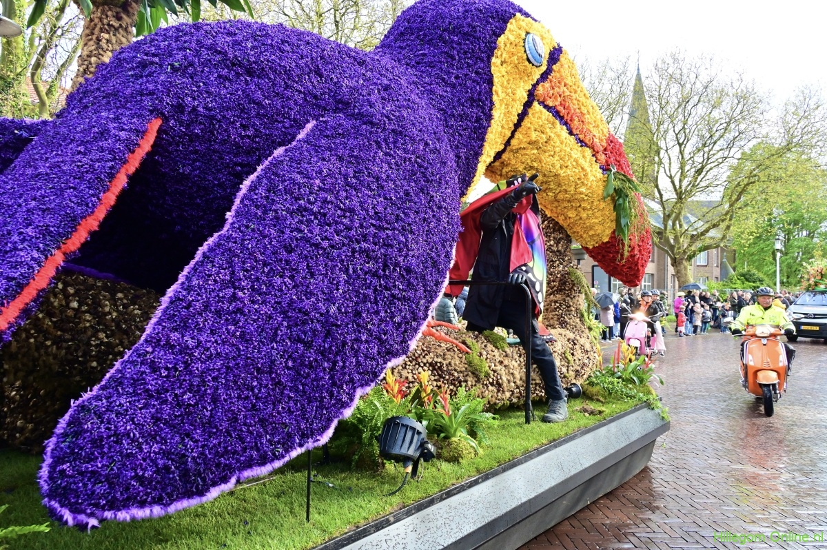 Hillegom – In het decor van de Jozefkerk zag ik het bloemencorso aan het begin van de hoofdstraat voorbijtrekken. Prachtig was het bloemencorso dit jaar. Speels de arrangementen. Kleurrijk. Met tal van figuranten. Ook burgemeester Arie van Erk was aanwezig; enthousiast zwaaiend op een praalwagen, een ontroerend beeld. Alles samen maakte dit jaarlijks kleurrijke plaatje compleet.