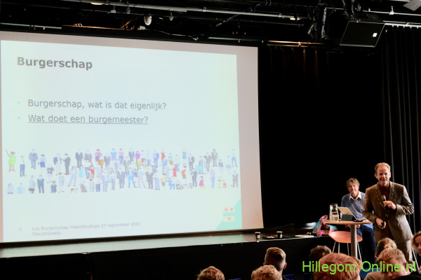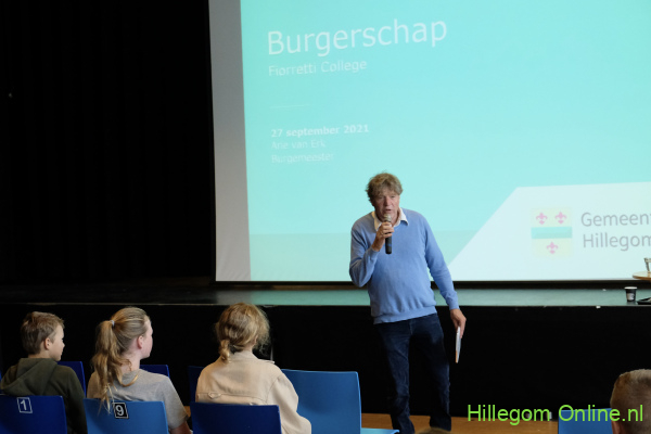 Hillegom – Maandag 27 september was burgemeester Arie van Erk te gast op het Fioretti College voor een les in burgerschap.