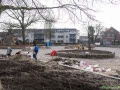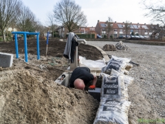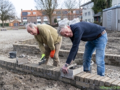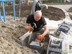 Hillegom – Afgelopen zaterdag waren buurtbewoners nog druk in de weer om de laatste muurtjes te metselen en andere klussen aan het park te doen. Deze week is de aannemer ook bezig met de laatste klussen. De lantaarnpalen zijn al geplaatst en de paden worden nu ook aangelegd.