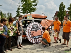 Hillegom – Zoals afgesproken keerden de auto’s van de Carbugrun vanmiddag om 13 uur terug in Hillegom, heelhuids en gelukkig nog rijdend. Luid toeterend kwamen ze bij Zomerzorg aan, opgewacht door een grote groep bekenden.