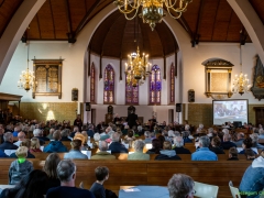 Hillegom – Na twee jaar afwezigheid was het dit jaar weer mogelijk om de herdenkingsbijeenkomst voor oorlogsslachtoffers plaats te laten vinden. Om 19u stroomde de Maartenskerk vol, aansluitend liepen de aanwezigen in stille tocht naar het Molenduin waar na de twee minuten stilte de kransen werden gelegd.