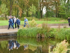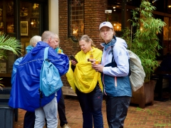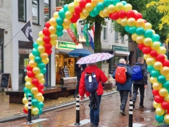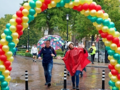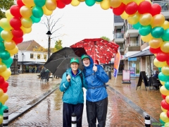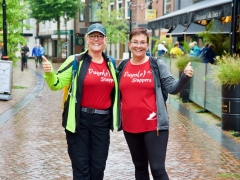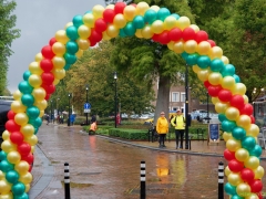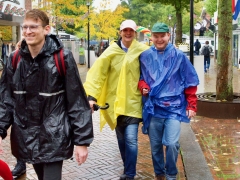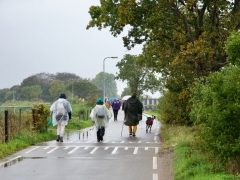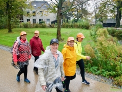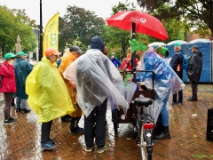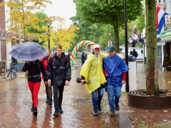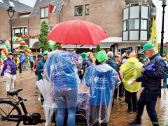 Hillegom – Op de eerste dag van de allereerste Duin- en Bollenvierdaagse voerden alle wandelroutes door ‘De hoofdstad van de Bollenstreek’ Hillegom. In alle vroegte vertrokken de eerste deelnemers voor een tocht van 40 km vanuit Lisse. Later die ochtend volgden de routes van 30km, 20km, 15km en 5km. Alle afstanden kregen een aanzienlijke hoeveelheid water te verduren door de aanhoudende regen. Dat mocht de pret niet drukken en in de Hillegomse Hoofdstraat was het de hele ochtend gezellig druk met alle wandelaars.