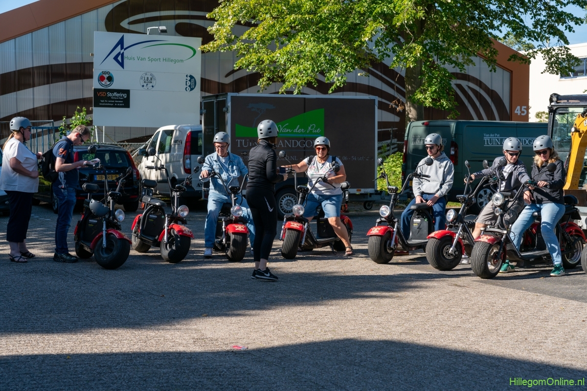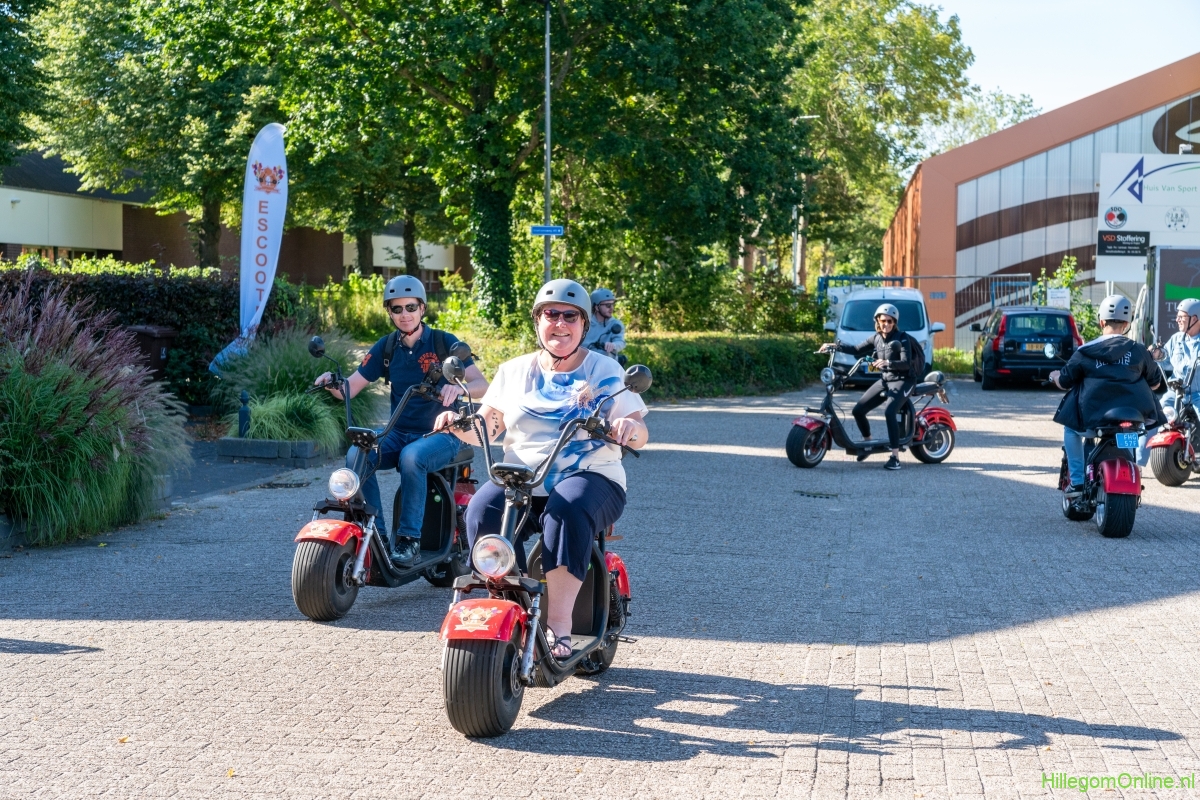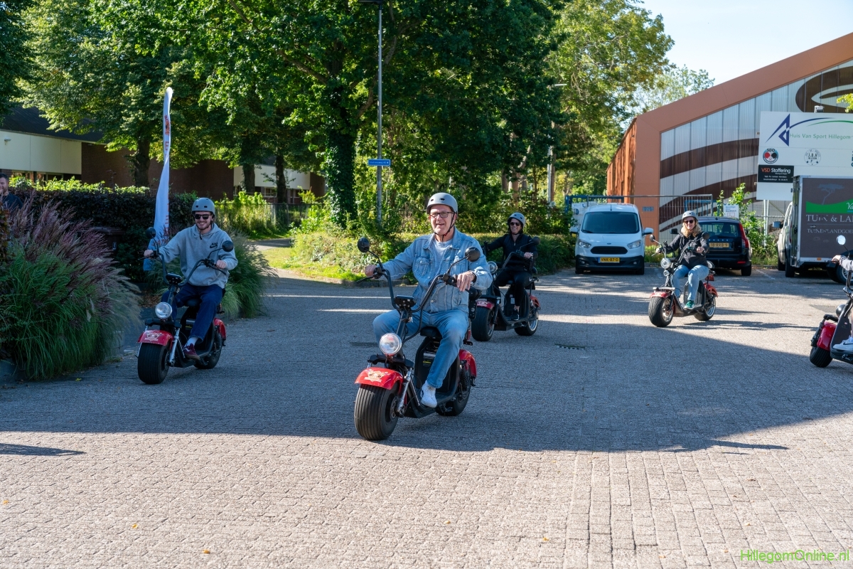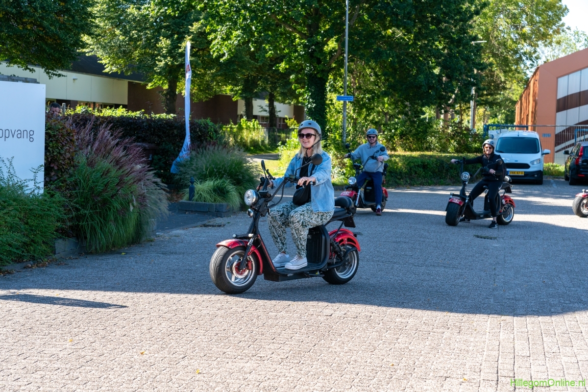 Hillegom – Ook dit jaar stond er weer een e-scooterrit op het programma. Vanuit de verhuurlocatie aan de Stationsweg 27 vertrokken de deelnemers voor een tocht door de bollenstreek. Er kon zowel solo als met een mederijder achterop gereden worden. Voor vertrek werd ter plaatse betaald en wie wilde deelnemen moest beschikken over een geldig scooterrijbewijs.