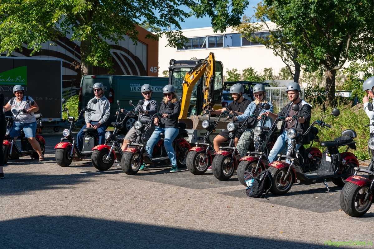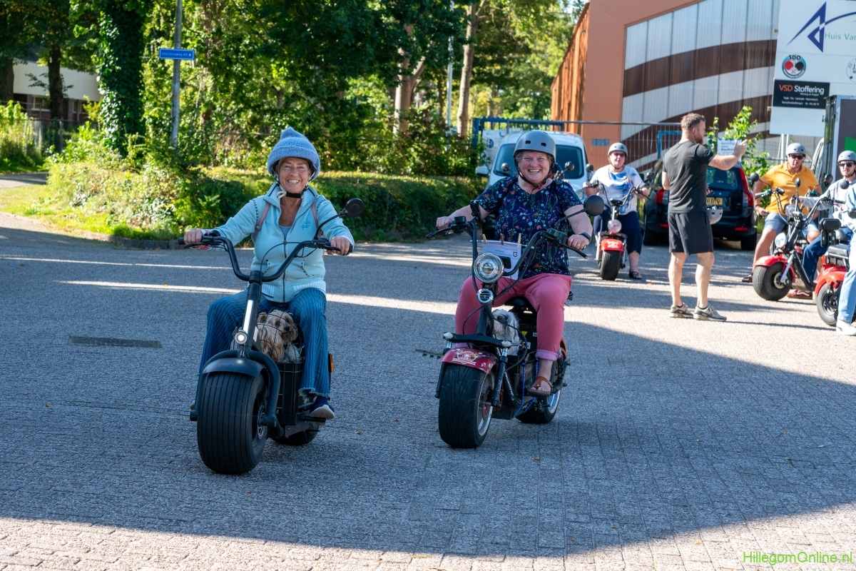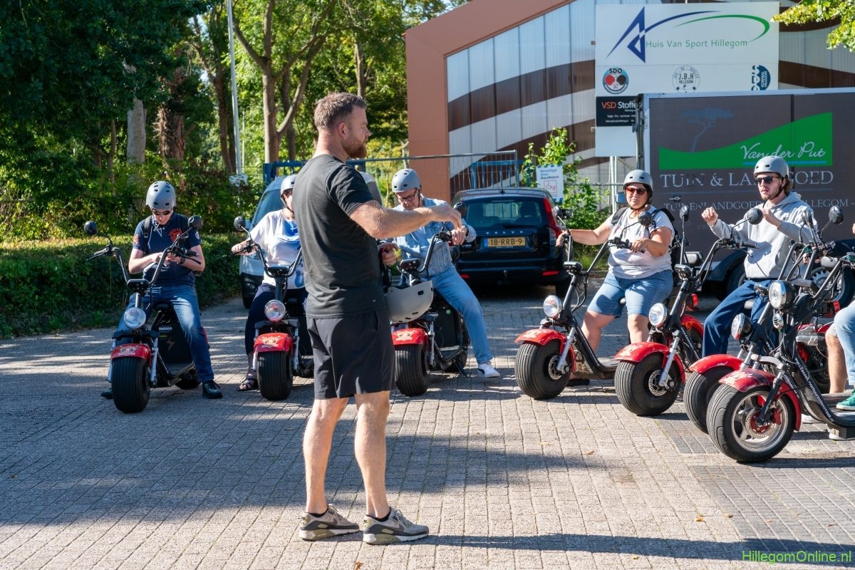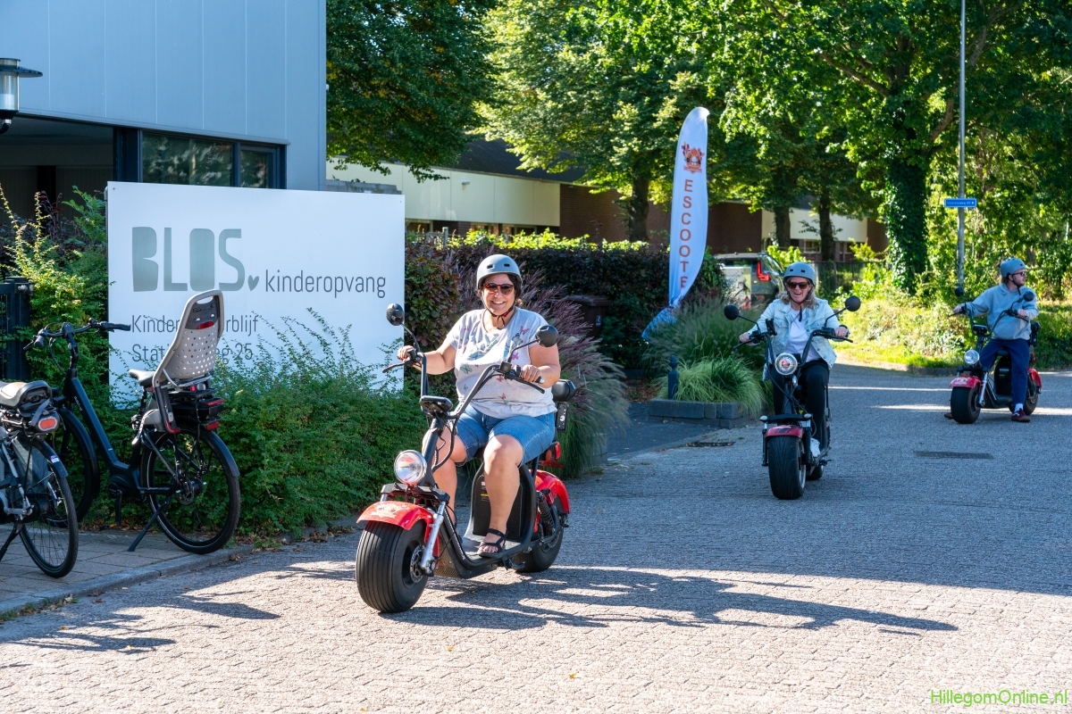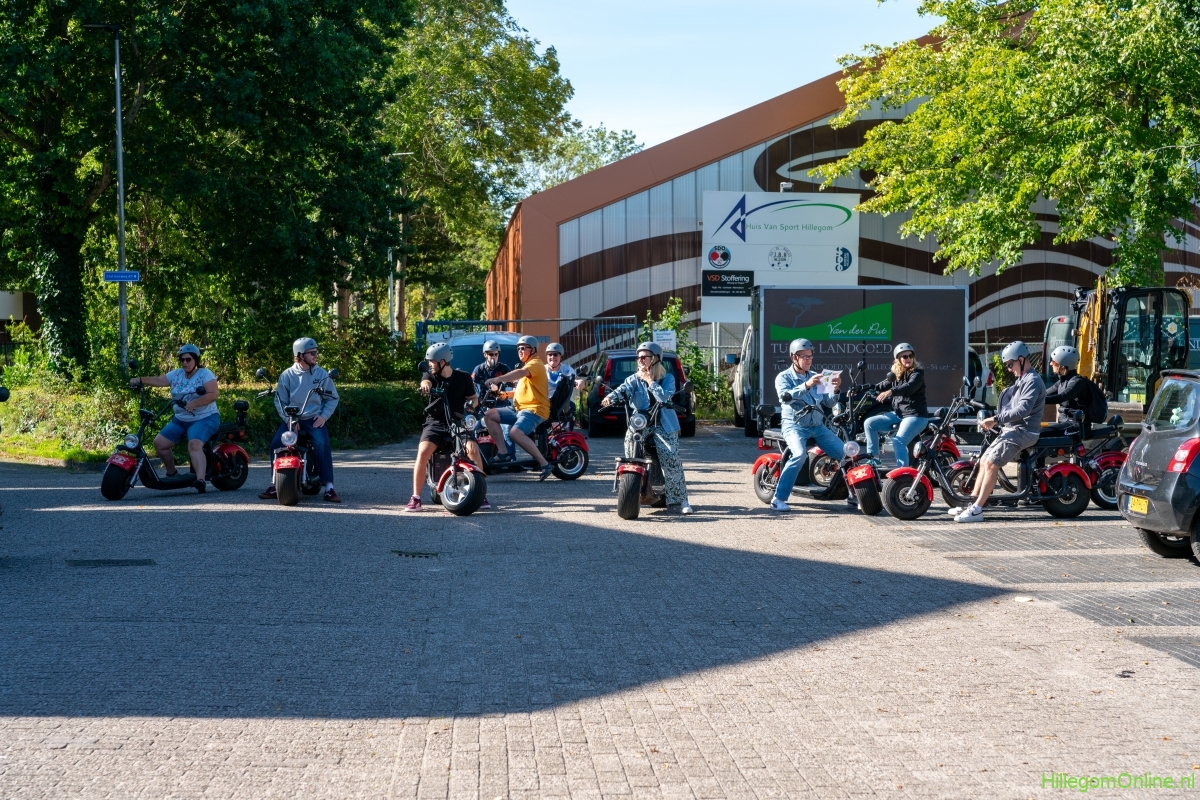 Hillegom – Ook dit jaar stond er weer een e-scooterrit op het programma. Vanuit de verhuurlocatie aan de Stationsweg 27 vertrokken de deelnemers voor een tocht door de bollenstreek. Er kon zowel solo als met een mederijder achterop gereden worden. Voor vertrek werd ter plaatse betaald en wie wilde deelnemen moest beschikken over een geldig scooterrijbewijs.