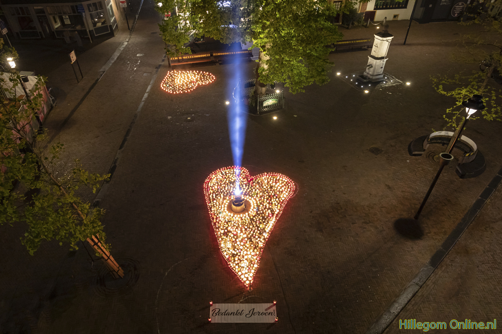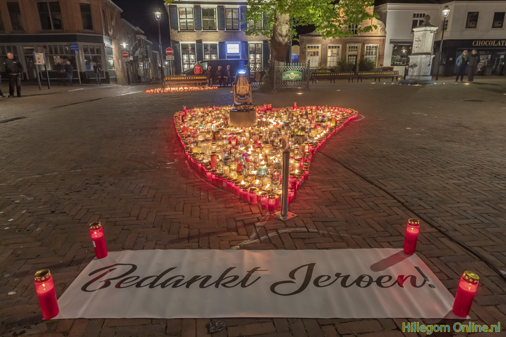 Om een laatste eer aan Jeroen te bewijzen heeft Horeca Hillegom de actie “Een kaars voor Jeroen” opgezet. Honderden, misschien wel duizenden kaarsen, werden hiermee ingezameld. Op 30 april werden deze in de vorm van een hart gezet op het Pompplein.