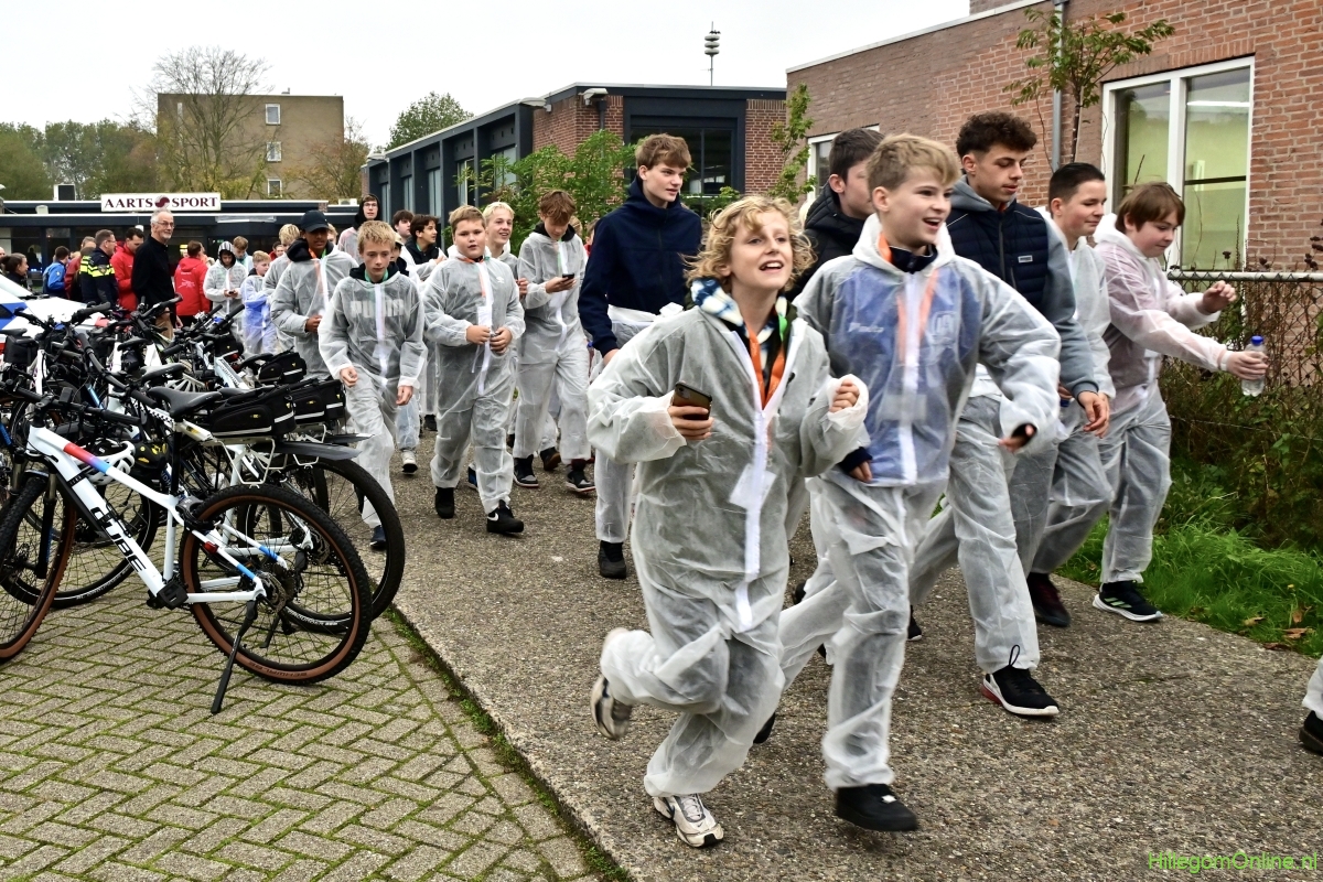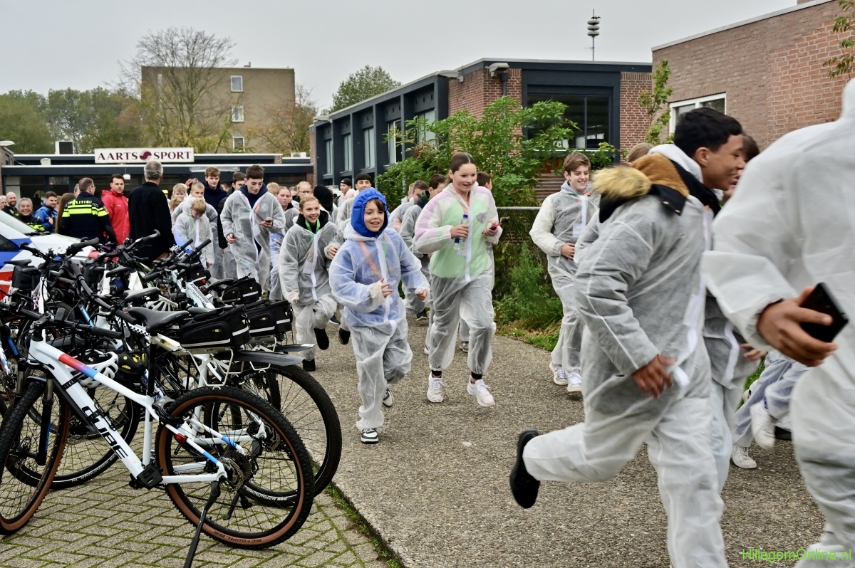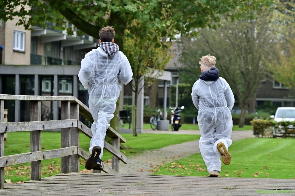 Hillegom – Wie nietsvermoedend op vrijdag 1 november door Elsbroek liep, moet gedacht hebben dat er iets bijzonders gebeurd was. Overal reed namelijk politie en handhaving rond en er waren veel vluchtende jongeren in witte overalls te zien. Er was ook iets bijzonders aan de gang: voor de eerste keer werd ‘The Hunt’ georganiseerd; honderd jongeren probeerden anderhalf uur uit handen van de politie te blijven.