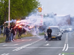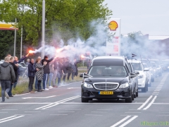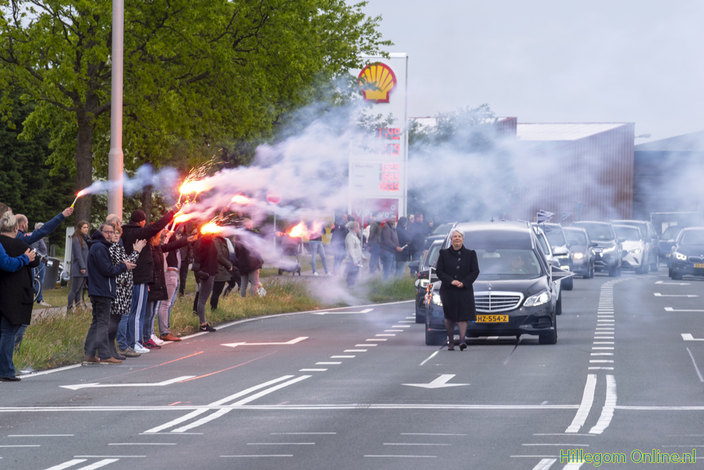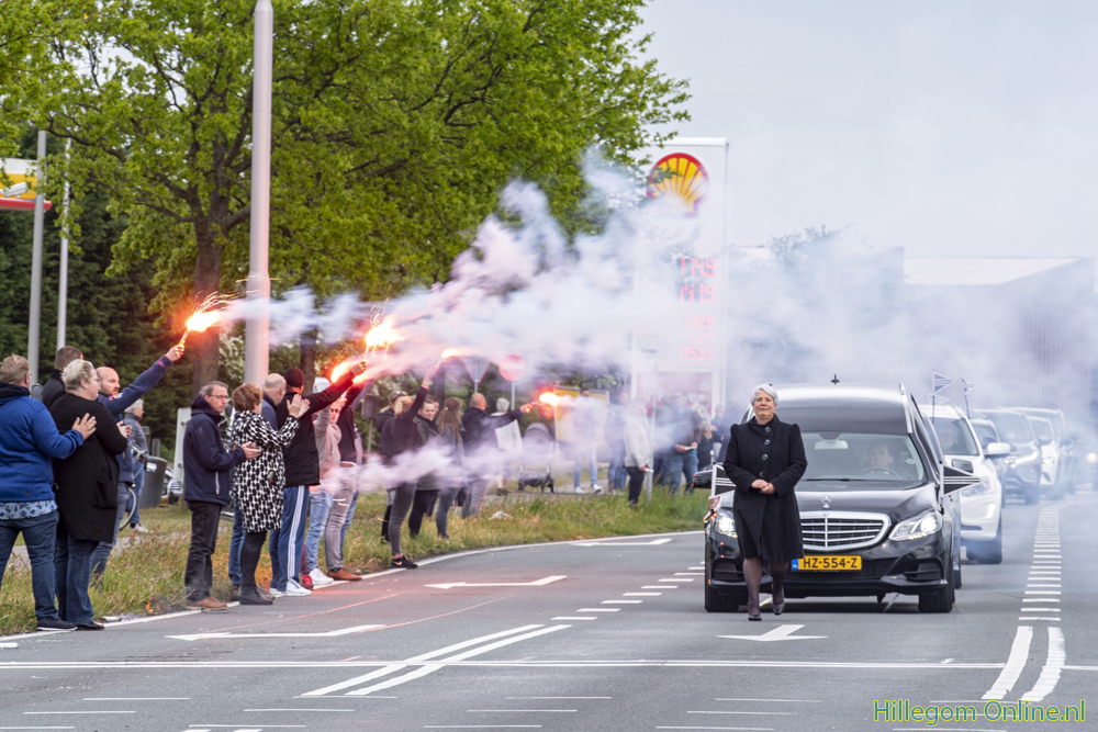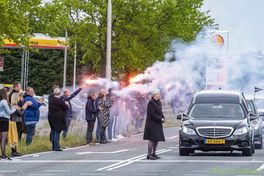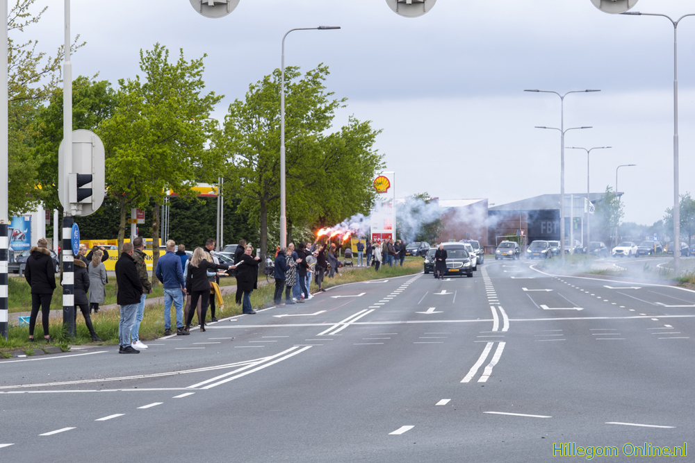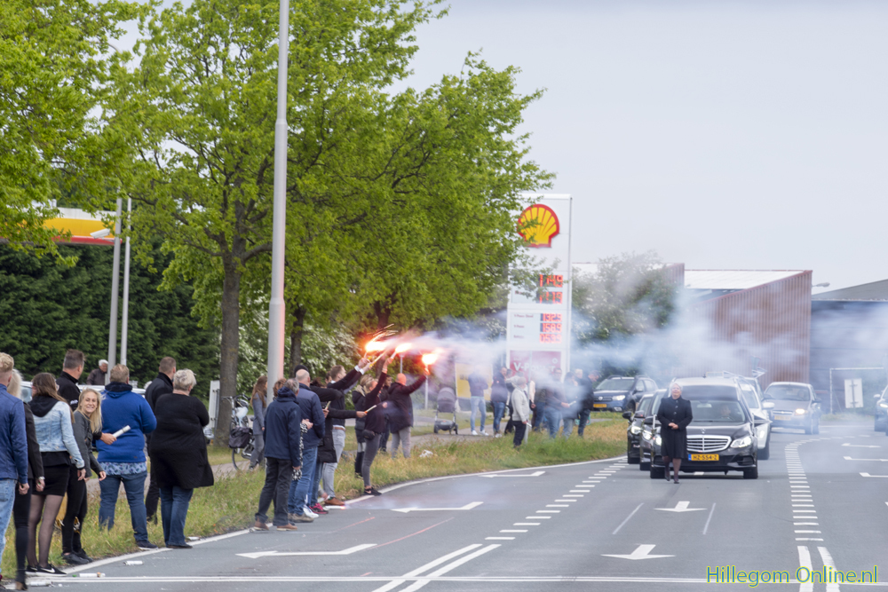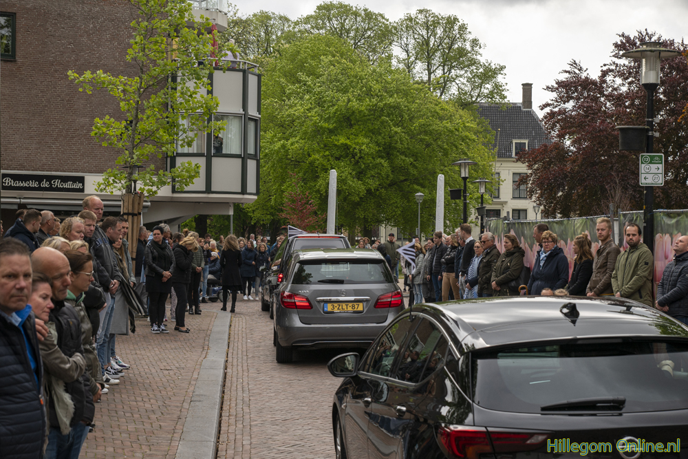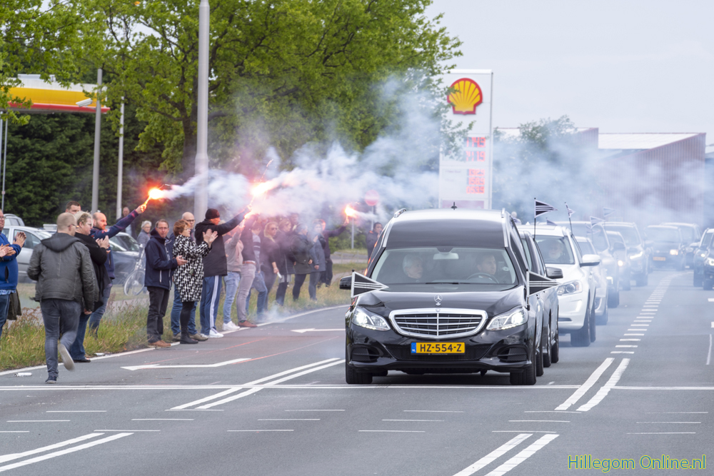 Hillegom – Op zaterdag 2 mei was de uitvaart van Jeroen Muller. De stoet reed door Hillegom, langs de belangrijke plekken waar Jeroen heeft gewerkt. Zo kwamen ze langs Puntje-Puntje, De Houttuin en Murphy’s Law. Langs deze hele route stonden enorm veel Hillegommers om Jeroen de laatste eer te bewijzen. Bij het uitrijden van Hillegom stonden nog vele Hillegommers met fakkels.