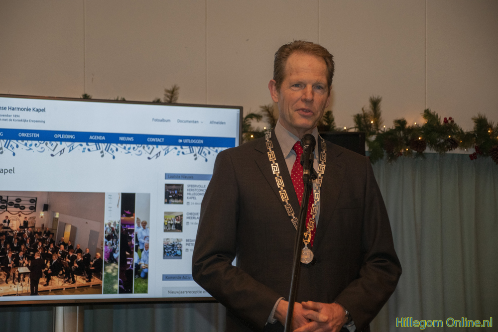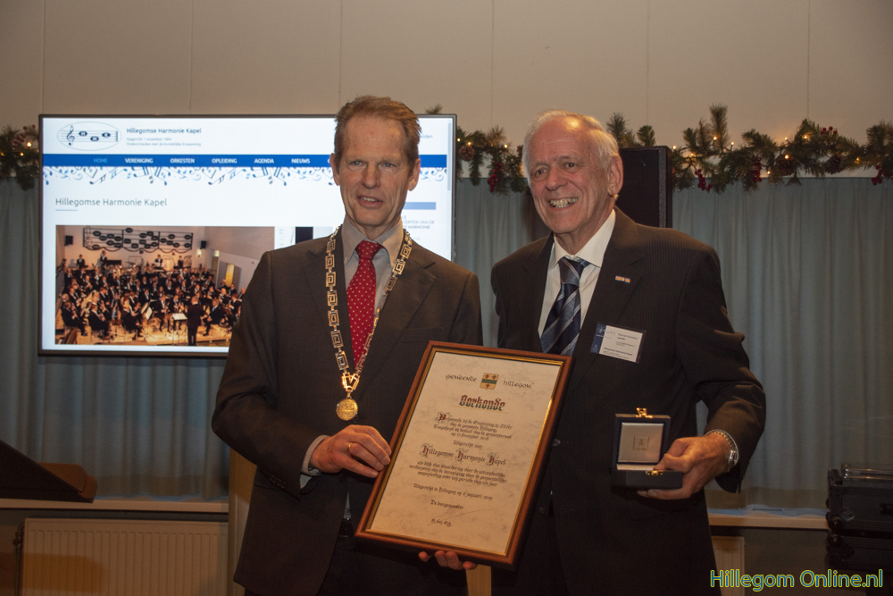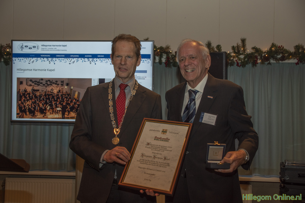 Hillegom – Zondag 6 januari hield de Hillegomse Harmonie Kapel haar nieuwjaarsreceptie. De verrassing bleek groot toen burgemeester Arie van Erk onaangekondigd deze receptie bezocht en daarna ook nog het podium betrad met wel een hele bijzondere mededeling. Dit jaar bestaat de Hillegomse Harmonie Kapel 125 jaar. Genoeg reden voor de gemeenteraad om de jubilerende muziekvereniging de Gemeentelijke erepenning toe te kennen.