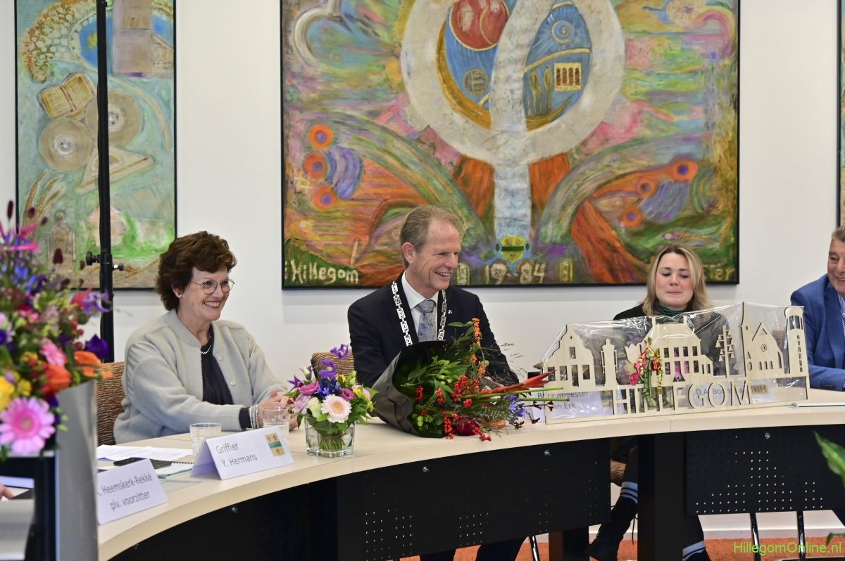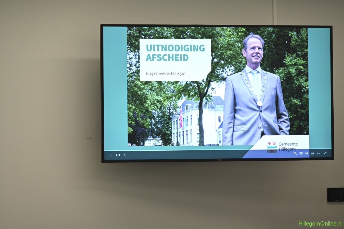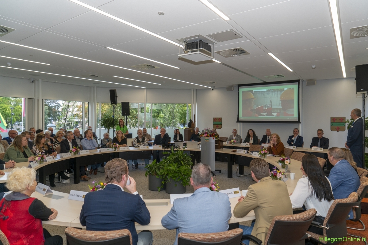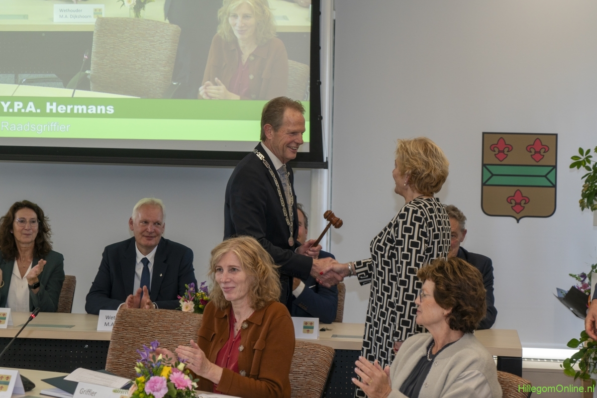 Hillegom – Dinsdagmiddag 22 oktober was er een speciale raadsvergadering in verband met het afscheid van Burgemeester Arie van Erk, die met pensioen gaat. Symbolisch droeg de burgemeester de hamer over, waarna hij een andere plek aan de ronde tafel kreeg.