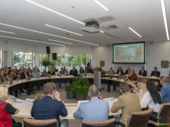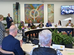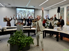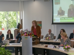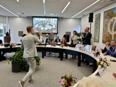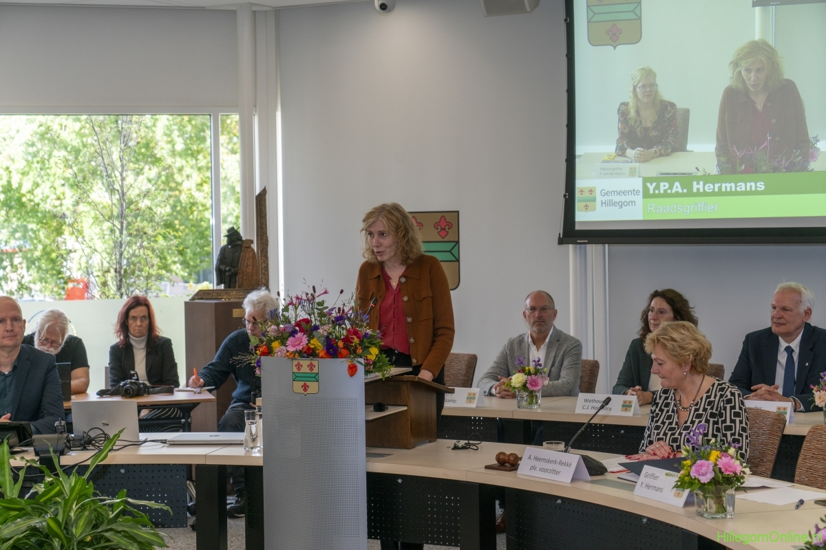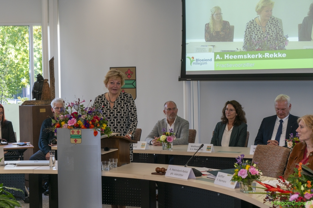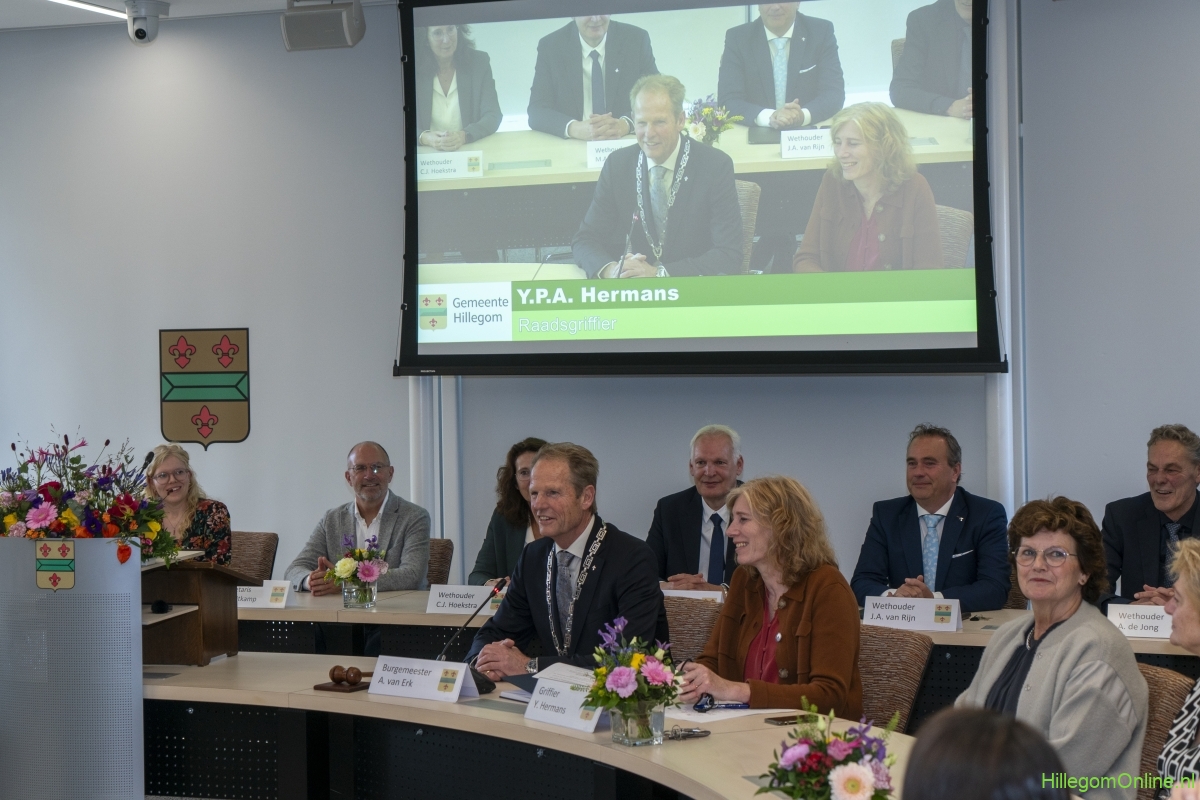 Hillegom – Dinsdagmiddag 22 oktober was er een speciale raadsvergadering in verband met het afscheid van Burgemeester Arie van Erk, die met pensioen gaat. Symbolisch droeg de burgemeester de hamer over, waarna hij een andere plek aan de ronde tafel kreeg.