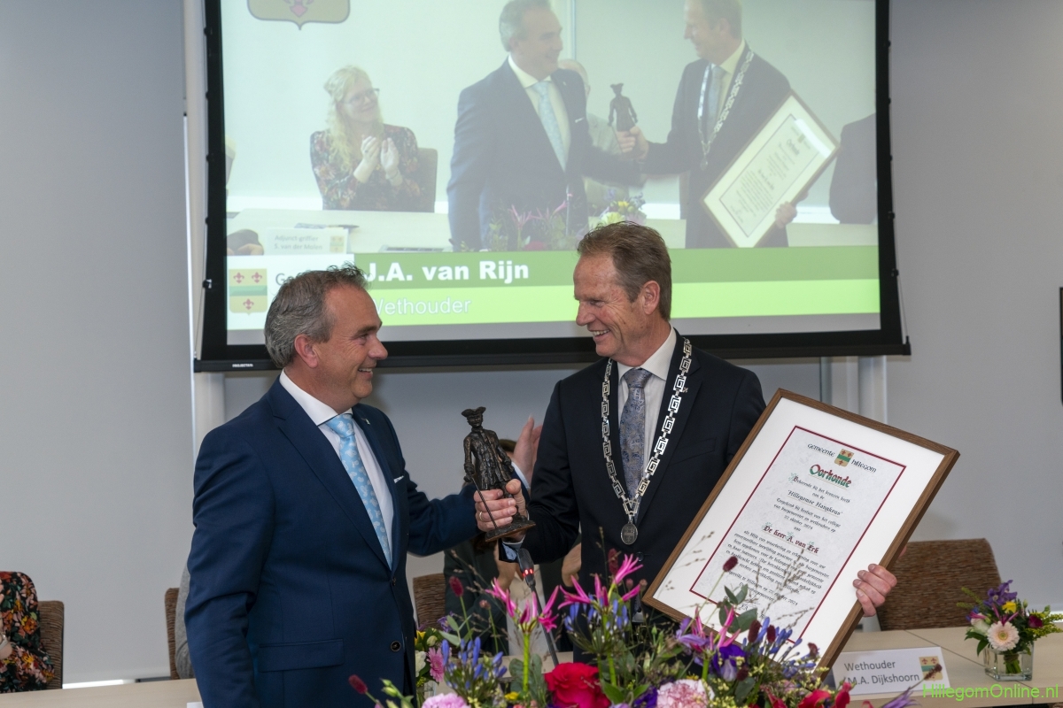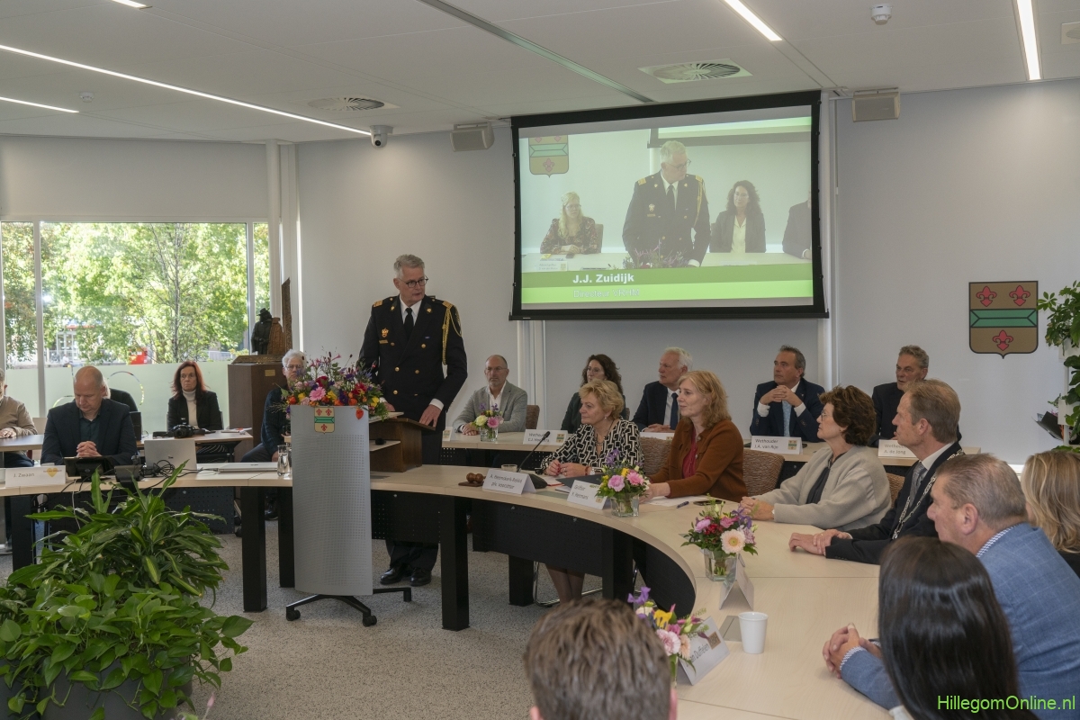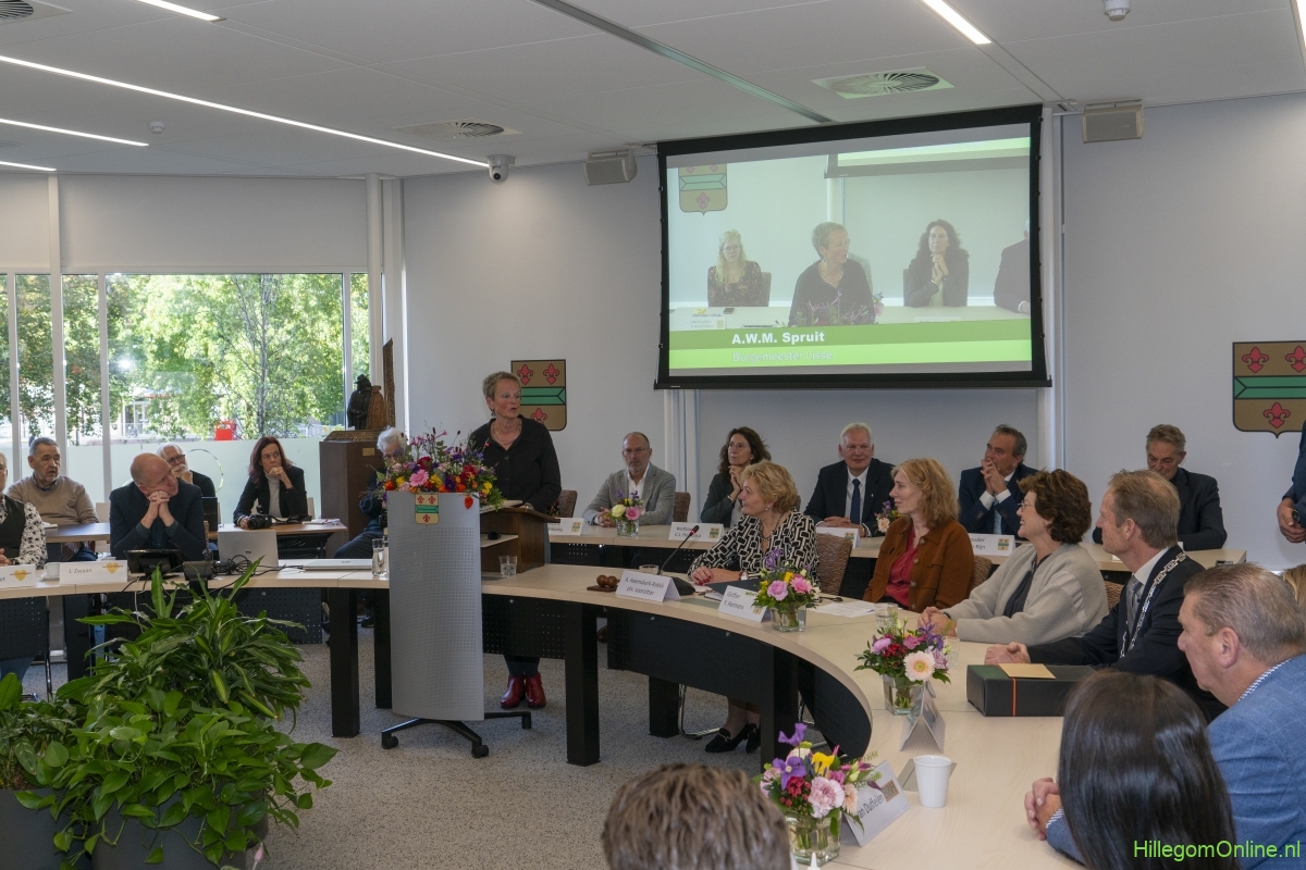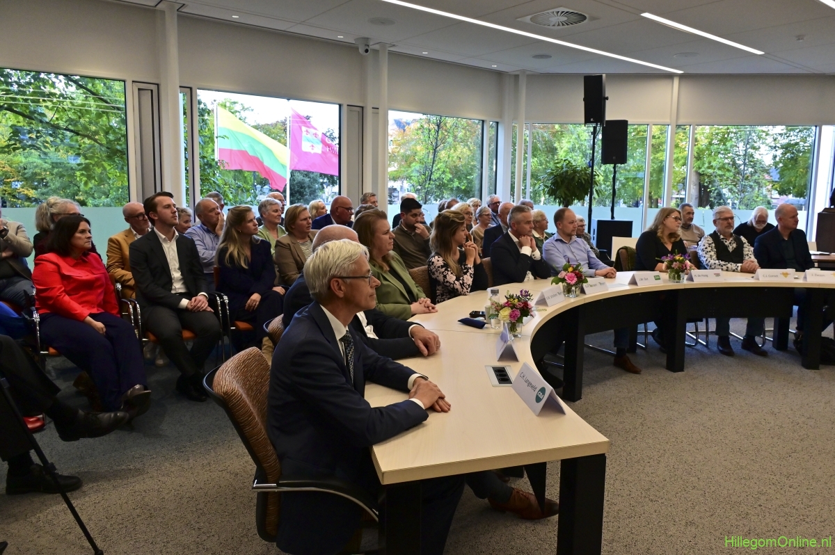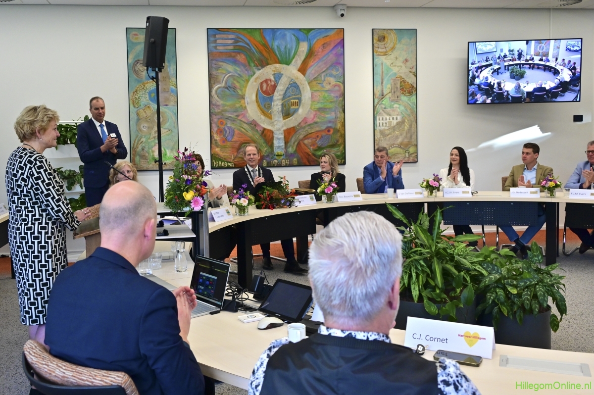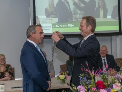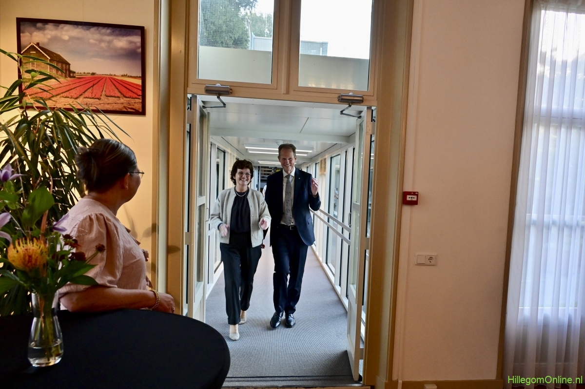 In diverse speeches hoorden we over zijn enorme inzet en warme betrokkenheid. Wethouder Jan van Rijn overhandigde de burgemeester de Hillegomse Hangkous, als dank voor zijn jarenlange inzet. Nadat de burgemeester zelf nog had gesproken was het tijd de ambtsketting af te leggen. Jan van Rijn kreeg de ketting omgehangen, hij neemt de functie van burgemeester waar, totdat begin november de nieuwe burgemeester zal worden geïnstalleerd.