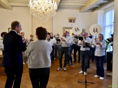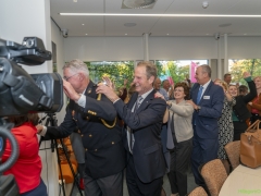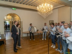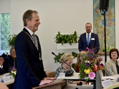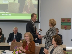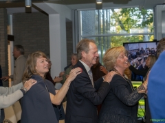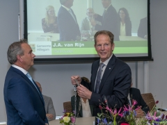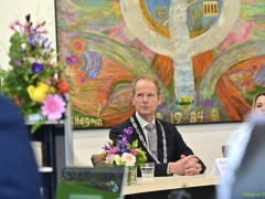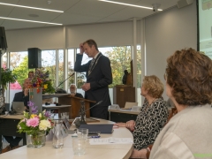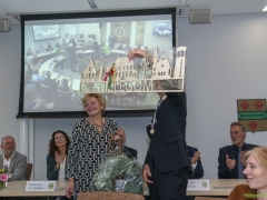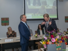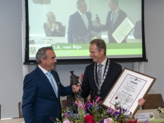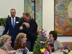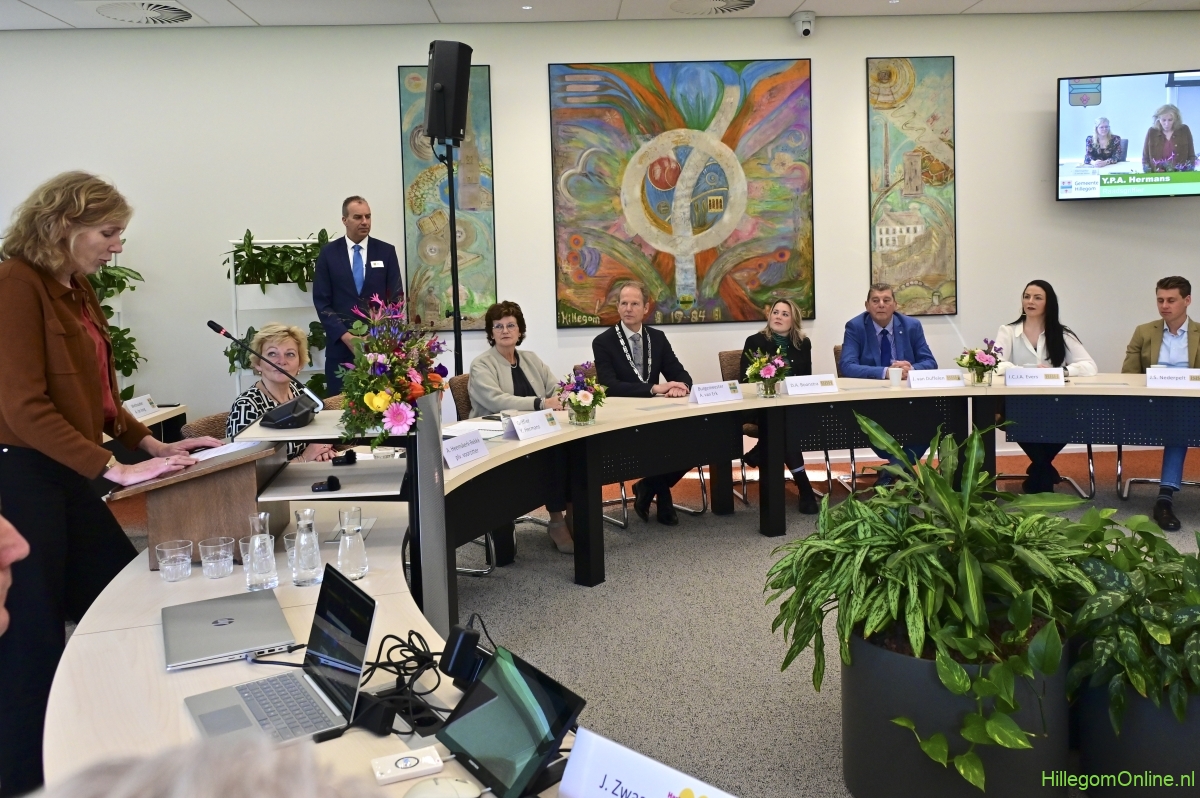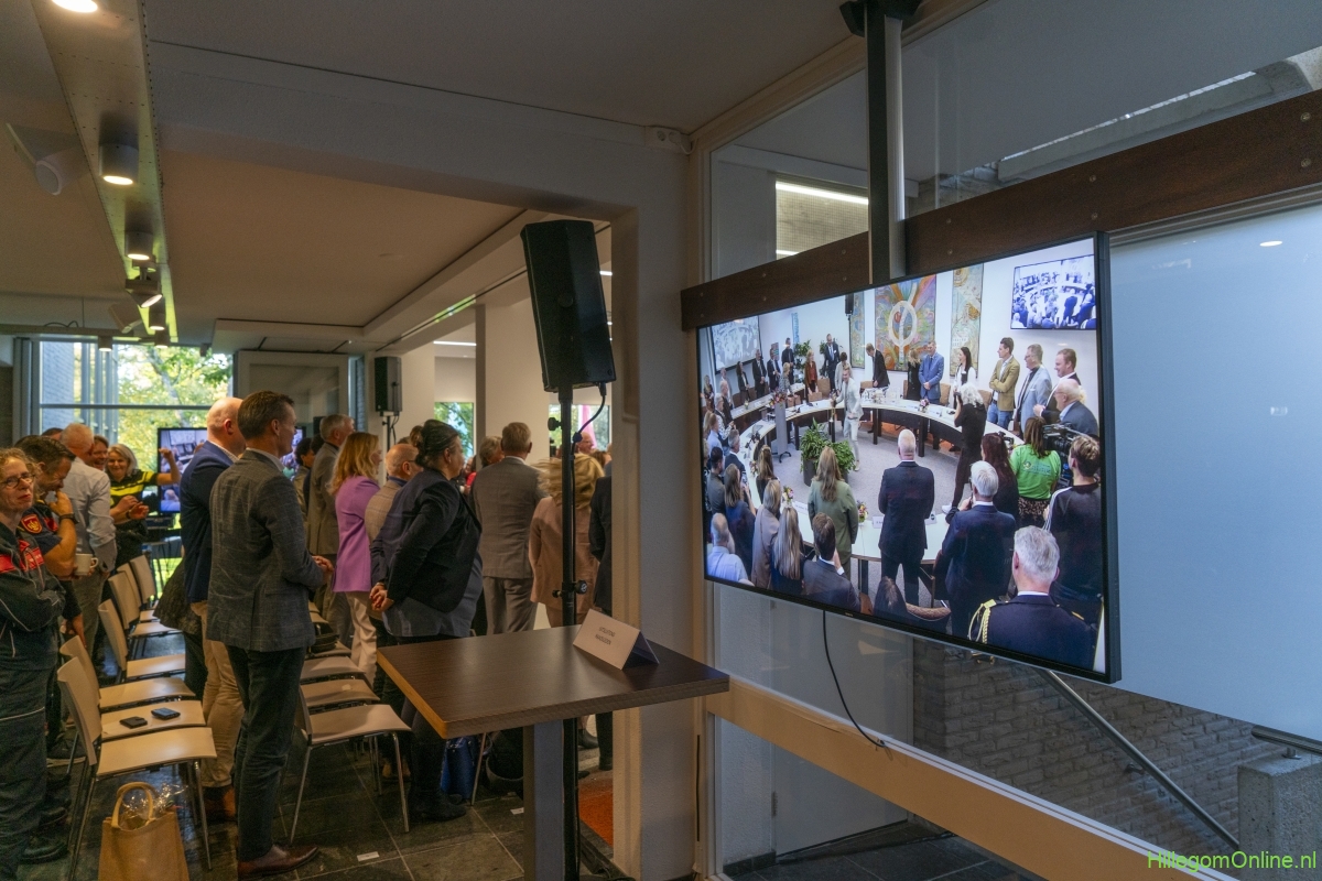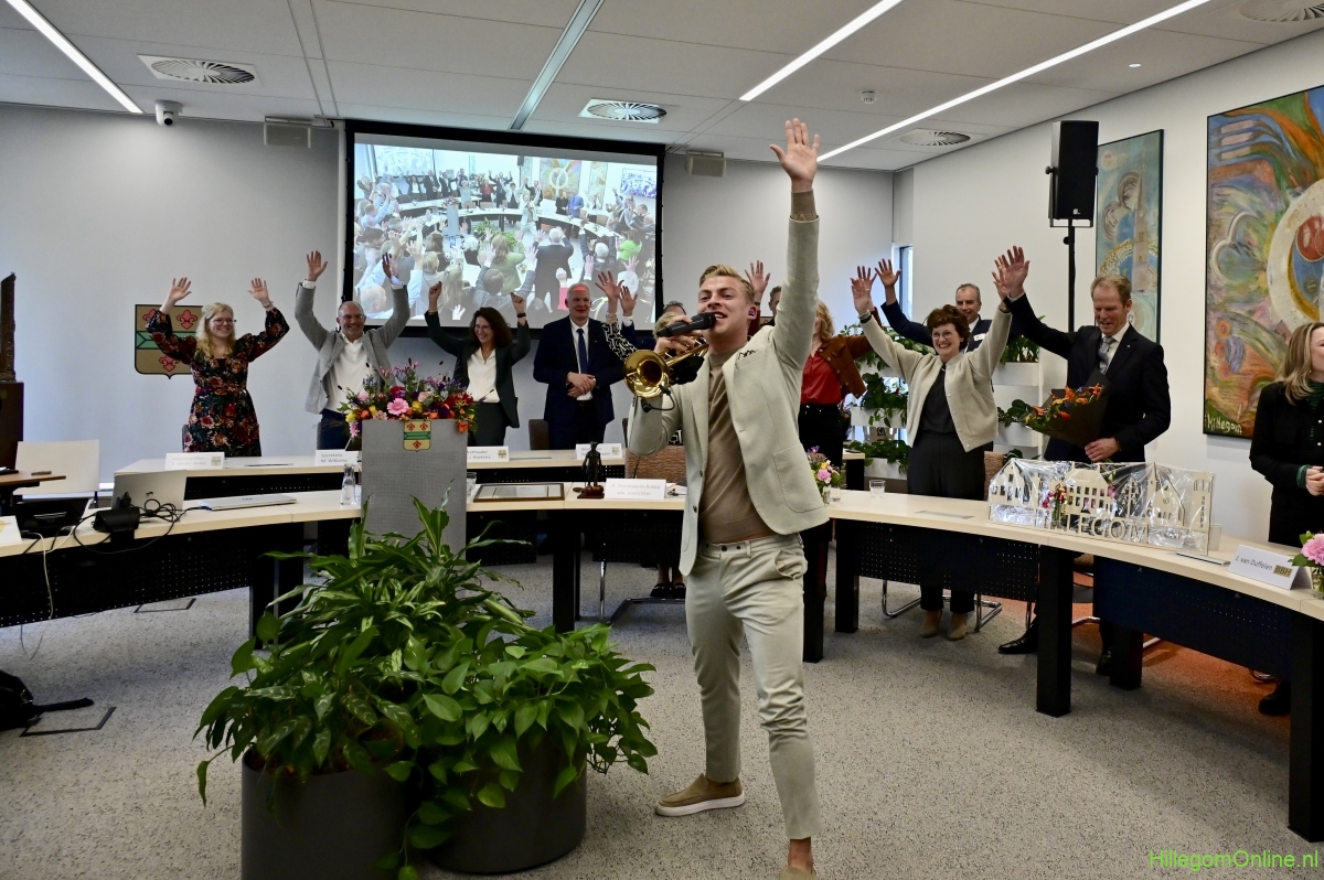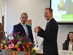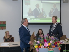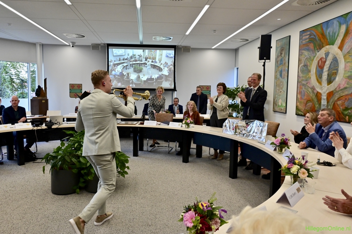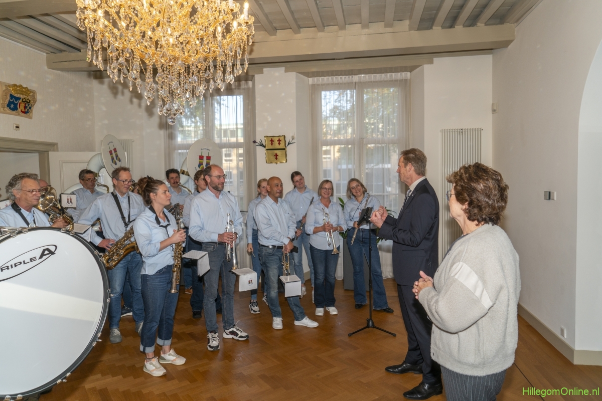 In diverse speeches hoorden we over zijn enorme inzet en warme betrokkenheid. Wethouder Jan van Rijn overhandigde de burgemeester de Hillegomse Hangkous, als dank voor zijn jarenlange inzet. Nadat de burgemeester zelf nog had gesproken was het tijd de ambtsketting af te leggen. Jan van Rijn kreeg de ketting omgehangen, hij neemt de functie van burgemeester waar, totdat begin november de nieuwe burgemeester zal worden geïnstalleerd.