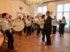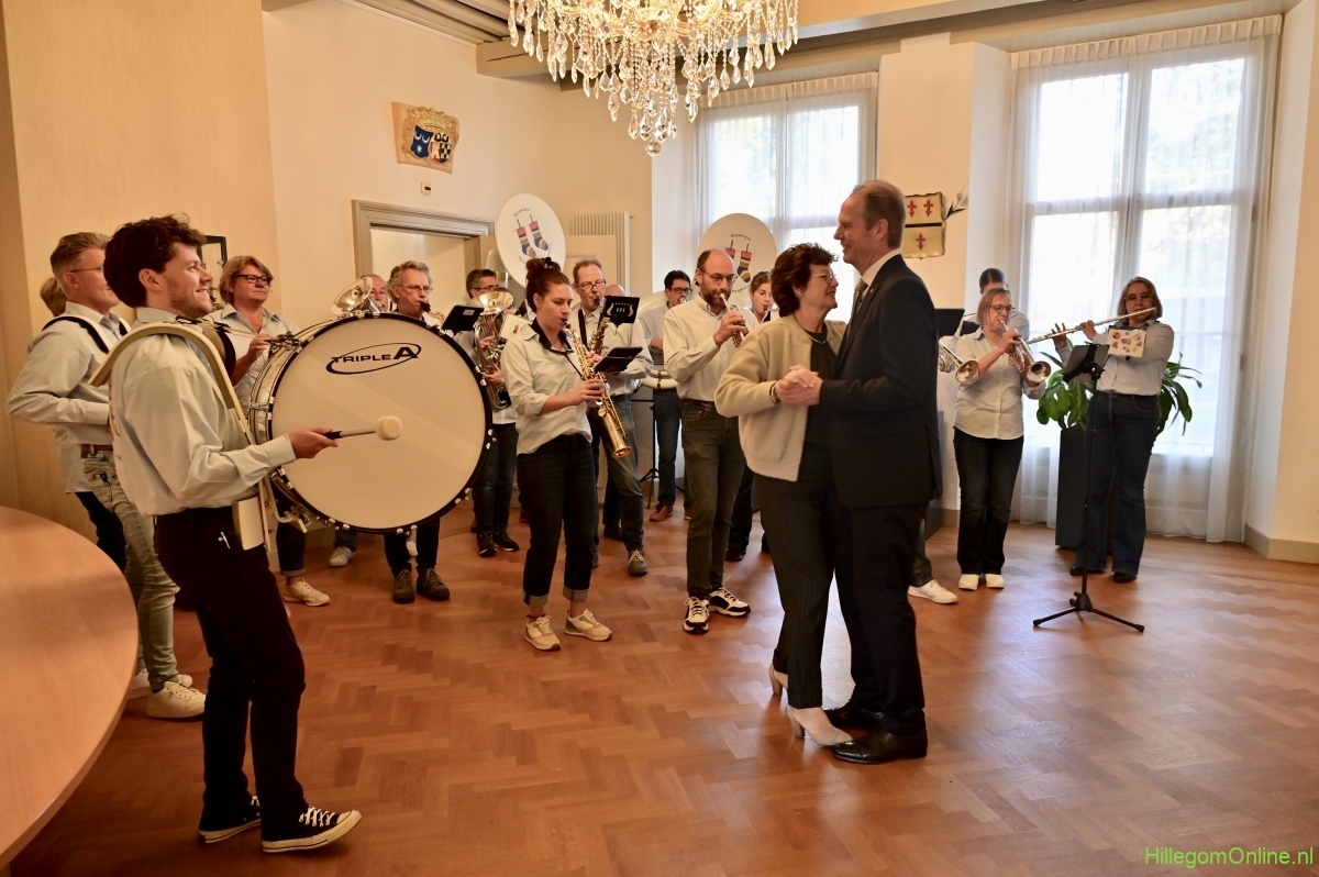 Na alle speeches was er een muzikale verrassing en kwam Jeffrey Parmentier spelen. Hij wist er in no time een feestje van te maken en zorgde ervoor dat Arie van Erk in polonaise de raadszaal verliet. Beneden wachtte nog een muzikale verrassing, daar stond blaaskapel De Hillegomse hangkousen Arie en zijn vrouw Petra op te wachten. Het echtpaar maakte van de gelegenheid gebruik een dansje te maken. Het gezelschap verliet daarna het gemeentehuis om in hotel Flora het afscheidsfeest voort te zetten.
