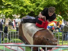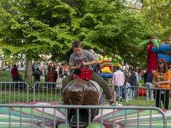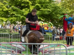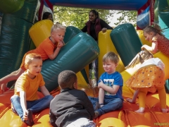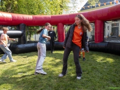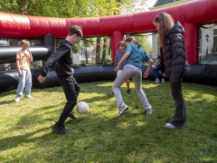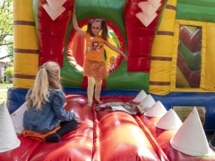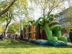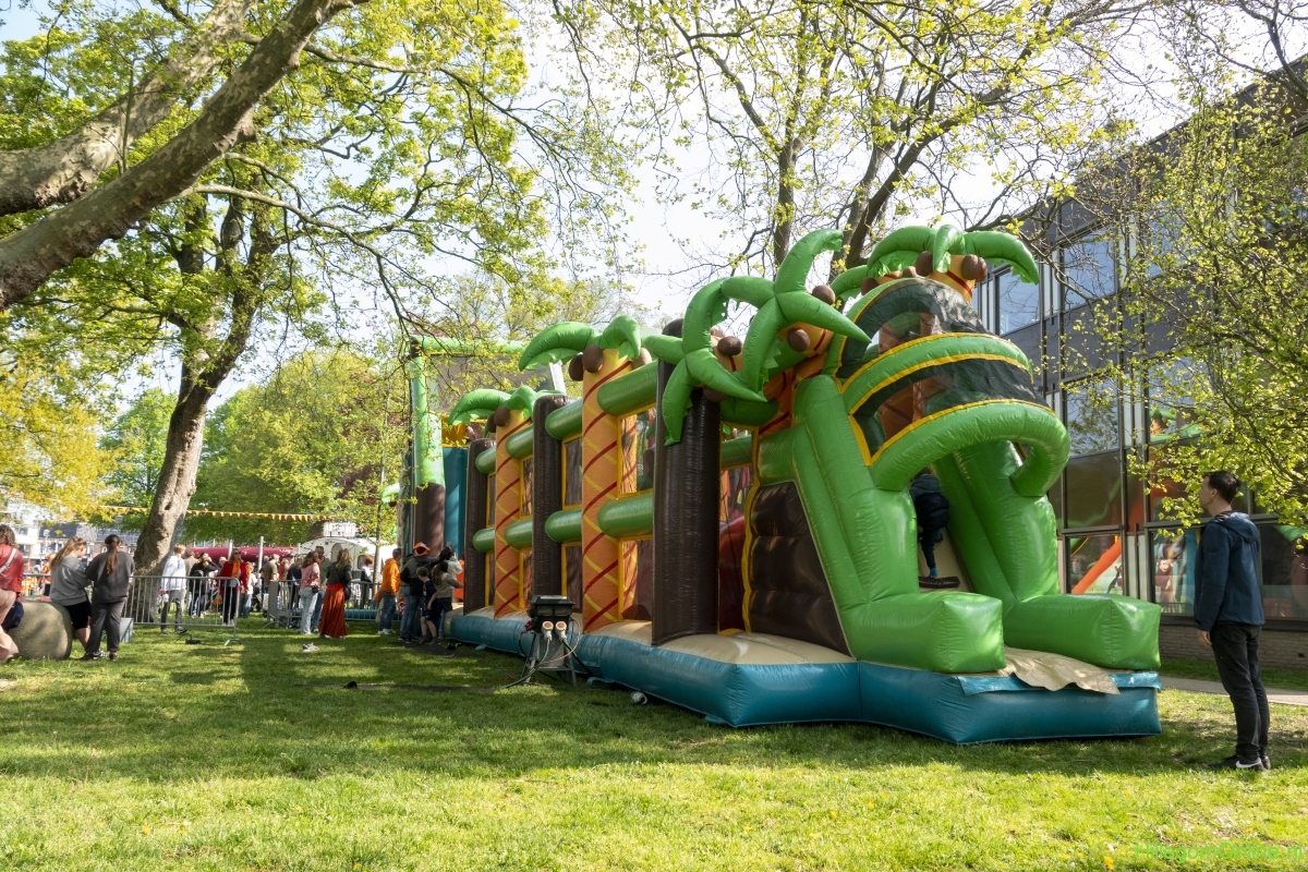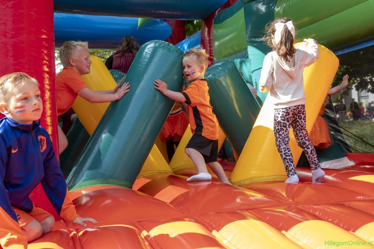In de Hoftuin was het een vrolijke boel, met allerlei leuke activiteiten voor jong en oud! Kinderen konden zich uren vermaken op de verschillende springkussens en speeltoestellen, terwijl de vrolijke sfeer de tuin vulde. Daarnaast was er de mogelijkheid om herinneringen vast te leggen in de fotobox. In stijl van Koningsdag konden bezoekers, volledig aangekleed in feestelijke attributen, een foto maken met vrienden of familie. De gedrukte foto’s zorgden voor een blijvende herinnering aan deze gezellige dag in de Hoftuin!