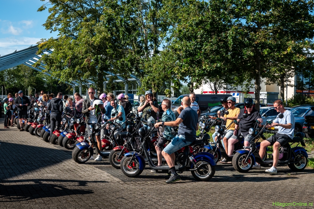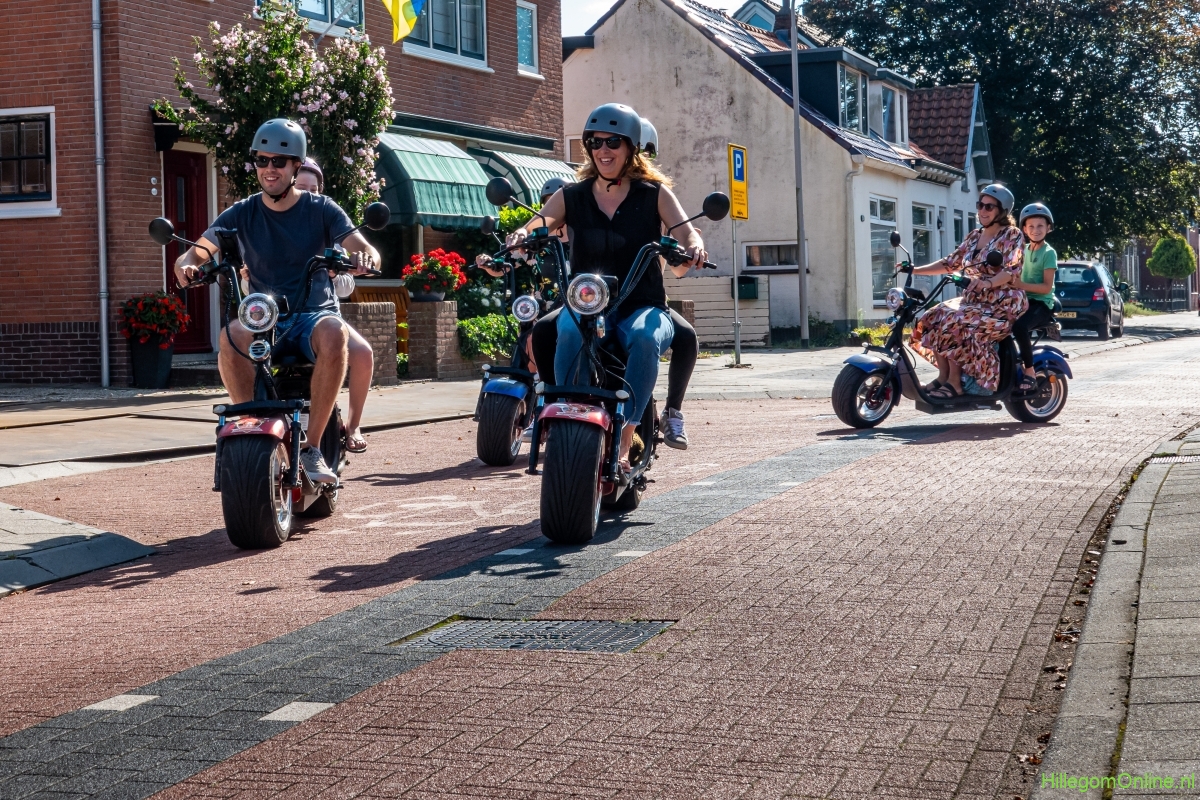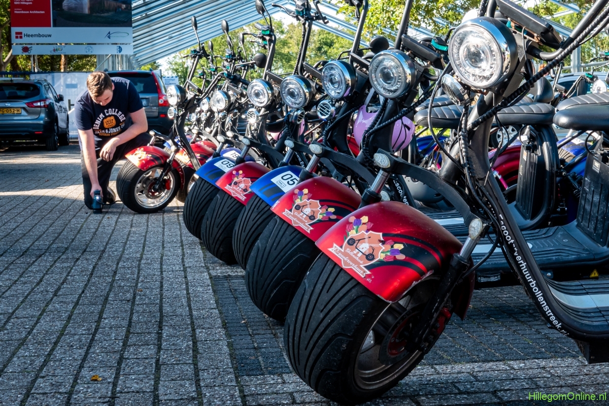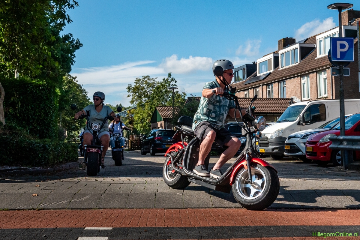 Hillegom – Voor het tweede jaar op rij was de e-scooterrit een groot succes. Ruim 25 e-scooters volgden de route door de regio en langs het strand.