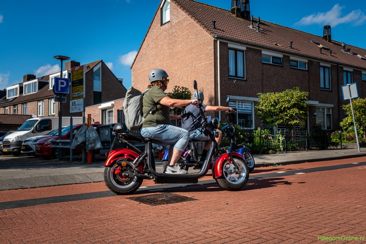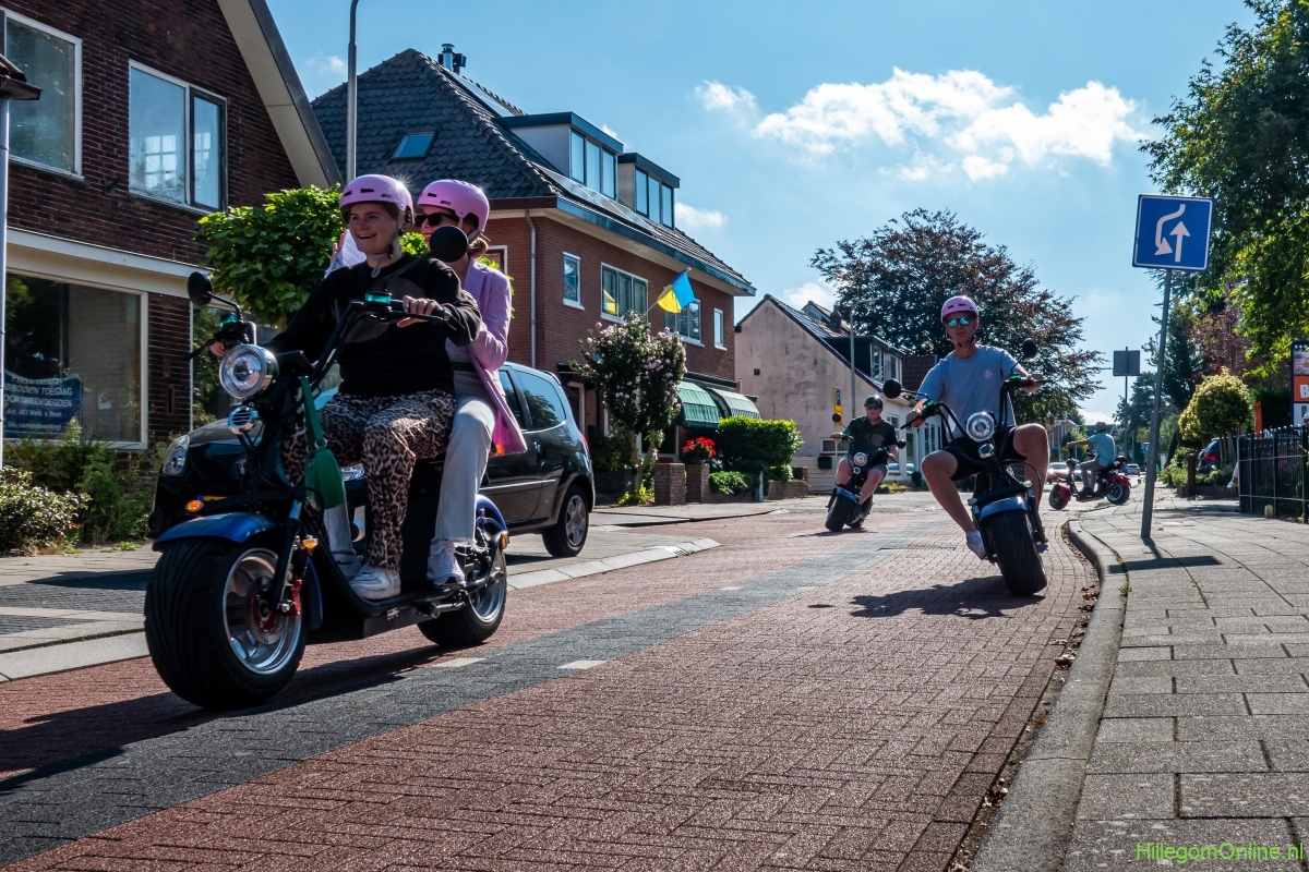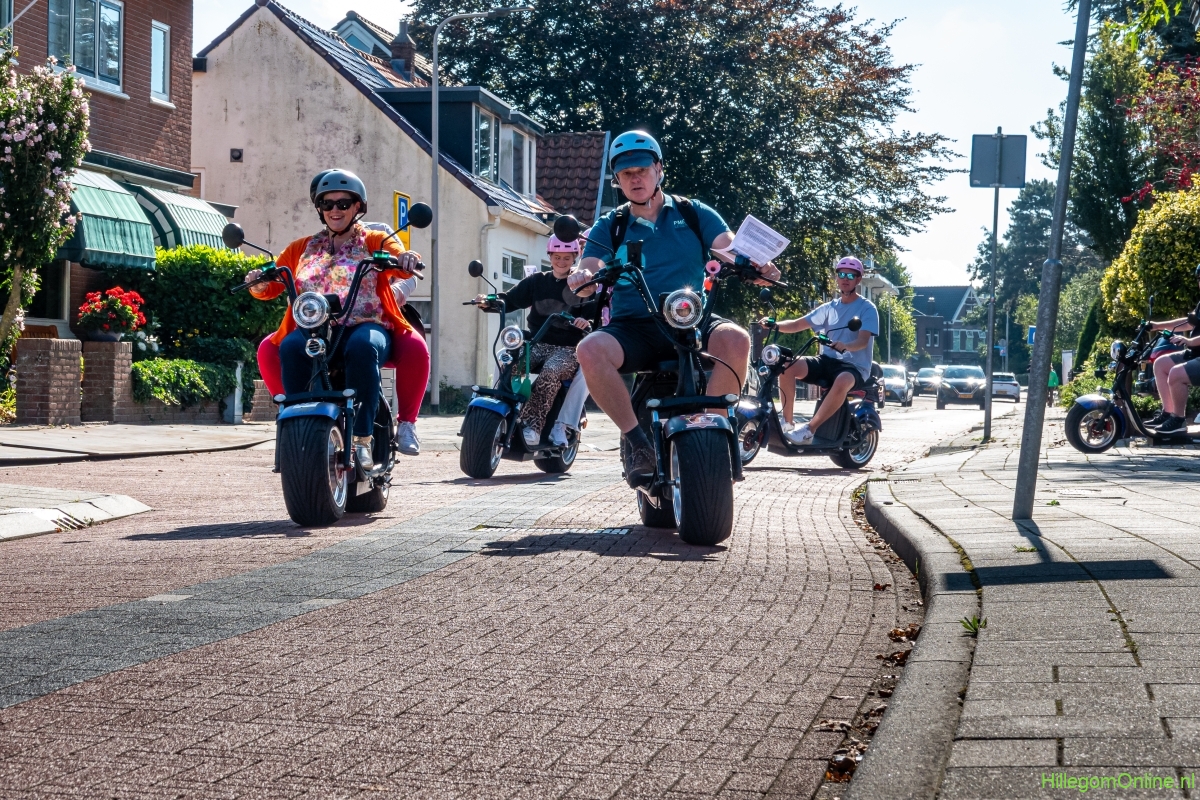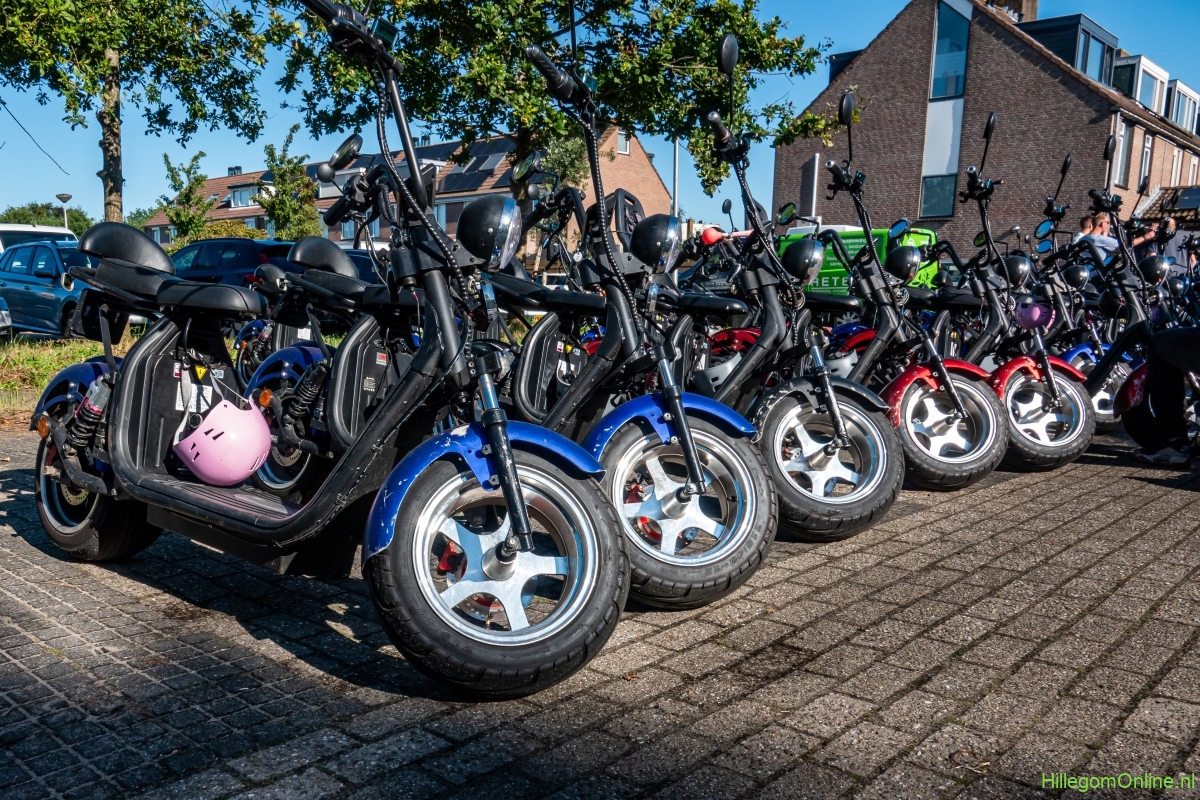 Hillegom – Voor het tweede jaar op rij was de e-scooterrit een groot succes. Ruim 25 e-scooters volgden de route door de regio en langs het strand.