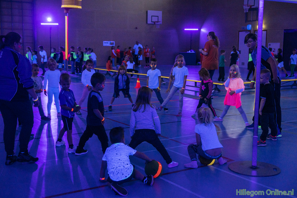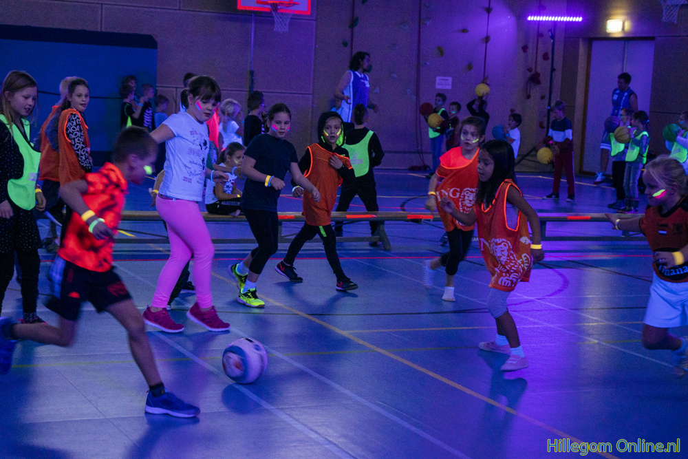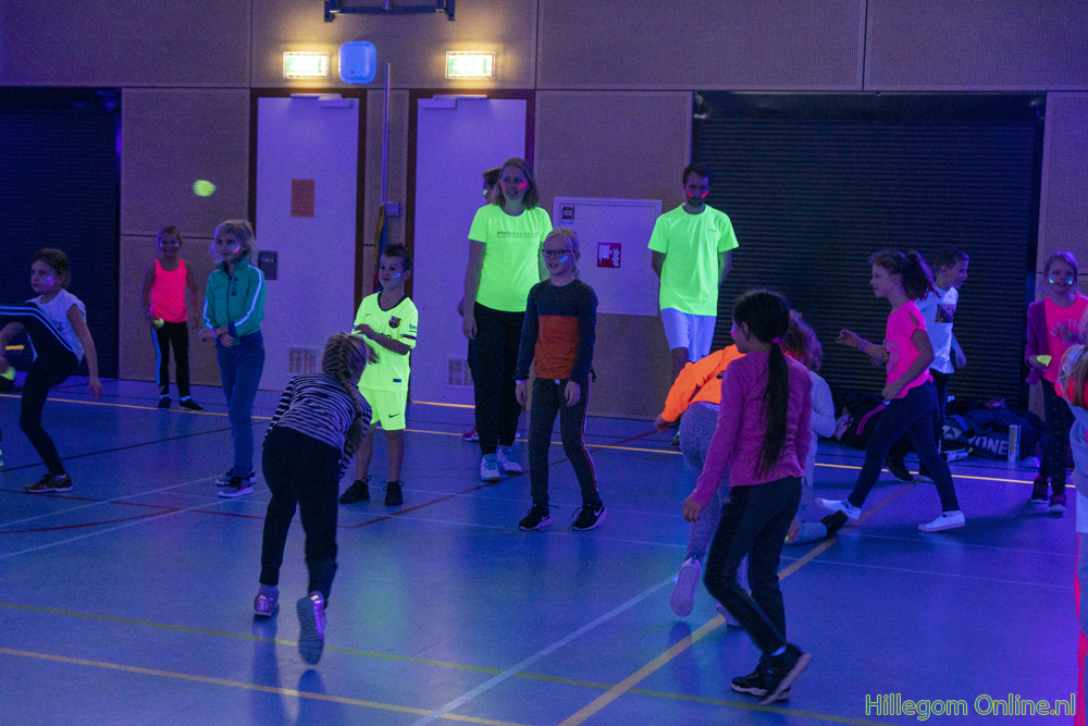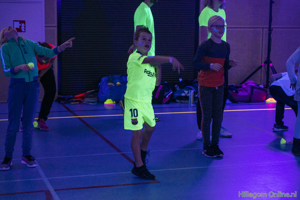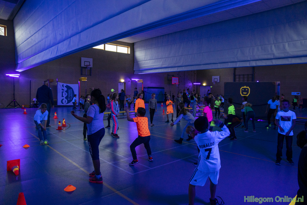Hillegom – Op vrijdag 4 januari was de “Glow in the dark” Sportinstuif. Ruim 125 Kinderen deden hier aan mee. Een complete middag met leuke sporten en een goede sfeer. De sporthal van het Fioretti College zag er gezellig uit met de Blacklights en gekleurde sporters.