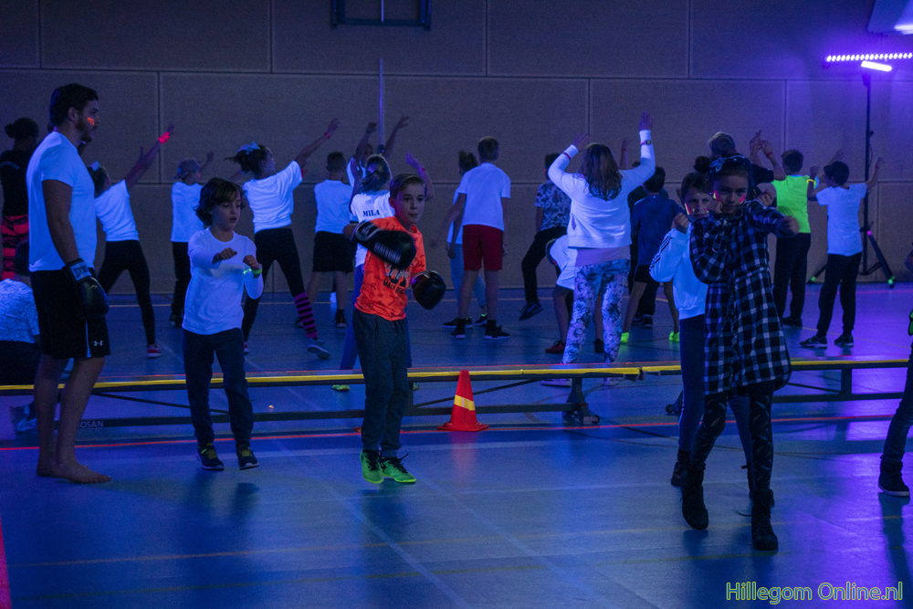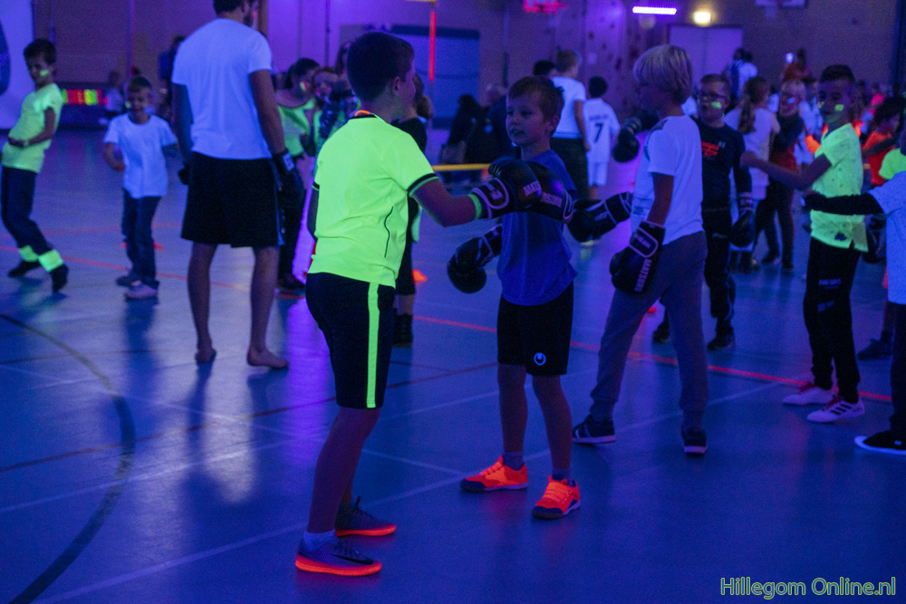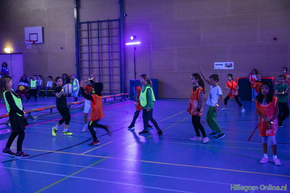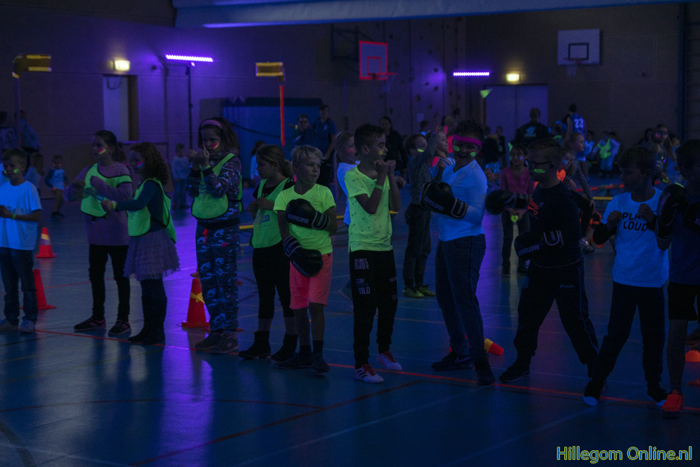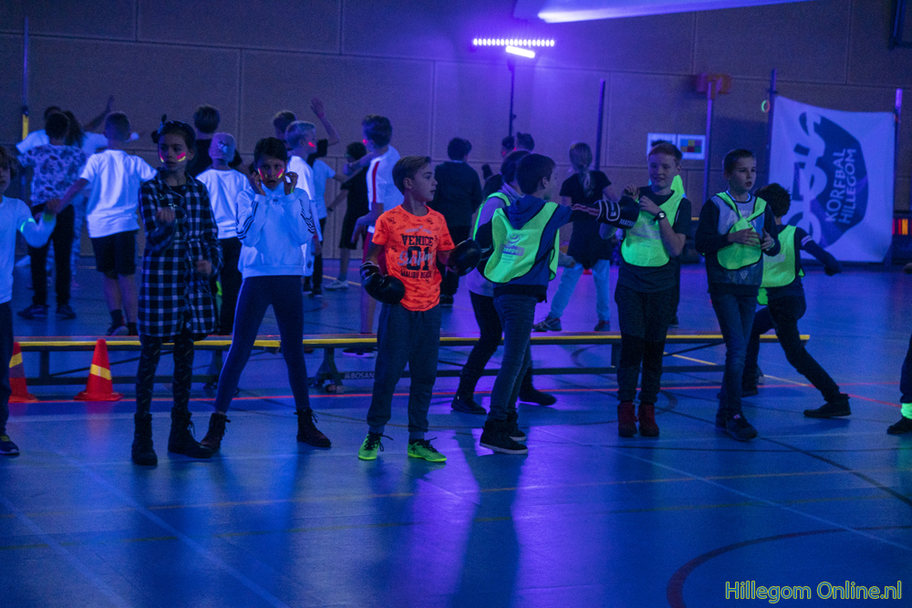 Hillegom – Op vrijdag 4 januari was de “Glow in the dark” Sportinstuif. Ruim 125 Kinderen deden hier aan mee. Een complete middag met leuke sporten en een goede sfeer. De sporthal van het Fioretti College zag er gezellig uit met de Blacklights en gekleurde sporters.
