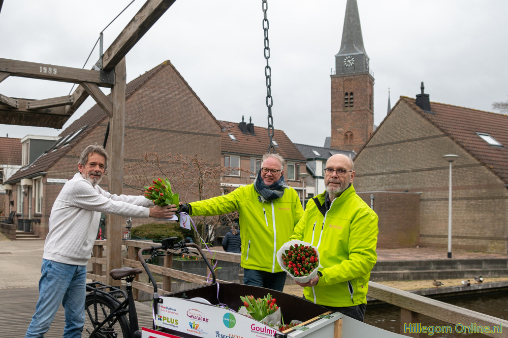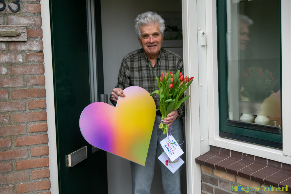 Hillegommers konden opgeven waarom iemand een bloemetje zou verdienen. Zo werden de vrijwillige brugwachters onder de toren bedankt voor het openen van de brug. Maar ook diverse mantelzorgers en super opa’s kregen een bloemetje. Maar ook bij willekeurige Hillegommers werd aangebeld.