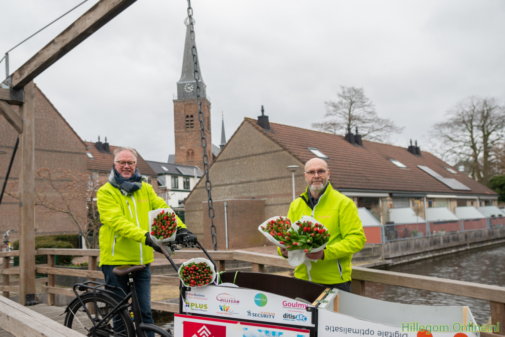 Hillegom – Bloemencorso Bollenstreek deelde samen met de lokale marketingorganisaties en de bloembollengemeenten bloemetjes uit. Deze hartverwarmende bloemenactie vond ook plaats in Hillegom op zondag 21 maart 2021. Er werden door 4 groepen vrijwilligers in totaal 75 bossen tulpen uitgedeeld. Hetzelfde gebeurde ook in de andere bollengemeenten. In Hillegom reden vrijwilligers van o.a. Hillegom Marketing, Corsogroep Hillegom Haarlem e.o. en Vrienden van Oud Hillegom.