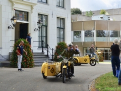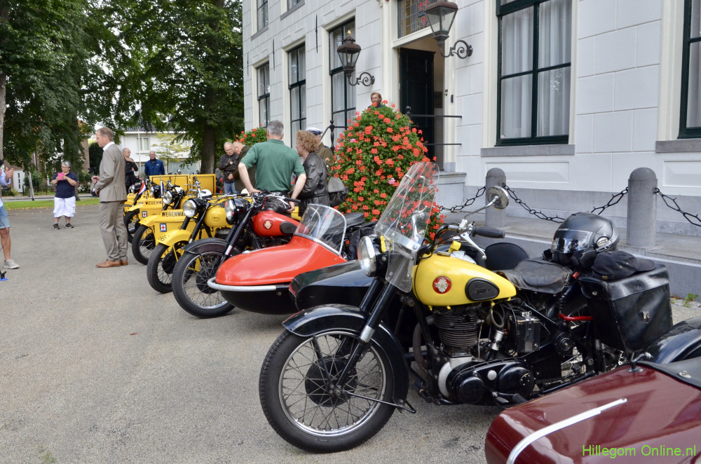 Hillegom – In 1946 richtte de ANWB de Wegenwacht op. Daarom wordt dit jaar het 75-jarig bestaan herdacht. Ter gelegenheid hiervan vond op zaterdag 14 augustus een herdenkingsrit plaats van Hillegom naar Den Haag. De Wegenwacht startte na de oorlog met enkele Harley Davidson motoren uit het Canadese leger. In 1950 stapte de ANWB over op nieuwe BSA-motoren uit Engeland, waaraan Hollandia zijspanbakken bevestigd waren, waarin het gereedschap werd vervoerd. De Wegenwacht heeft in de jaren ’50 en ’60 meer dan 400 BSA’s gebruikt voor de Wegenwacht. Daarna werden die vervangen door Citroen 2CV bestelwagens. Vanwege het belang van BSA-motoren voor de jubilerende Wegenwacht organiseerde de BSA Owners Club Nederland op 14 augustus een herdenkingsrit voor Wegenwacht-motoren. De deelnemers ontvingen koffie met gebak in het gemeentehuis van Hillegom. Nadat burgemeester Arie van Erk het startsignaal gaf, vertrok de groep zijspancombinaties van Hillegom naar het Louwman Museum in Wassenaar en voorts naar het Wegenwacht Technocentrum in Den Haag Ypenburg.De herdenkingsrit startte in Hillegom, omdat hier het initiatief is genomen voor de oprichting van de Nederlandsche Vélocipèdistenbond. Dit gebeurde in 1883 in hotel Het Wapen van Friesland, waar de Haarlemse en de Haagse Vélocipède Club elkaar hadden ontmoet en besloten een bond op te richten. Deze bond werd na twee jaar omgedoopt tot Algemene Nederlandse Wielrijders Bond (ANWB). Hillegom is bovendien de plaats waar in 1975 de BSA Owners Club Nederland is opgericht door drie BSA-bezitters uit Hillegom en Lisse.