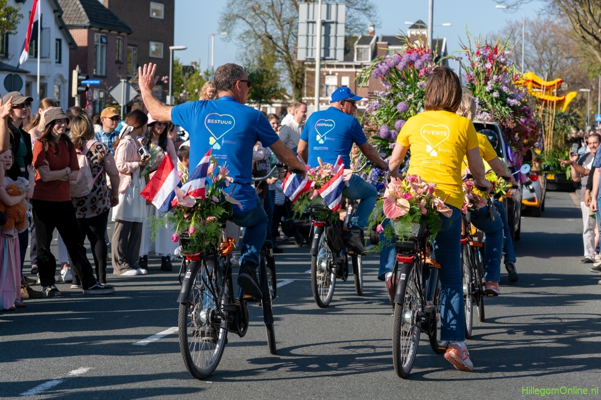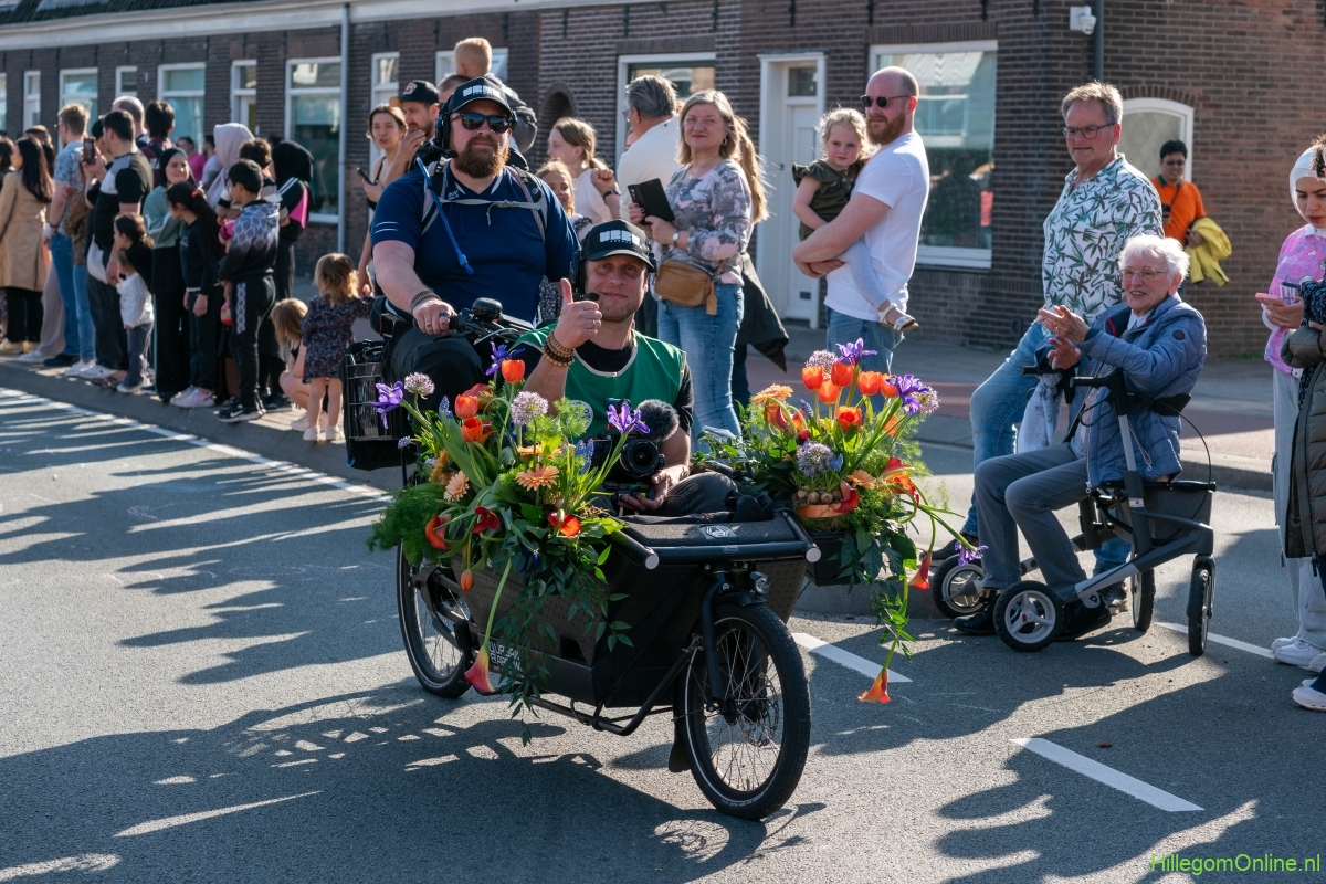 Op zaterdag 12 april 2025 trok het Bloemencorso Bollenstreek weer door Hillegom als onderdeel van de 78e editie van dit kleurrijke lentefeest. De 42 kilometer lange optocht begon in Noordwijk en eindigde in Haarlem, waarbij diverse dorpen in de Duin- en Bollenstreek werden aangedaan. Langs de route genoten duizenden toeschouwers van prachtig versierde praalwagens, rijkelijk gedecoreerd met voorjaarsbloemen zoals hyacinten, narcissen en tulpen. Onze fotografen waren erbij en legden de feestelijke sfeer en het enthousiasme van het publiek in Hillegom vast.