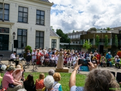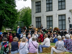 Hillegom – Op zondag 3 juli organiseerde de Hillegomse Harmonie Kapel voor de 4de keer het Hillegom Romantique festival in de Hoftuin, bij het gemeentehuis van Hillegom. De Hoftuin was weer in Franse sferen. Men kon plaatsnemen op de vele strobalen die er lagen of een eigen meegenomen picknick kleed. Veel leden van de koren en de HKK waren in oude Franse stijl gekleed. Naast de HHK waren er ook optredens van diverse zangkoren, muziekgroepen en de balletschool.