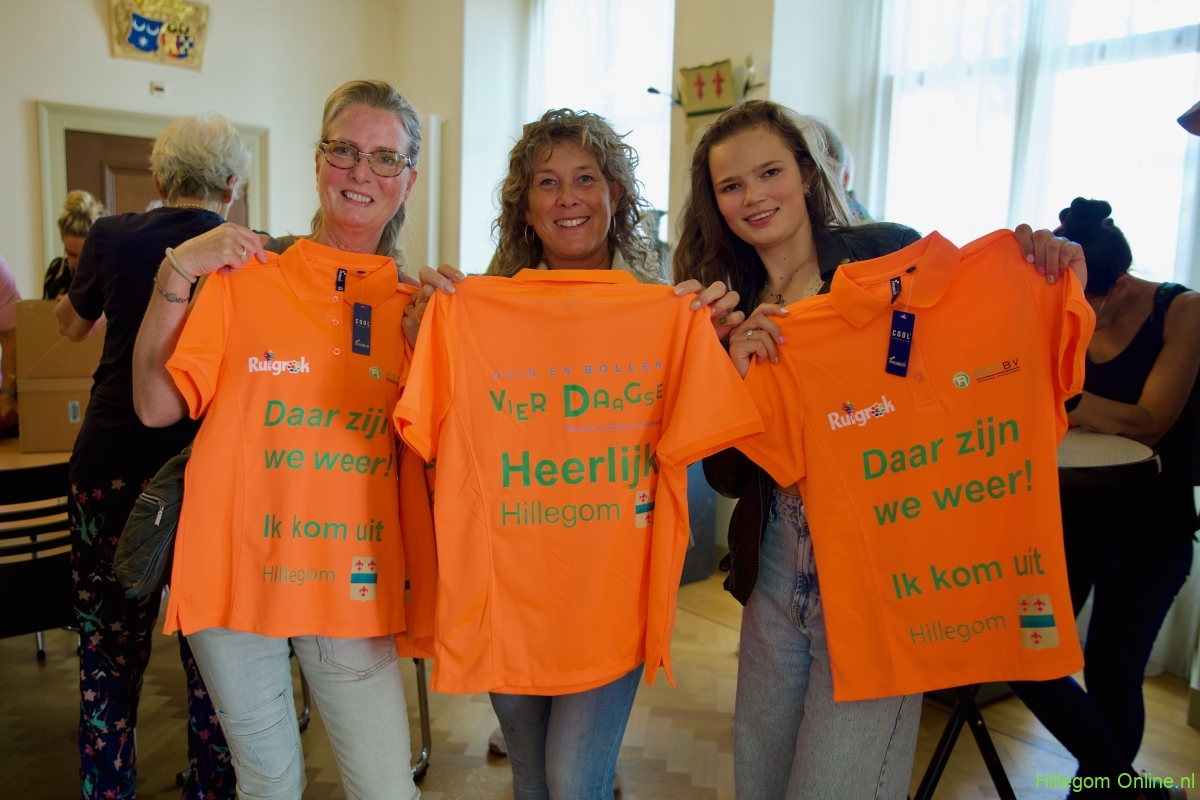 Hillegom – Tijdens de Nijmeegse Vierdaagse doen elk jaar veel Hillegommers mee. Dit moet men natuurlijk zien! Daarom zijn er speciale shirts ontworpen met de tekst “Daar zijn we weer! Ik kom uit Hillegom”. Dankzij verschillende sponsors kan iedereen dit met trots dragen.