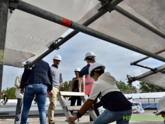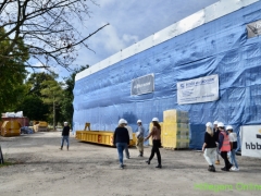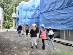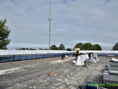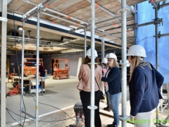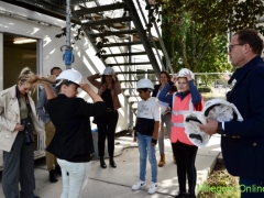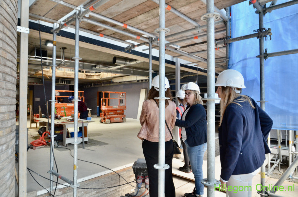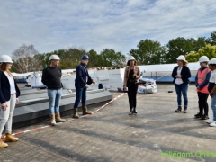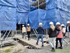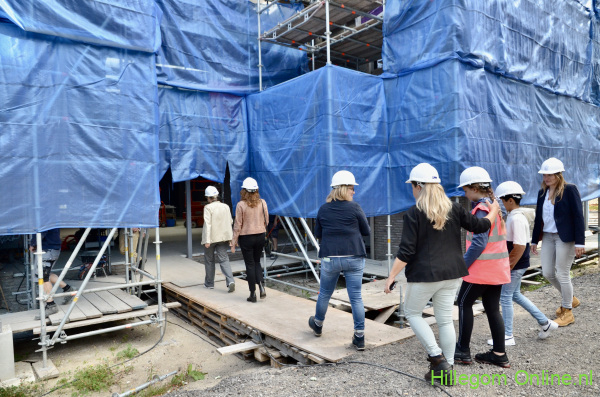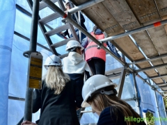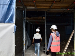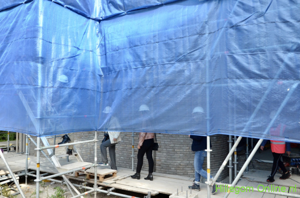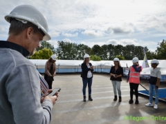Een uniek moment om even een kijkje te nemen bij, in en zelfs op het gebouw. Voorzien van veiligheidshelmen en -schoenen mochten alle genodigden, een klein gezelschap, buitenom naar het dak van het gebouw. Speciaal voor de gelegenheid was er een steigertrap gebouwd en was er een plek op het dak afgezet.