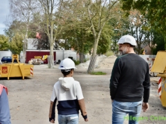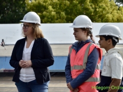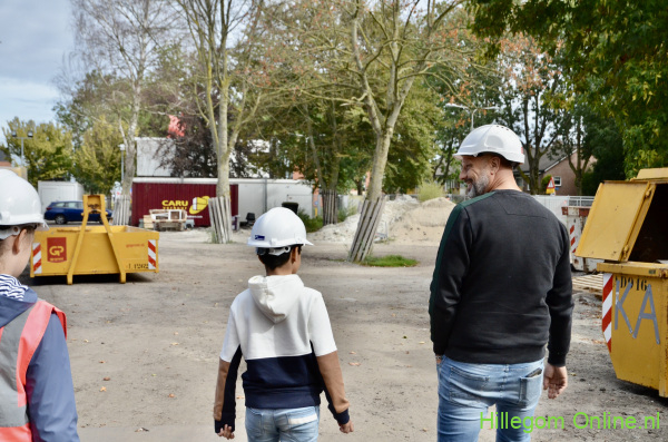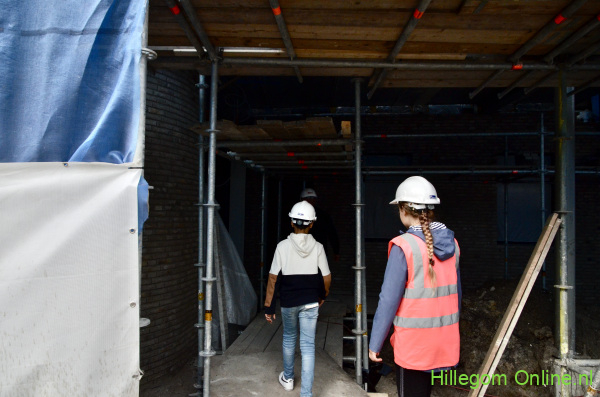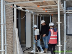 De genodigden konden van buitenaf al een klein beetje kijken naar de vormen van het gebouw binnen en samen met opzichter Rob mochten de twee leerlingen even in het hart van de school kijken, daar waar de energie uit de grond gaat komen .