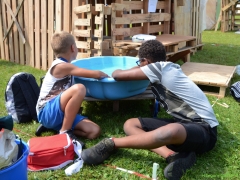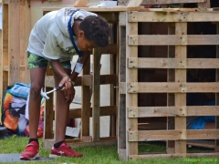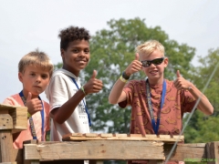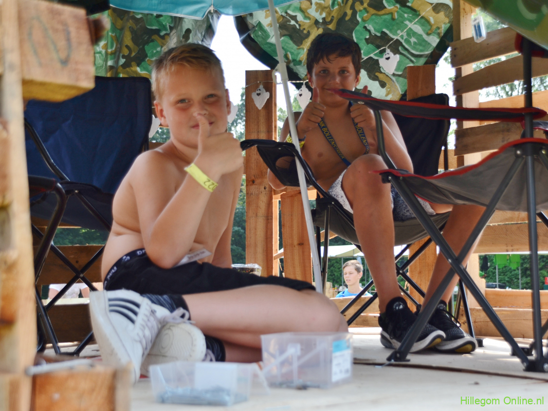 Hillegom – Op dag twee werd er weer hard gewerkt aan de mooiste hutten. Met veel enthousiasme en een berg spijkers hebben de Huttebouwers het dorp tot leven laten komen. Alle 65 kinderen hebben het enorm naar hun zin gehad. Daarnaast hebben ze veel geleerd zoals samenwerken, maar ook probleem oplossen en omgaan met gereedschap.
