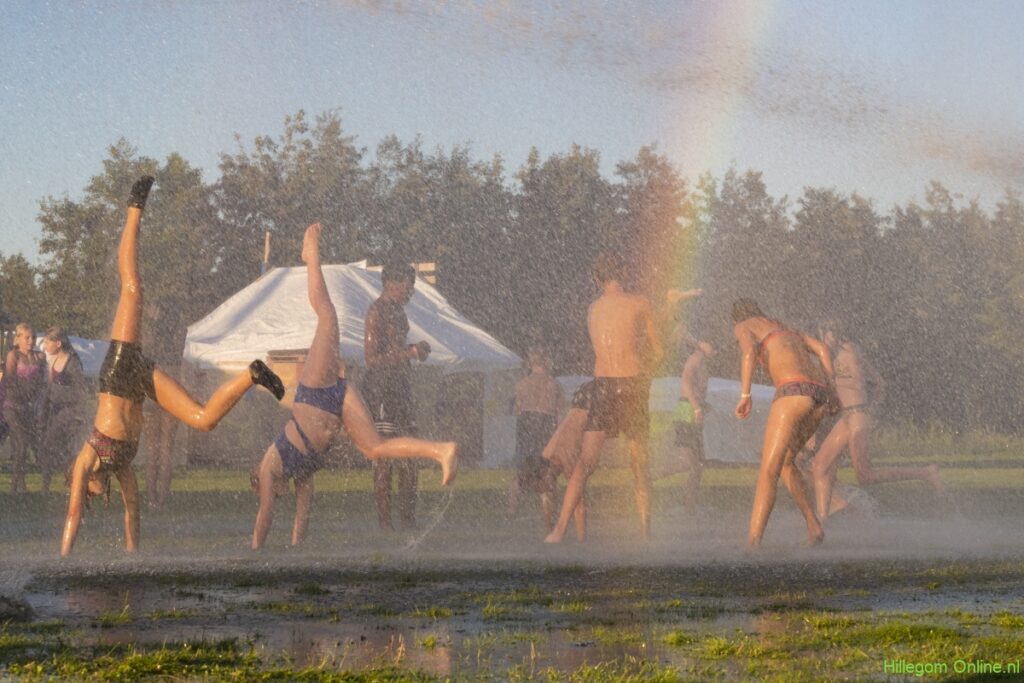 Hillegom – Na twee dagen hard bouwen, is het ook tijd voor het echte feest: Slapen in de hut! ’s avonds waren er nog leuke activiteiten en kwam Brandweer Hillegom langs voor nog meer spetterplezier. Zo kon ook meteen gekeken worden of alle hutten waterdicht waren.