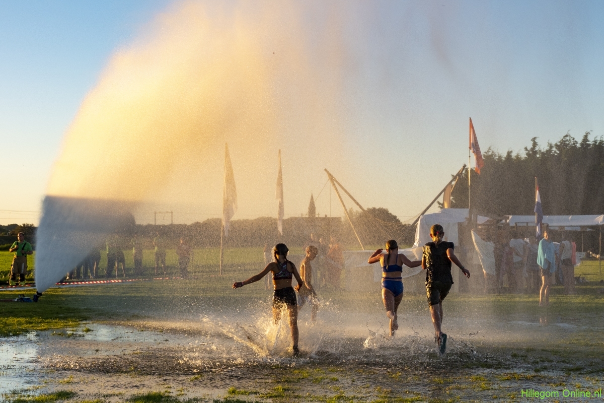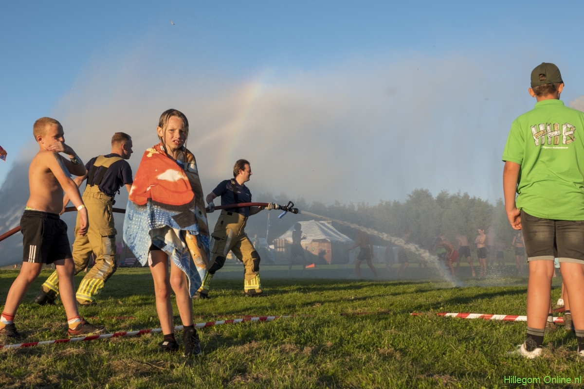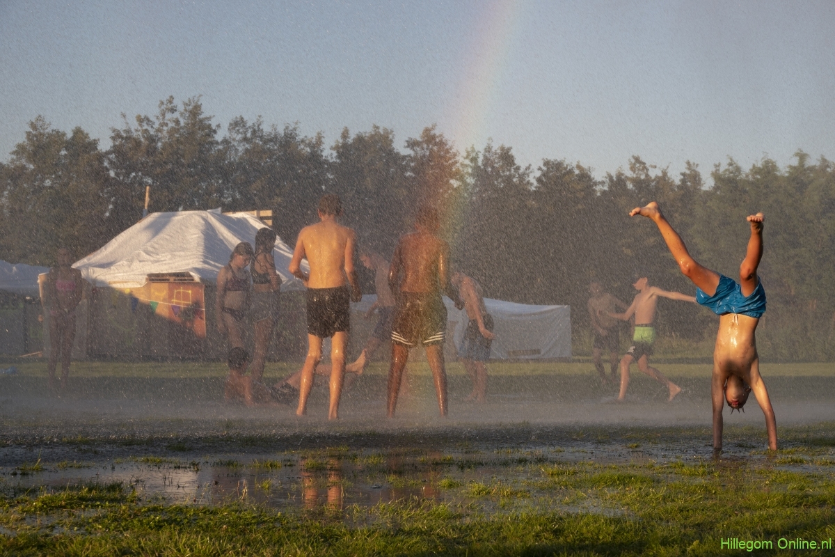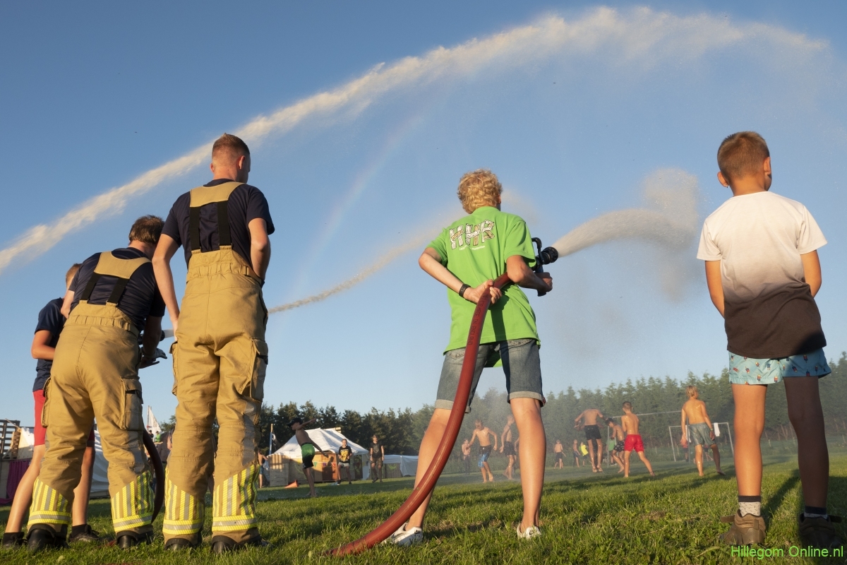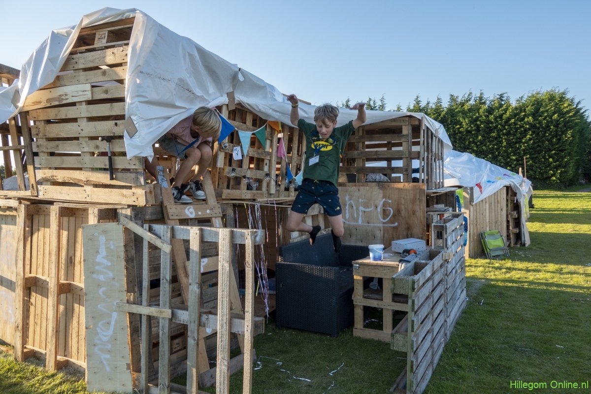 Hillegom – Na twee dagen hard bouwen, is het ook tijd voor het echte feest: Slapen in de hut! ’s avonds waren er nog leuke activiteiten en kwam Brandweer Hillegom langs voor nog meer spetterplezier. Zo kon ook meteen gekeken worden of alle hutten waterdicht waren.