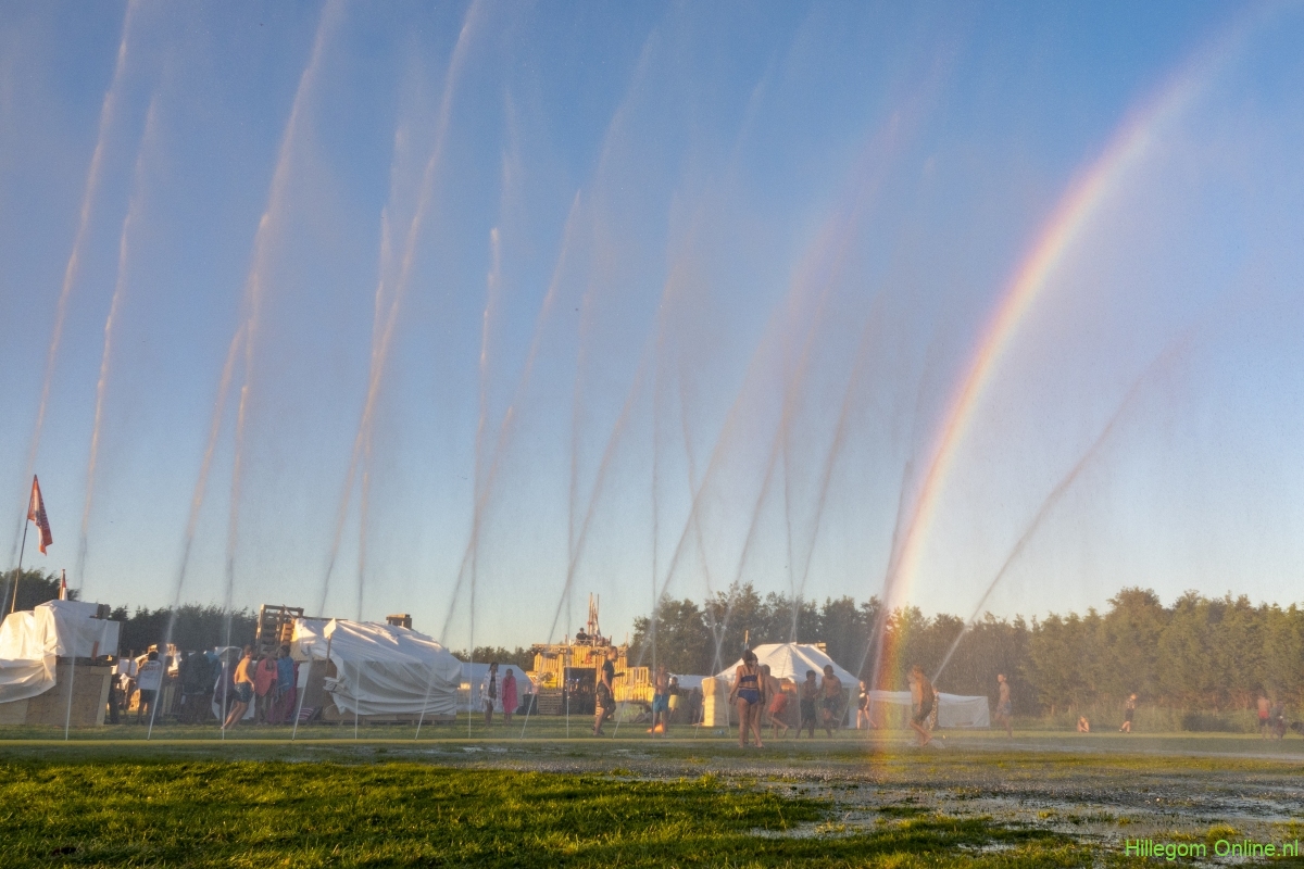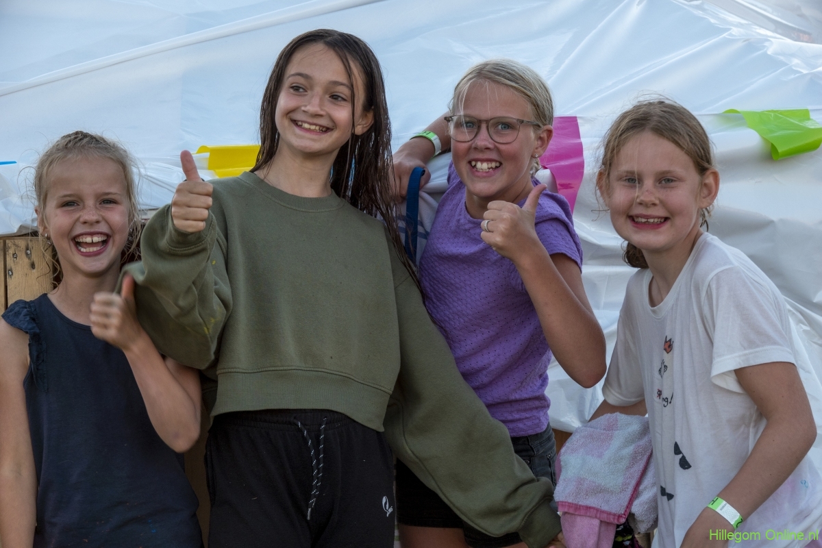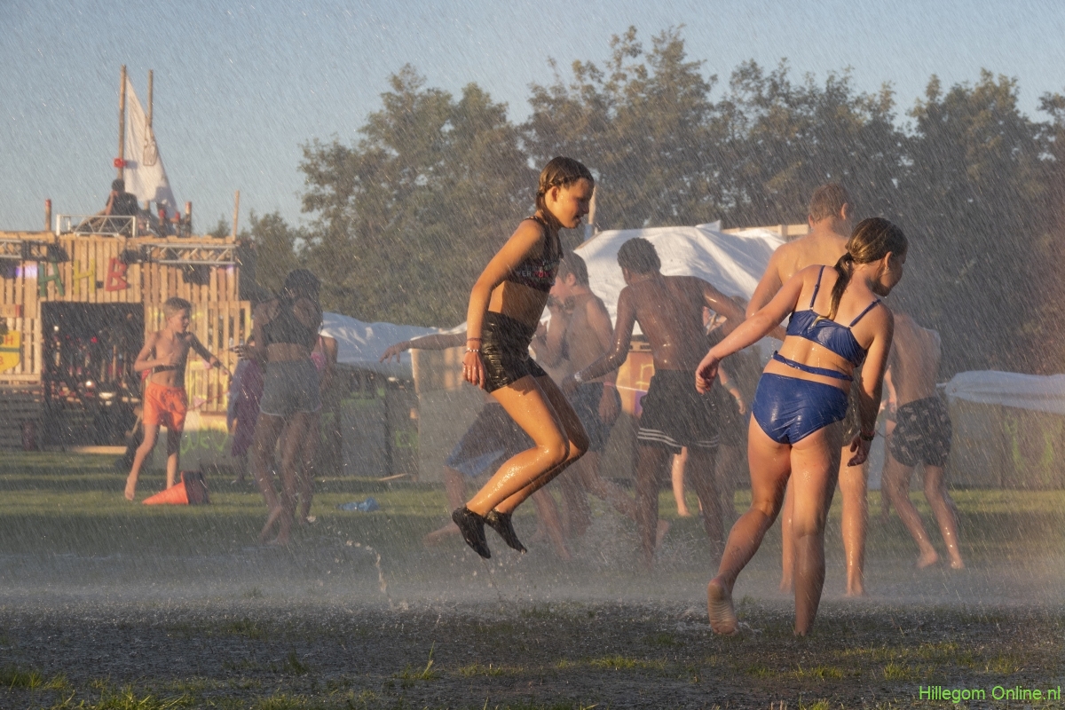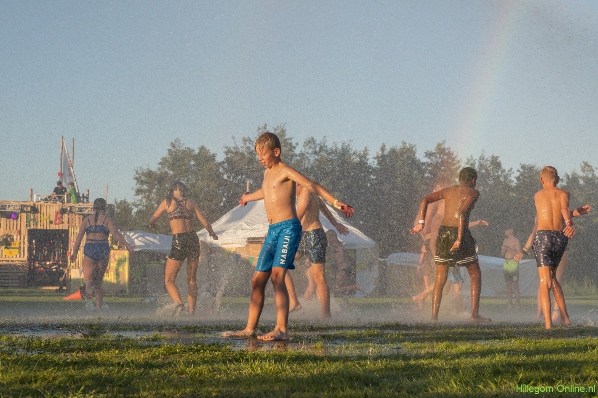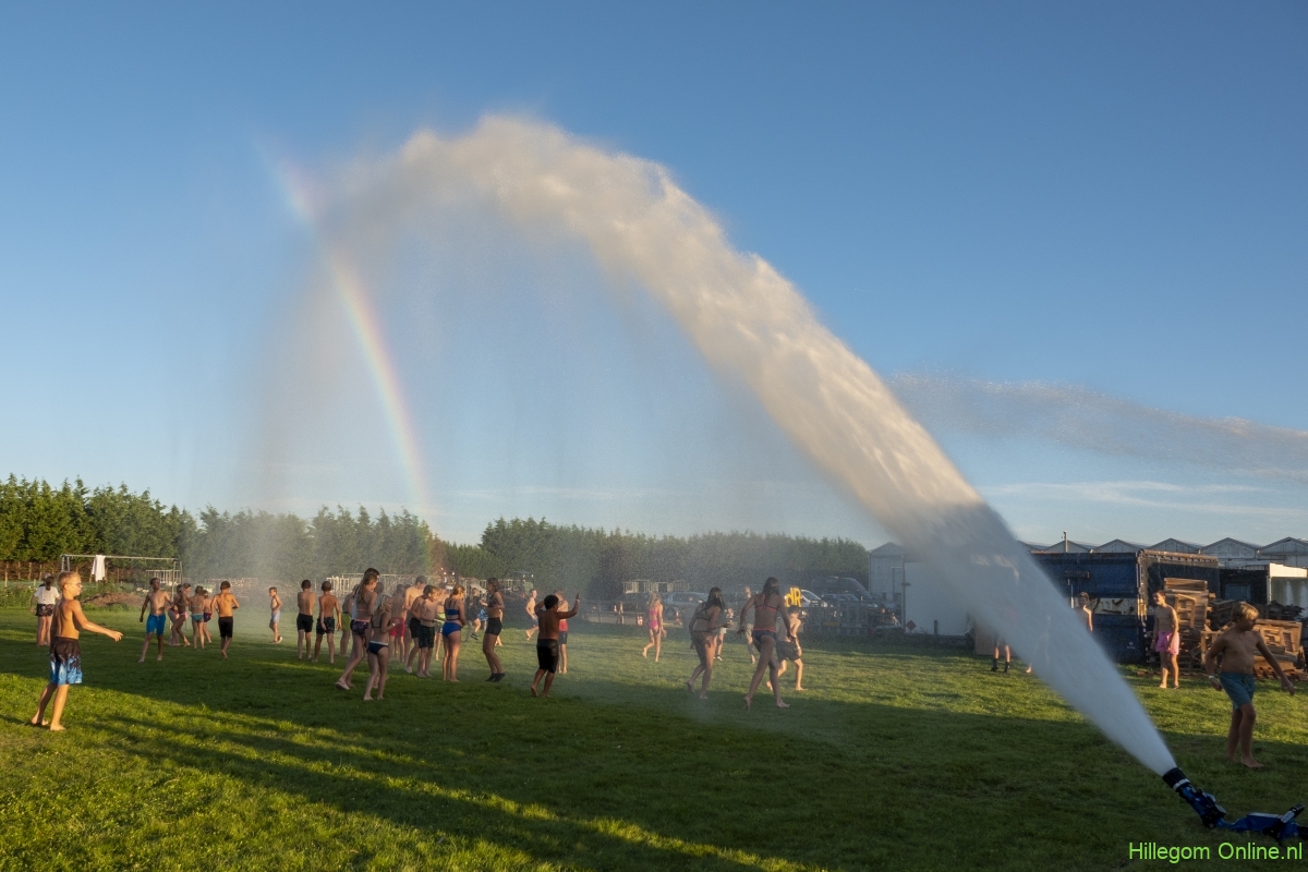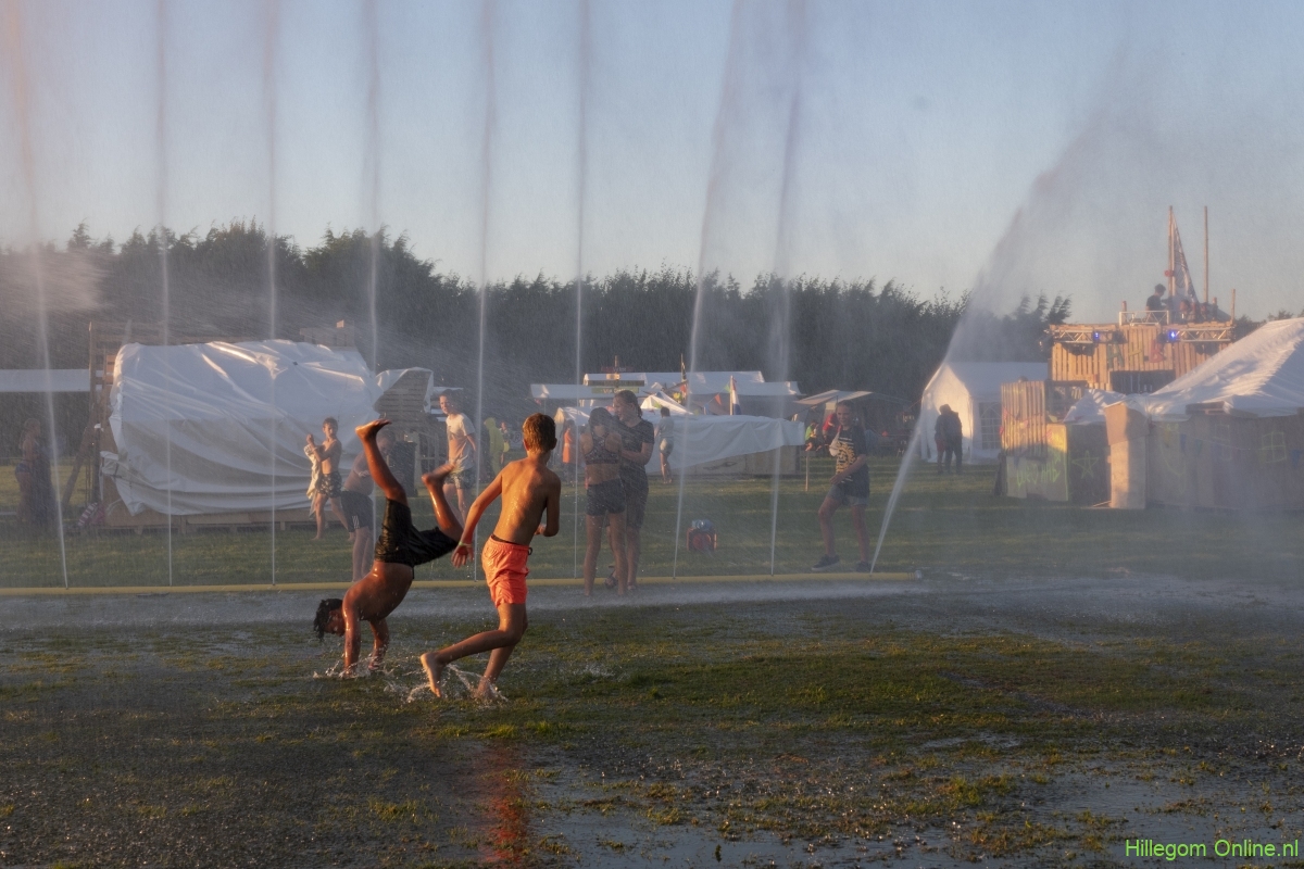 Hillegom – Na twee dagen hard bouwen, is het ook tijd voor het echte feest: Slapen in de hut! ’s avonds waren er nog leuke activiteiten en kwam Brandweer Hillegom langs voor nog meer spetterplezier. Zo kon ook meteen gekeken worden of alle hutten waterdicht waren.