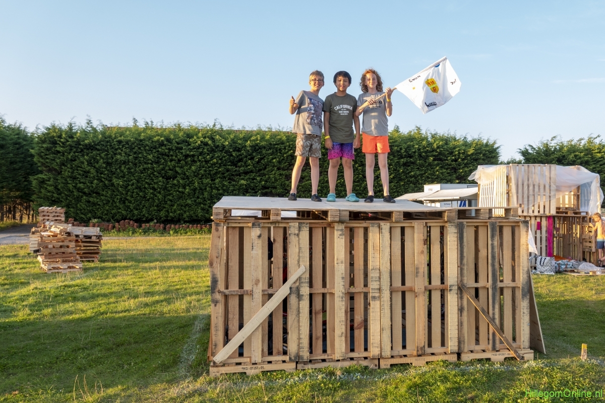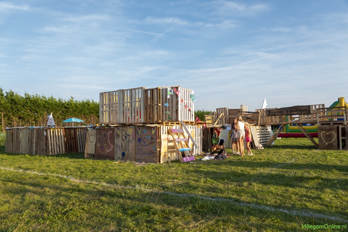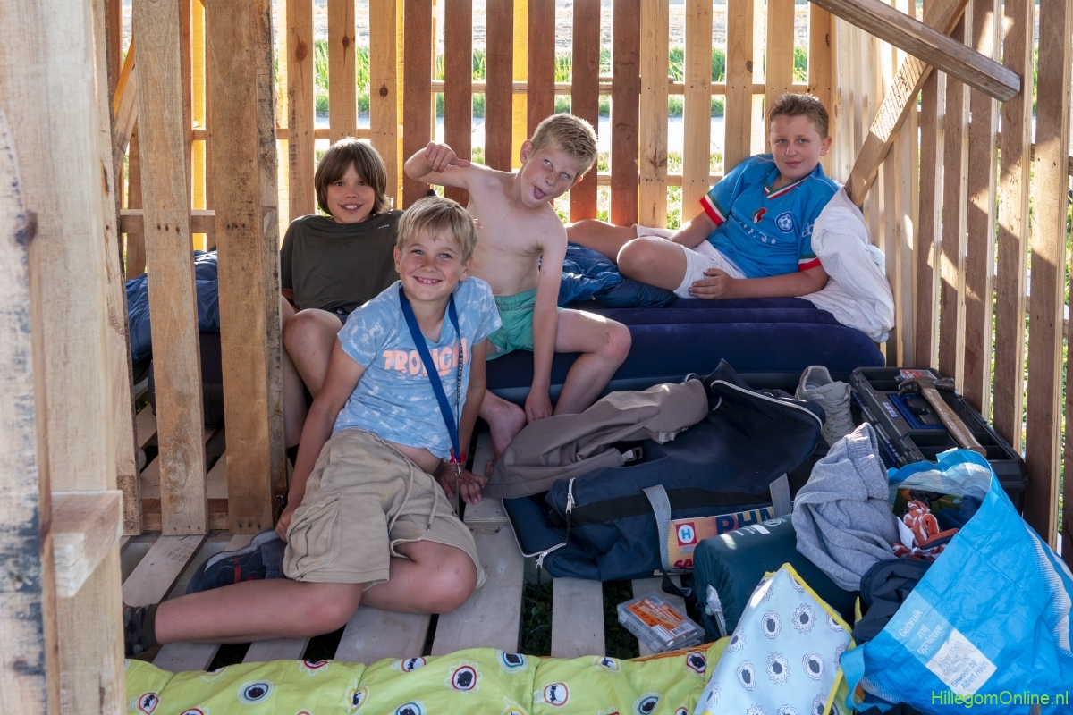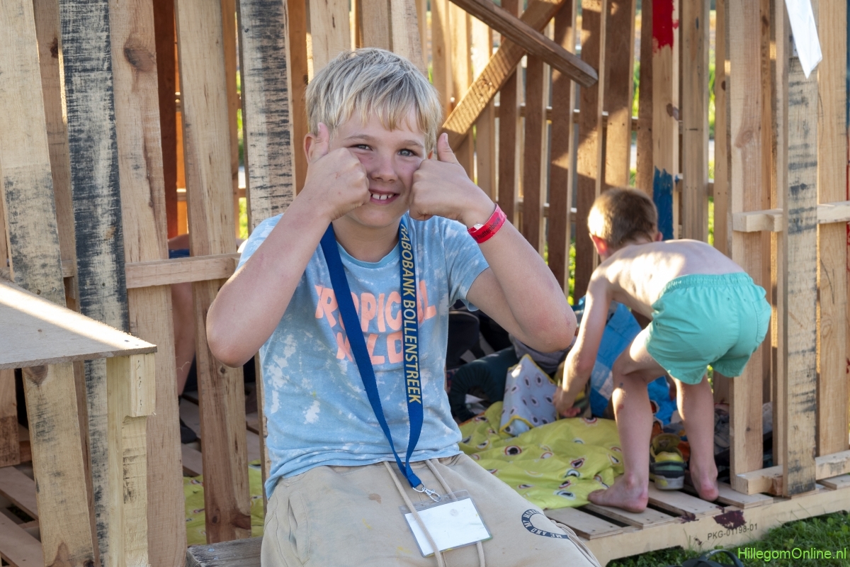 Hillegom – Vanaf maandagochtend klonk er weer gezellig getimmer aan de Noorderlaan. Ruim 100 kinderen bouwden hier aan hun hut van pallets. Na de keuring op dinsdagochtend konden ze hun tijdelijke verblijf gezellig inrichten voor het hoogtepunt: slapen in de eigen hut! Dinsdagavond maakte de brandweer het feest compleet met een nat bezoek. Woensdag ruimen de deelnemers hun bouwsel weer op en kunnen de hamers tot volgend jaar worden opgeborgen.