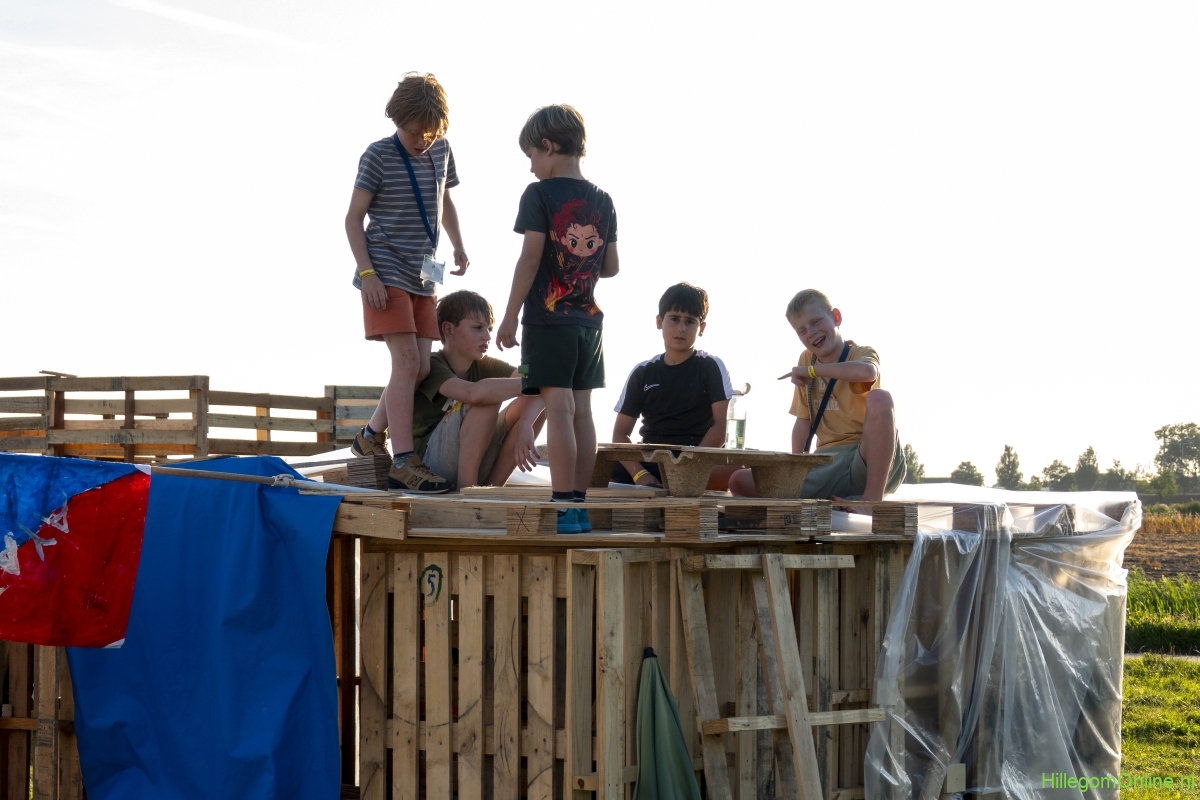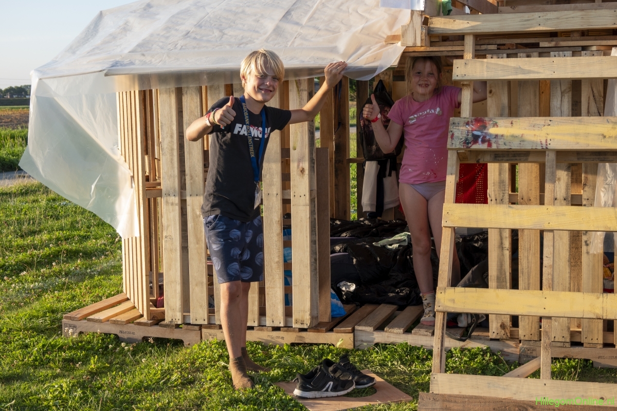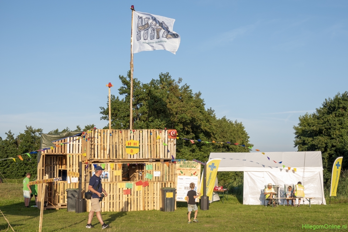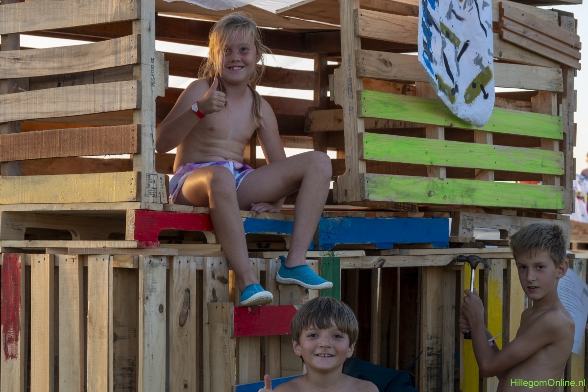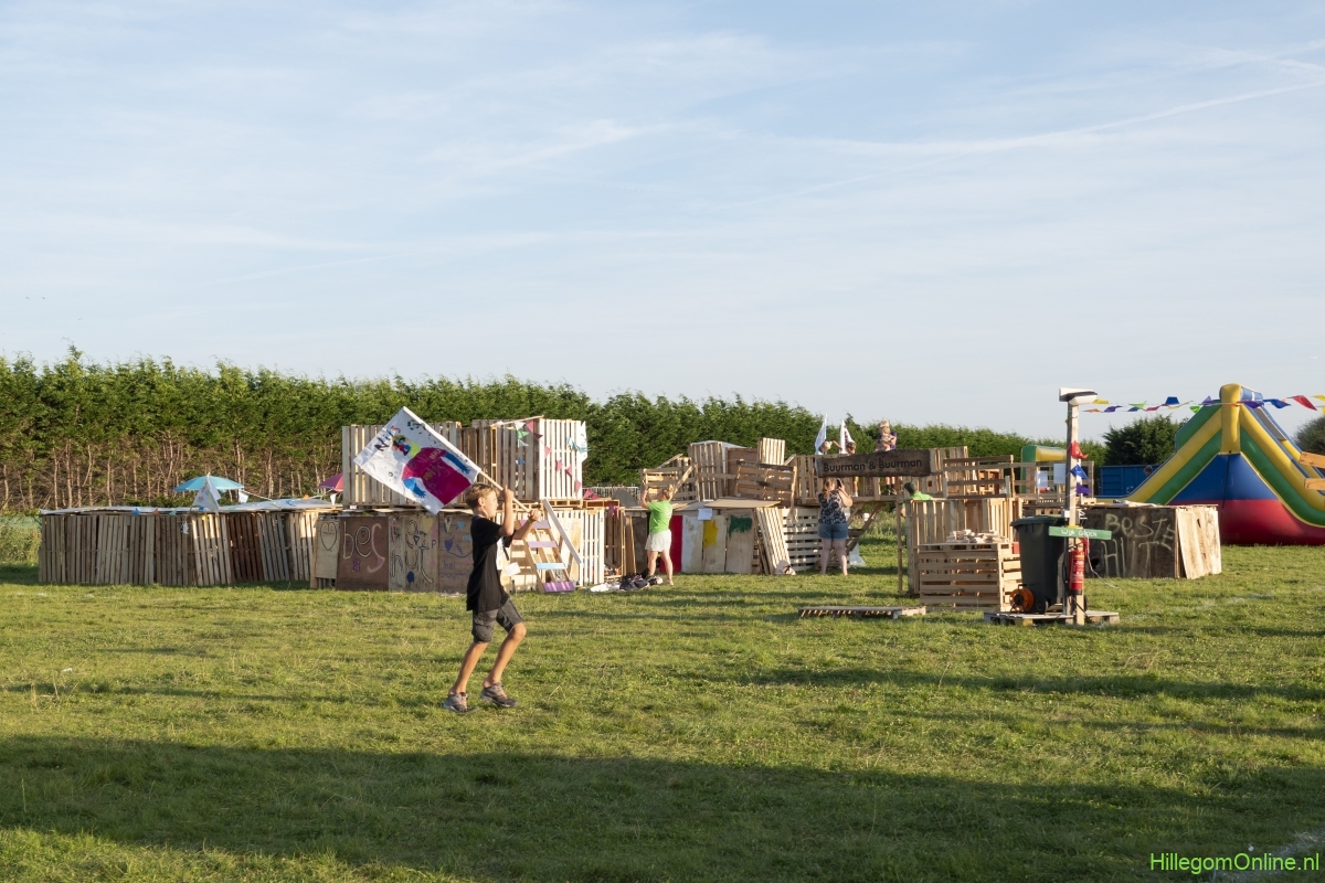 Hillegom – Vanaf maandagochtend klonk er weer gezellig getimmer aan de Noorderlaan. Ruim 100 kinderen bouwden hier aan hun hut van pallets. Na de keuring op dinsdagochtend konden ze hun tijdelijke verblijf gezellig inrichten voor het hoogtepunt: slapen in de eigen hut! Dinsdagavond maakte de brandweer het feest compleet met een nat bezoek. Woensdag ruimen de deelnemers hun bouwsel weer op en kunnen de hamers tot volgend jaar worden opgeborgen.