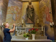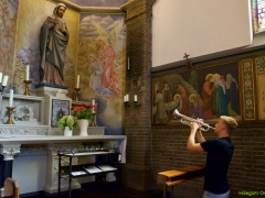 Hillegom – Afgelopen donderdag gaf de Hillegomse Jeffrey Parmentier een optreden in de Heilig Hartkerk in De Zilk. Dit deed hij om beeld en geluid-opnames te maken. Jeffrey is in de hele regio bekend vanwege zijn spontane muzikale optredens, waar hij vooral gedurende de lockdowns vele harten mee veroverde. Het optreden in de kerk was vrij te bezoeken.