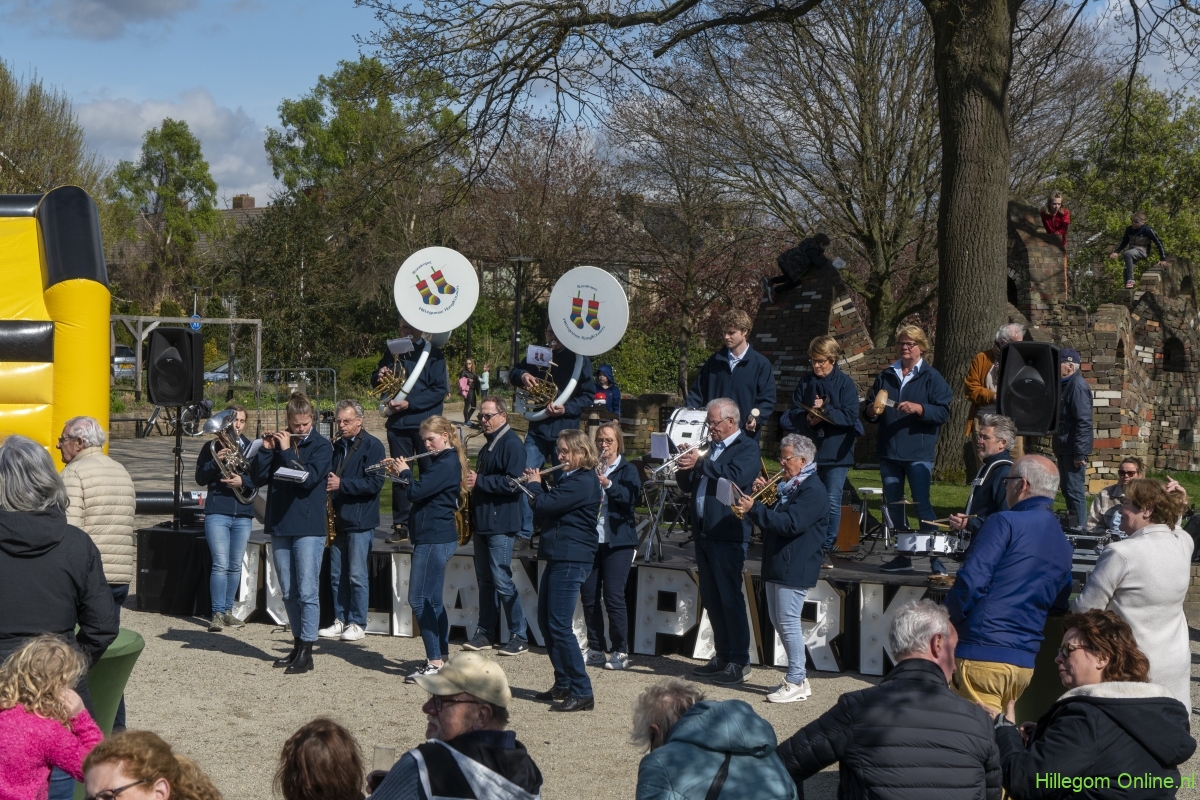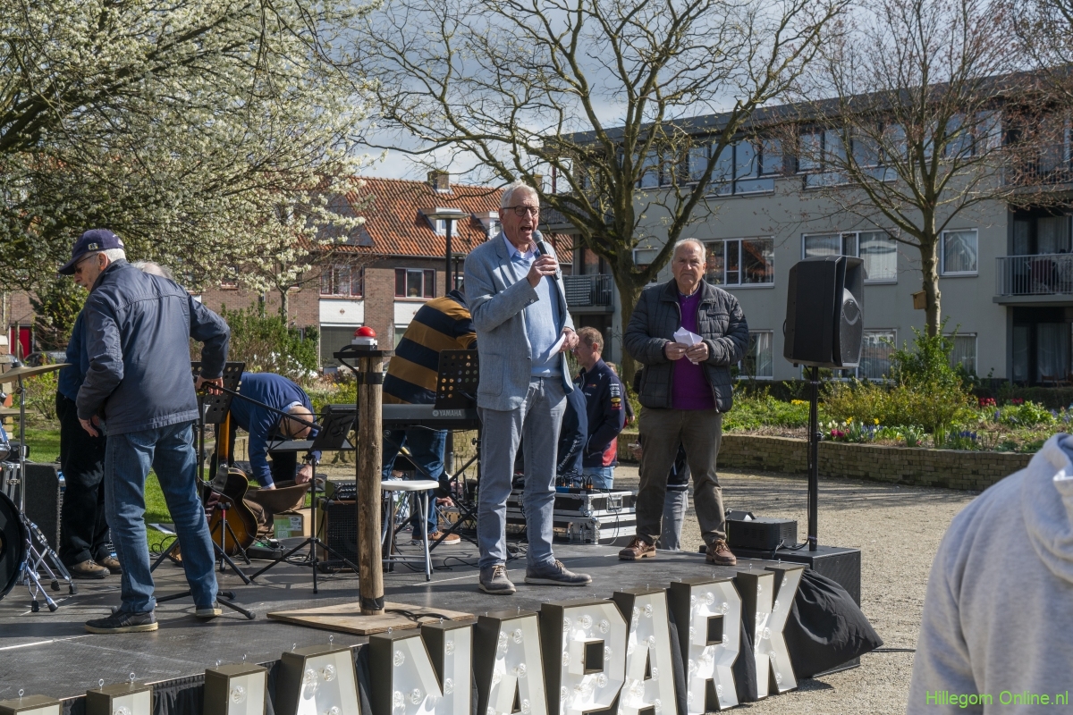 Rond 16.00 uur was daar eindelijk het moment. Eerst zorgde de Hillegomse Hangkousen, het blaaskapel van de HHK, voor gezellige muziek en gevolgd door verschillende praatjes. De wethouder mocht uiteindelijk met een druk op de knop het park officieel openen, waarna confetti en een hoop rook tevoorschijn kwam. Helaas had het Hillegomse licht- en geluidsbedrijf een foutje gemaakt, waardoor er kleine plastic snippertjes in het park terecht kwamen. De organisatoren wilde het park schoon houden door alleen lange slierten te gebruiken die makkelijk op te ruimen zijn.