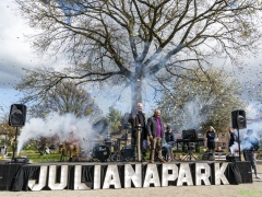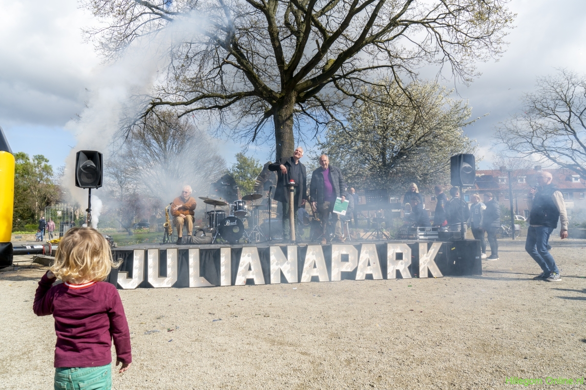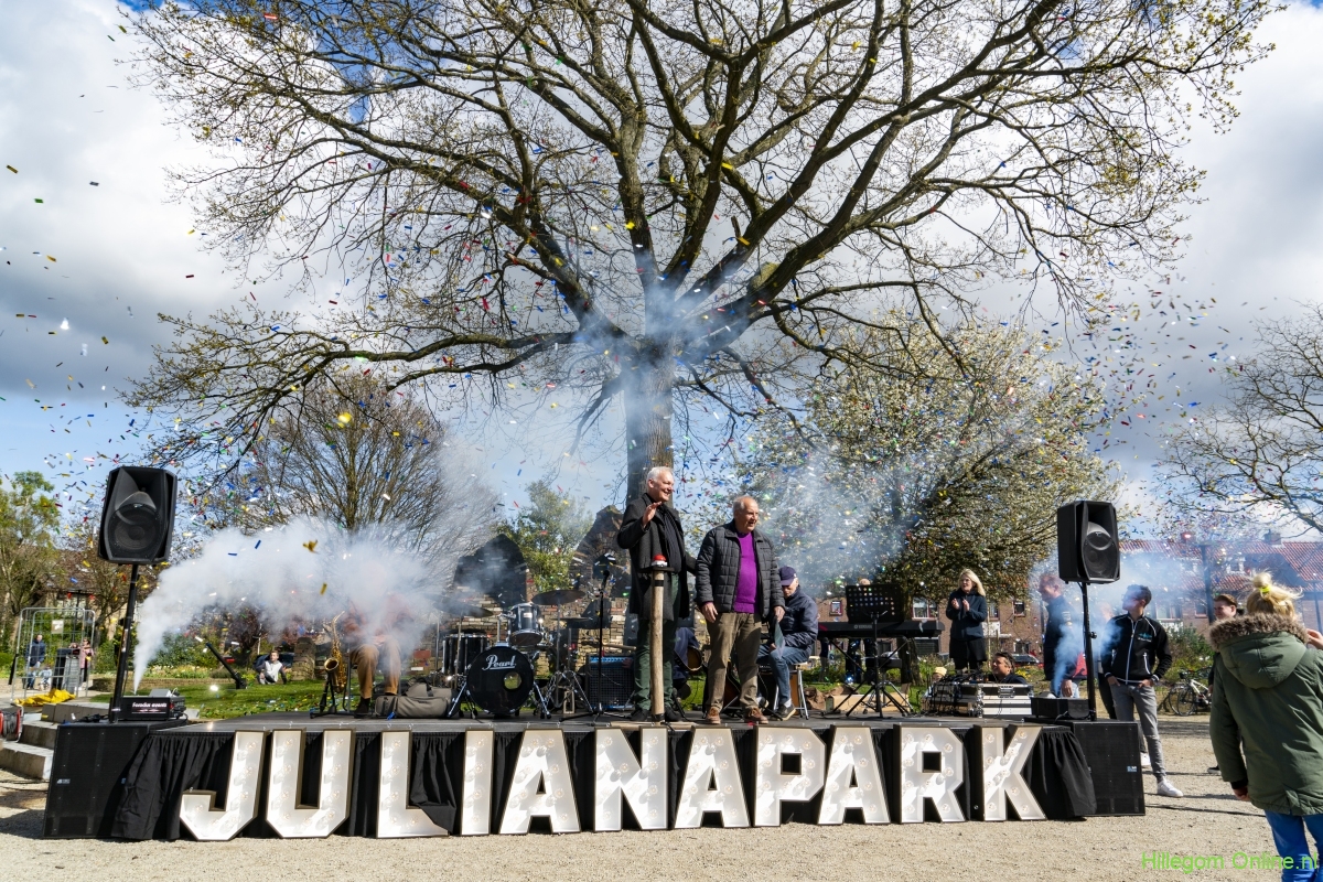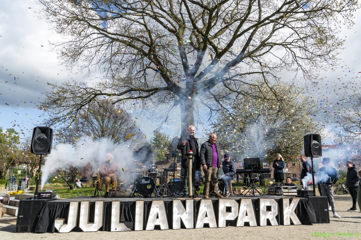 Hillegom – Het Julianapark ligt er al een tijd kleurrijk bij, maar afgelopen zaterdag is het park ook echt feestelijk geopend. De initiatiefnemers van het park hadden een gezellige middag georganiseerd met een springkussen, muziek en een hapje en een drankje.