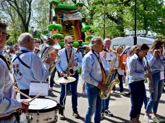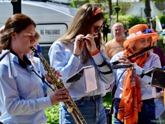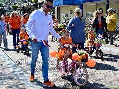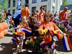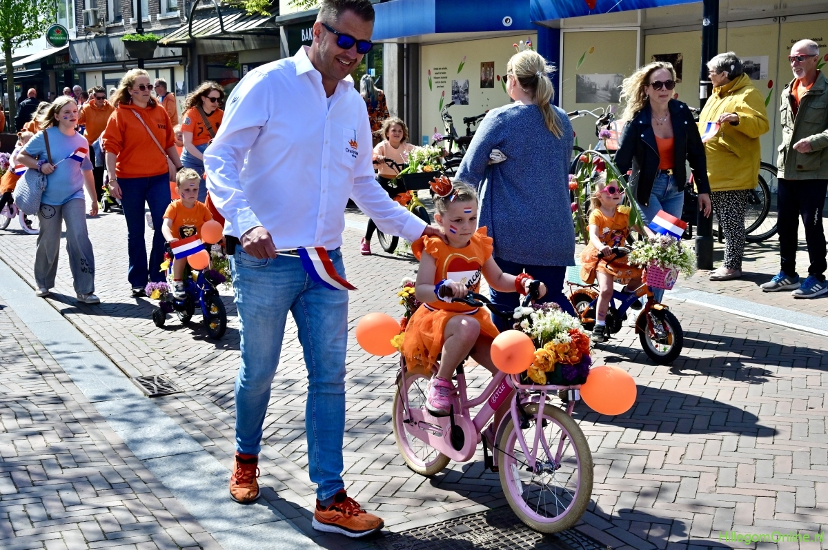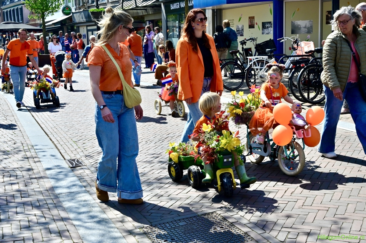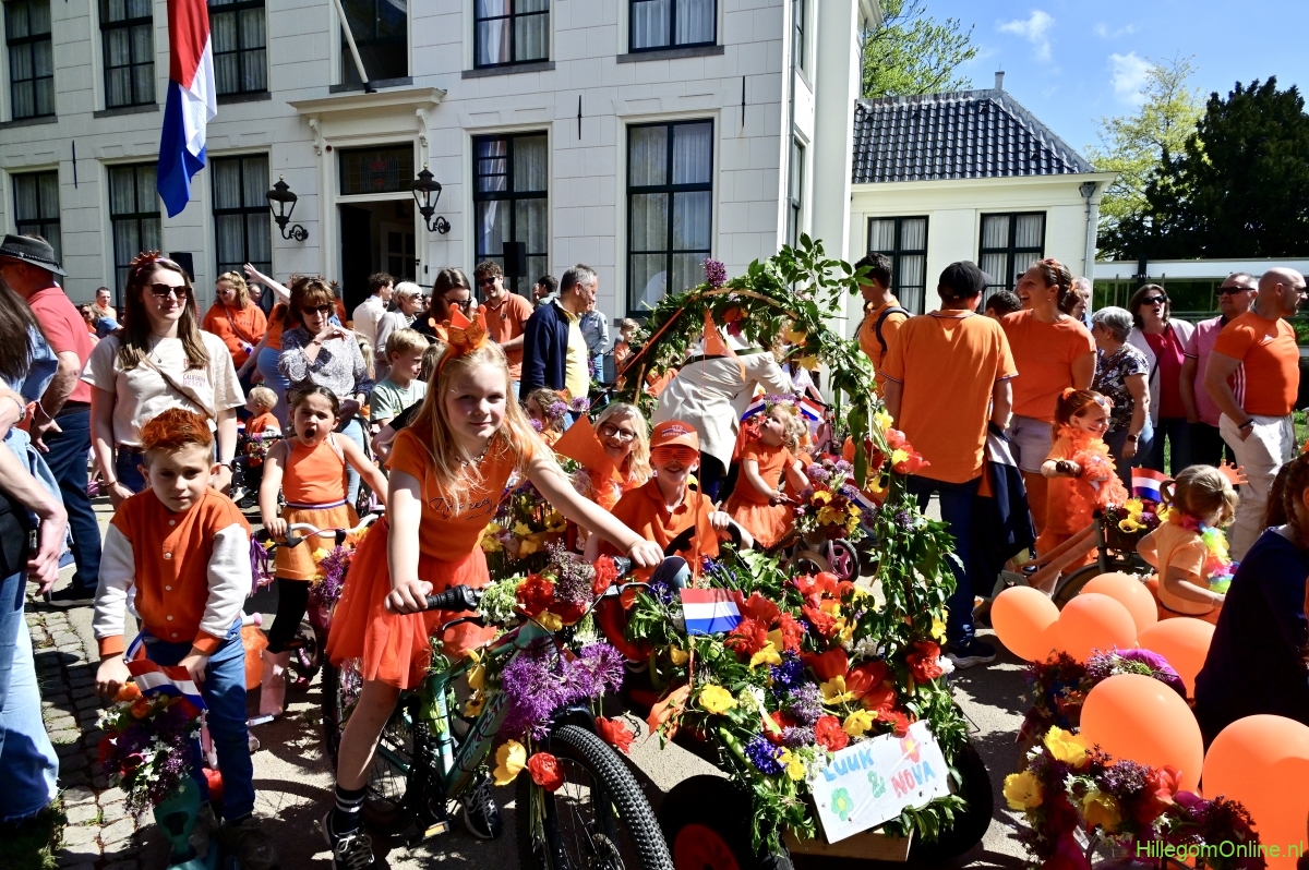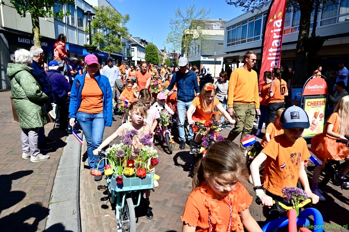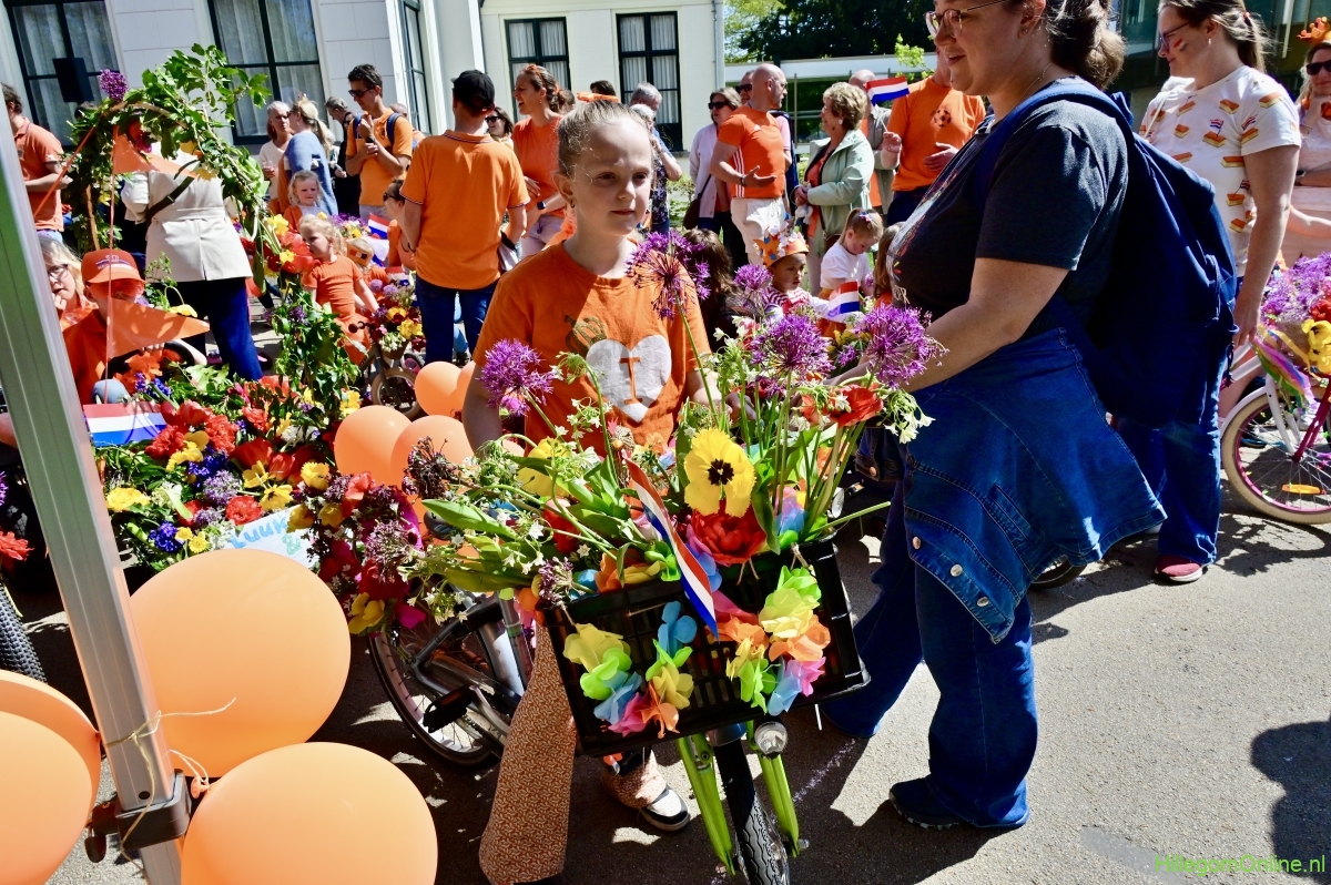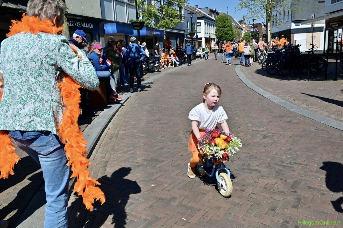 Toeschouwers genoten van de kleurrijke optocht, terwijl de kinderen enthousiast hun bloemversieringen toonden. De scoutinggroepen deelden vlaggetjes uit en de Hillegomse Harmonie zorgde voor muzikale begeleiding. Het was een feestelijke middag waarin de jonge deelnemers het Koningsdaggevoel op hun eigen, kleurrijke manier brachten!