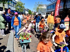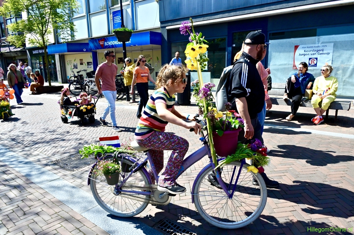 Het Kinderbloemencorso was weer een kleurrijk hoogtepunt van Koningsdag! Kinderen tot 10 jaar versierden hun fietsen, scooters en steps met prachtige bloemen en paradeerden door de straten van Hillegom. De route, die begon bij de Hoftuin en via de Hoofdstraat liep, was gevuld met vrolijke gezichten en bloemenpracht.