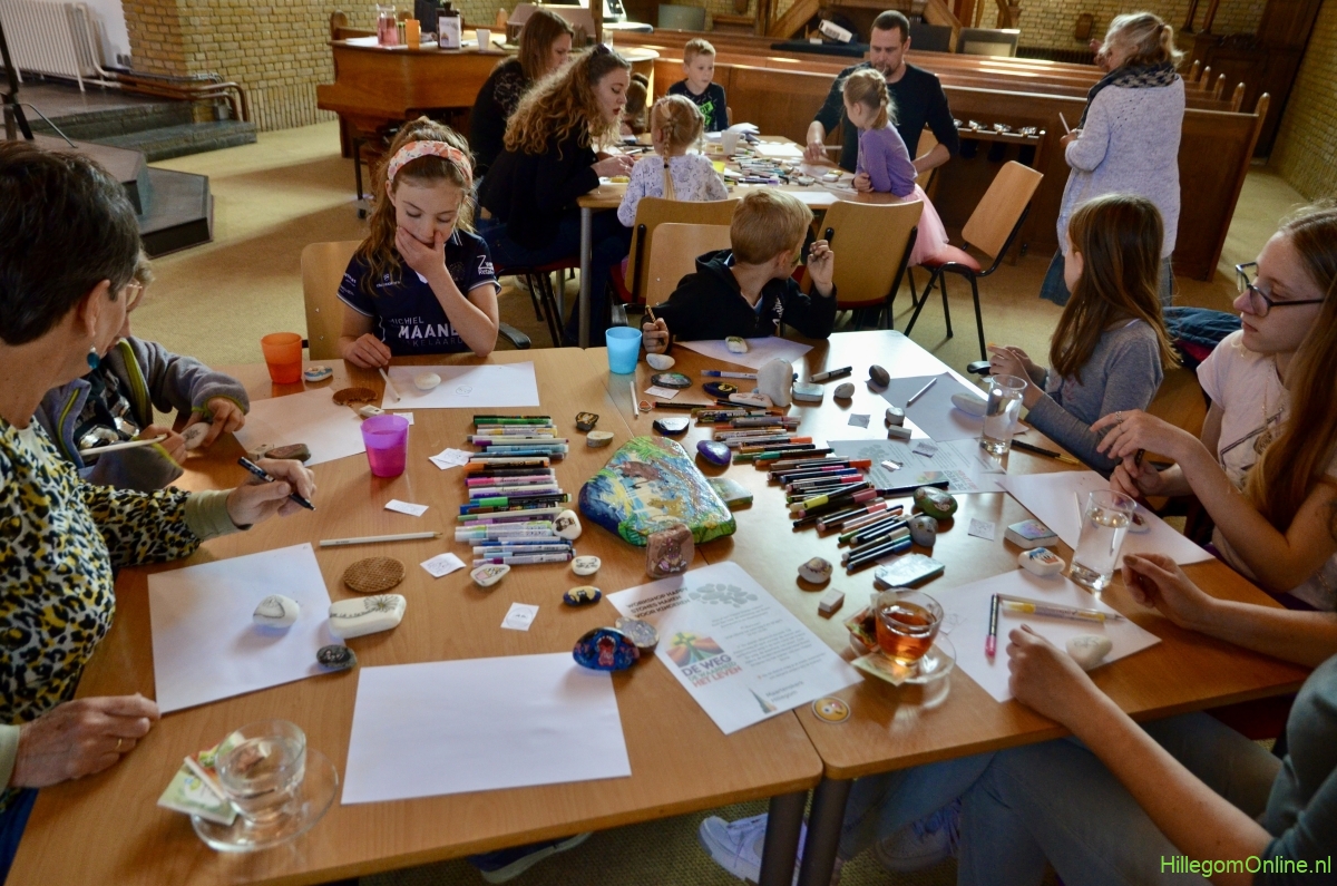 Hillegom – Zaterdag 5 april vond in de Maartenskerk de eerste workshop Happy Stones plaats, gegeven door Robin Zonneveld. Kinderen beschilderden met veel plezier kleurrijke stenen, die later een bijzondere plek krijgen in de Paasviering. Volgende week zaterdag 12 april, van 12.00 tot 15.00 uur, is er nog een kans om mee te doen!