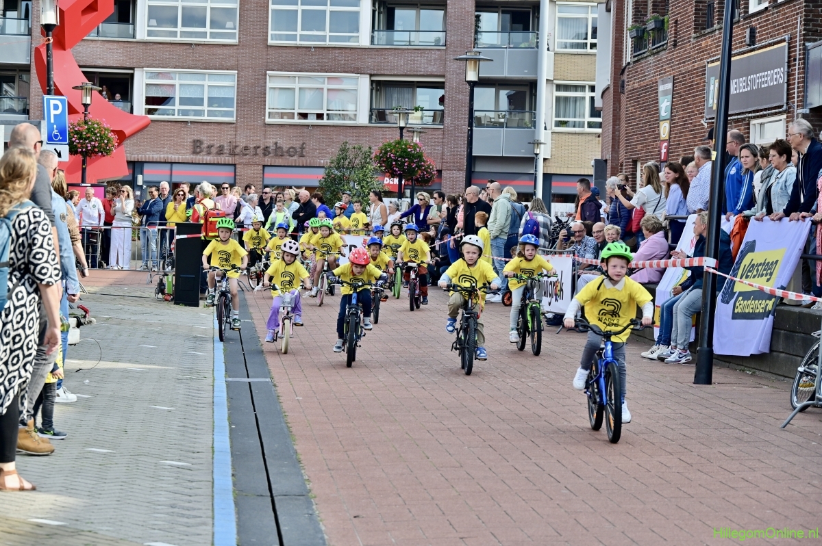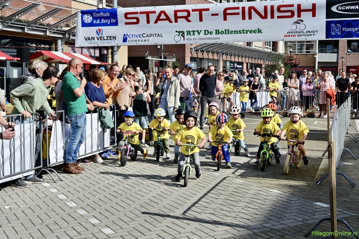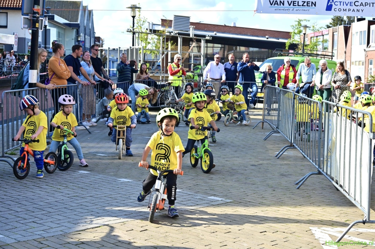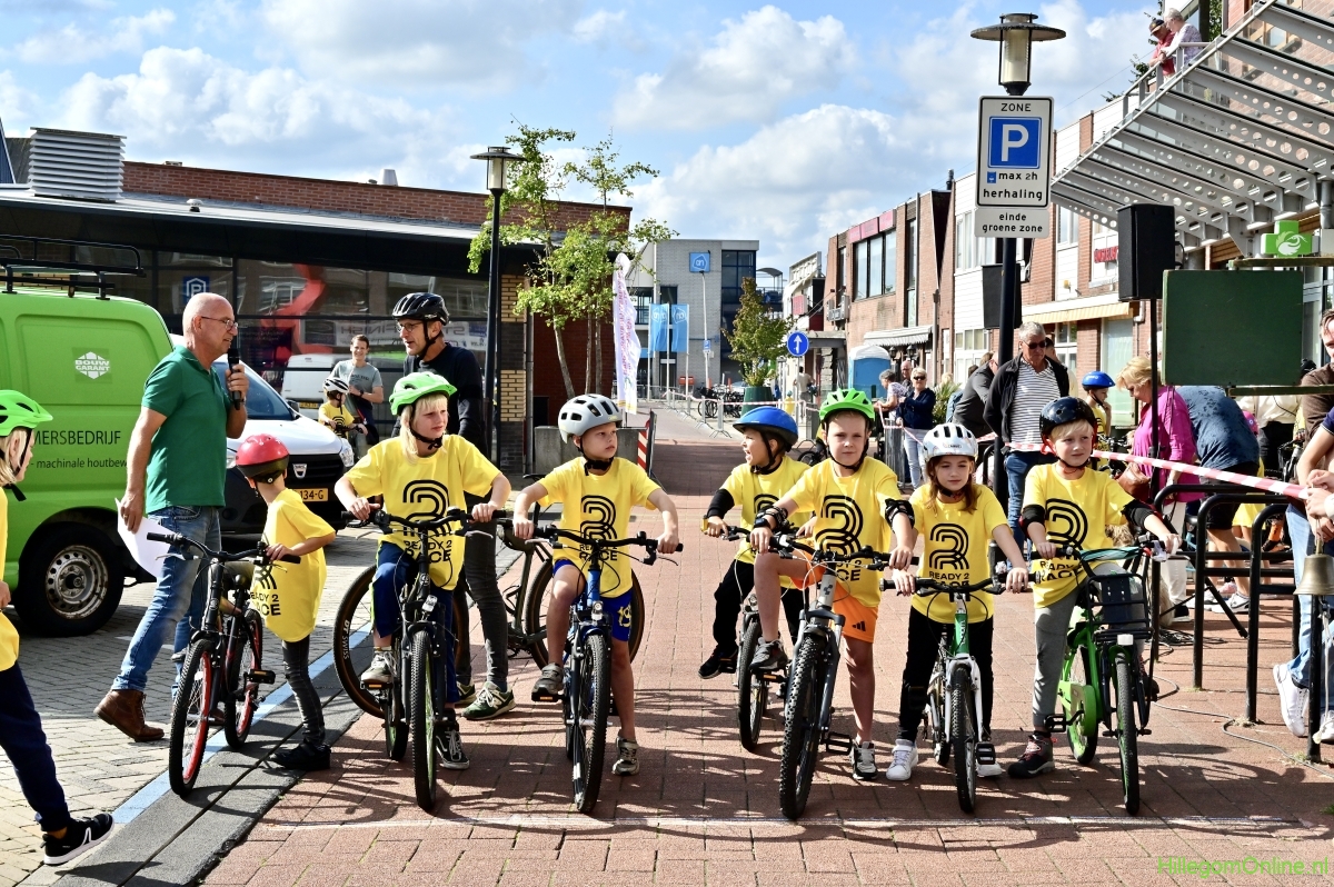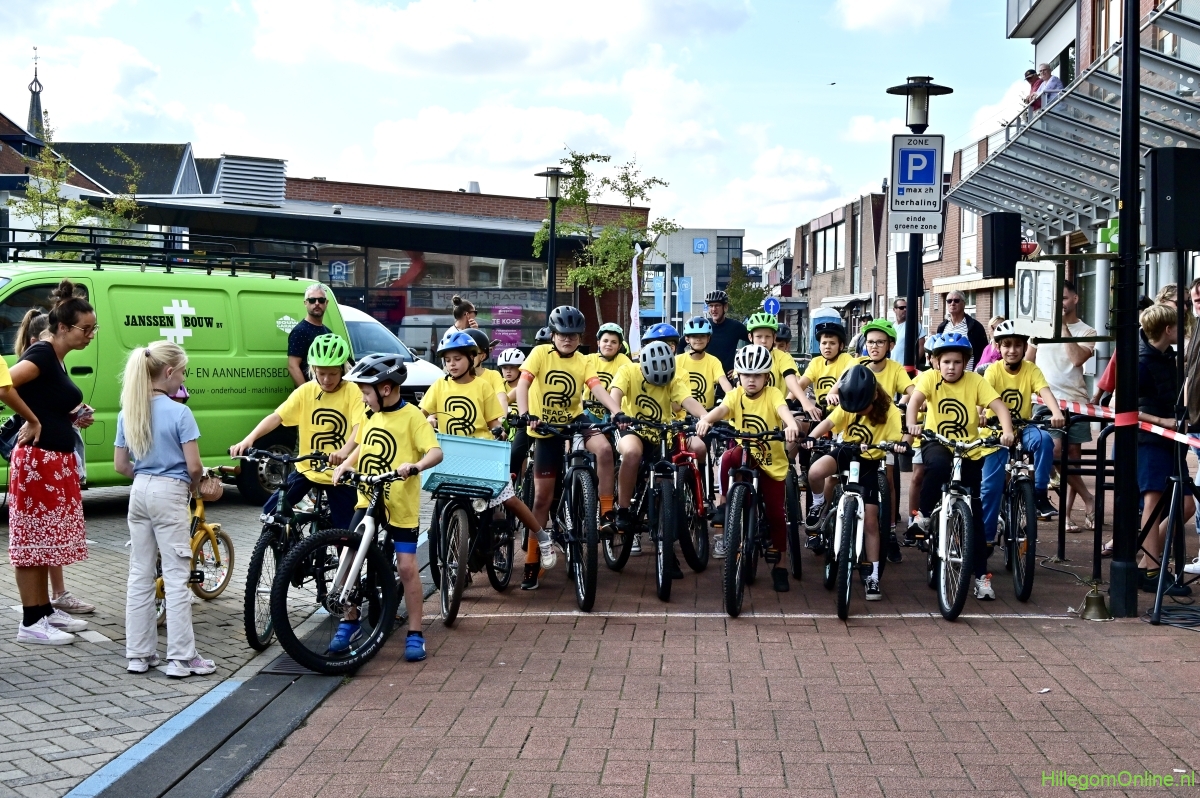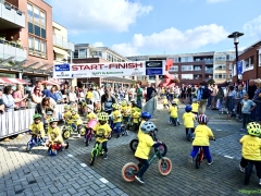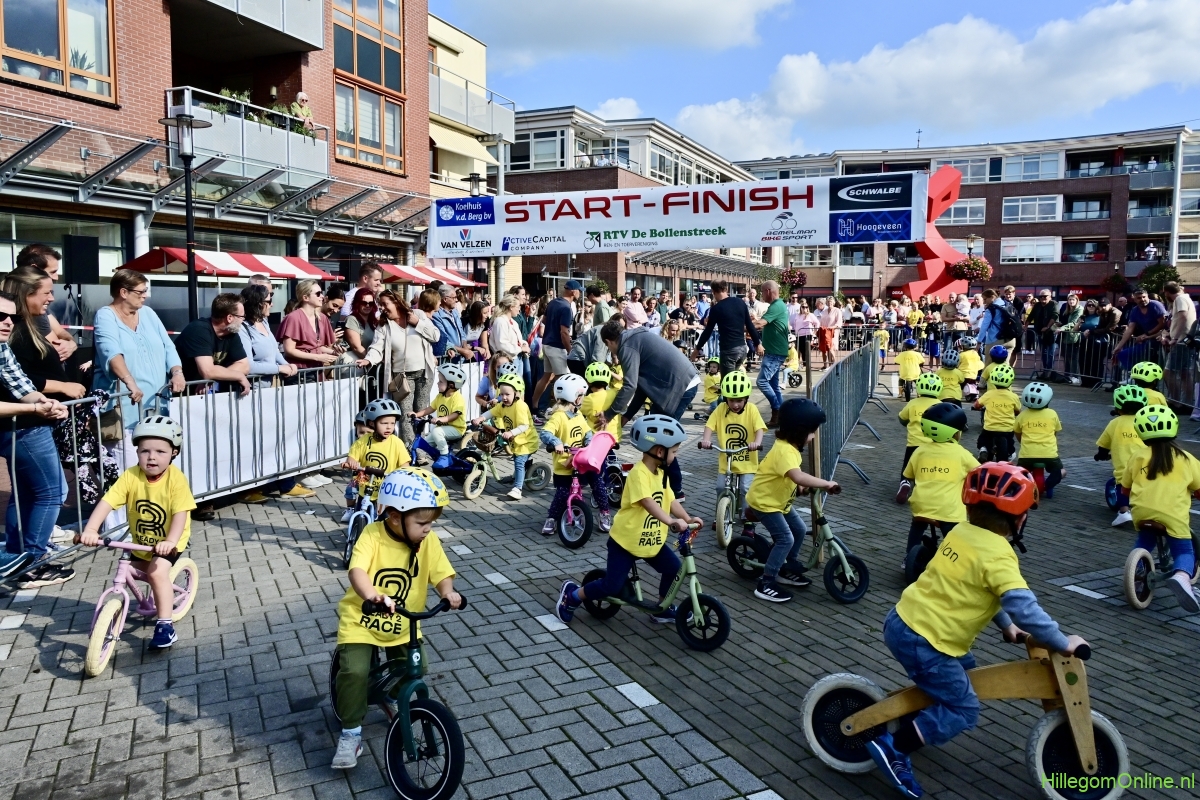 Hillegom – Op het Henry Dunantplein waren verschillende wielerrondes uitgezet. In het midden die voor de hummeltjes op hun loopfietsen. En een grotere ronde voor de dikke bandenrace die in verschillende categorieën gereden werd. Elke leeftijdscategorie kreeg er een rondje bij.