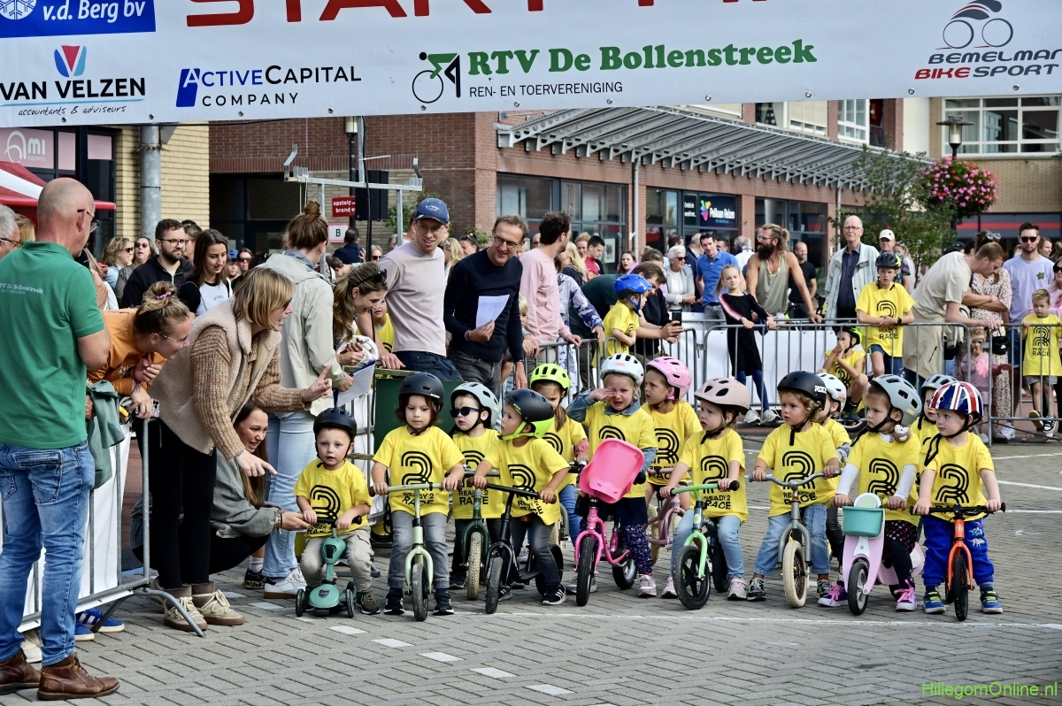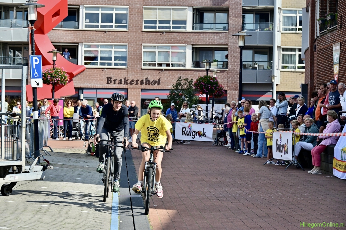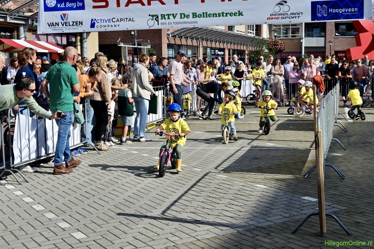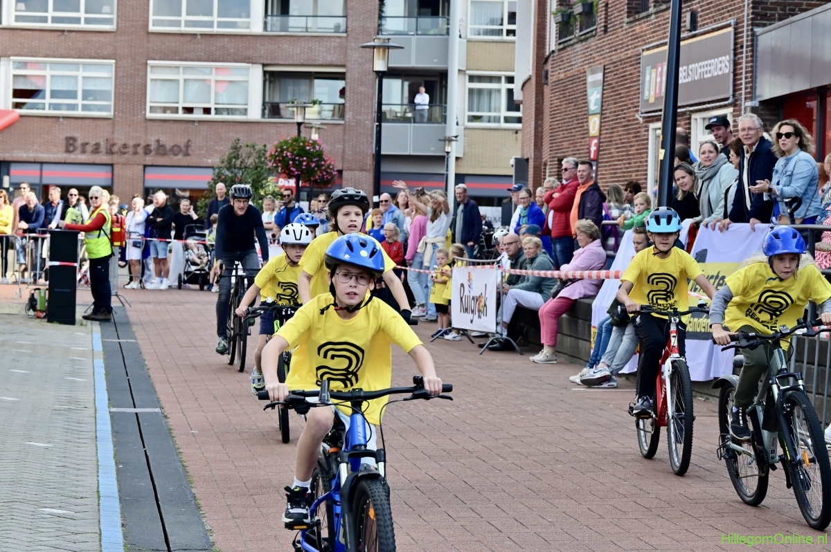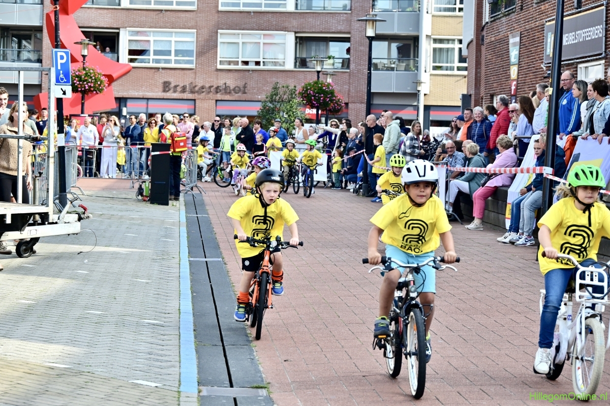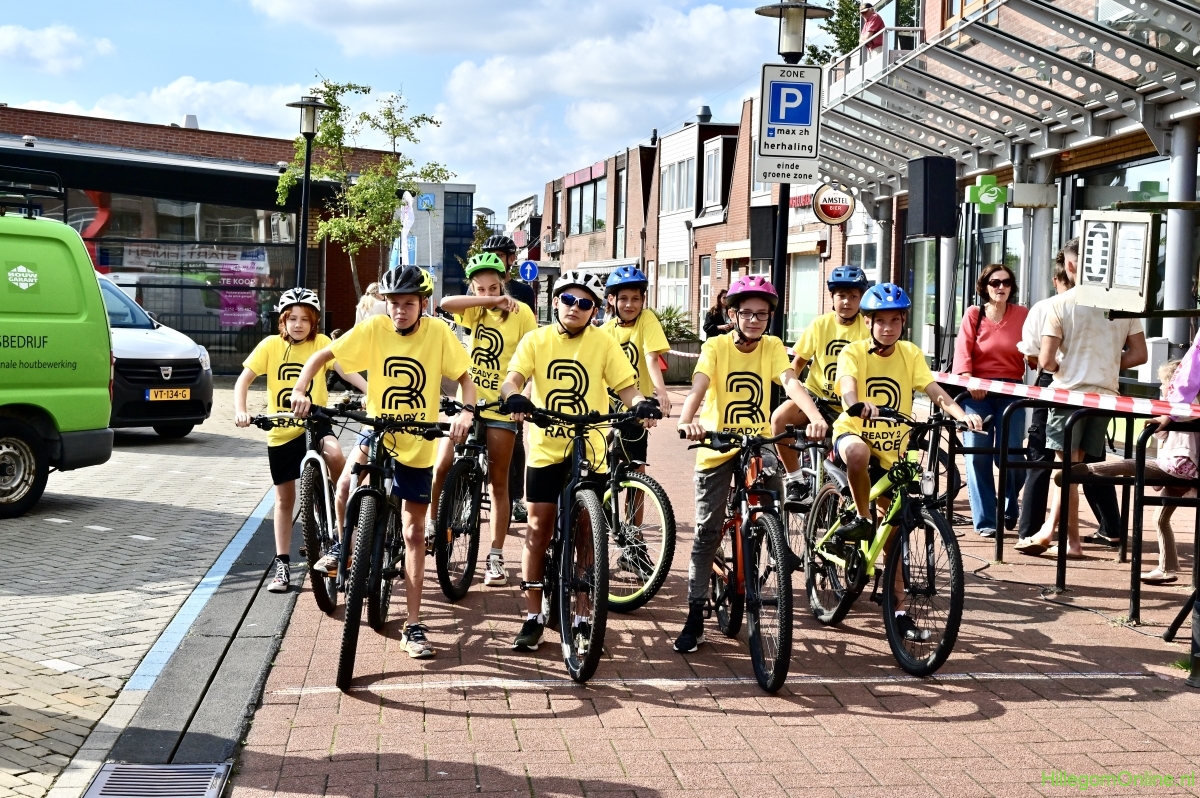 Hillegom – Op het Henry Dunantplein waren verschillende wielerrondes uitgezet. In het midden die voor de hummeltjes op hun loopfietsen. En een grotere ronde voor de dikke bandenrace die in verschillende categorieën gereden werd. Elke leeftijdscategorie kreeg er een rondje bij.