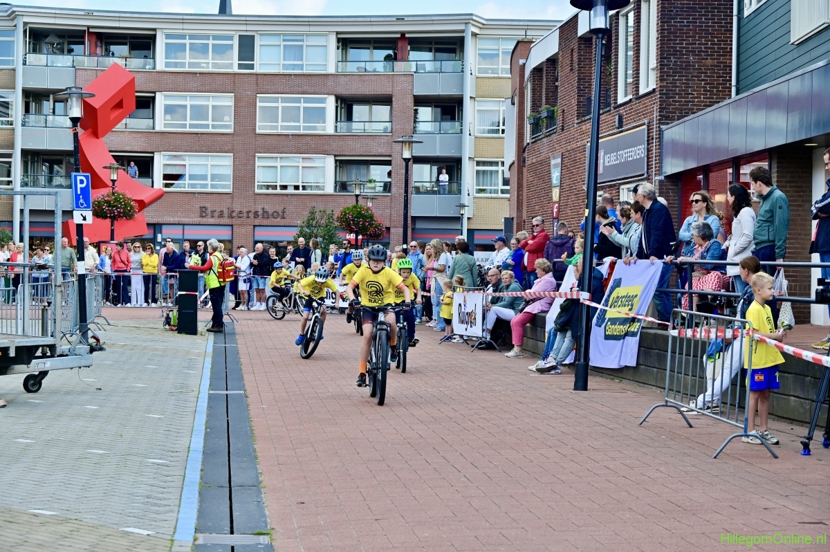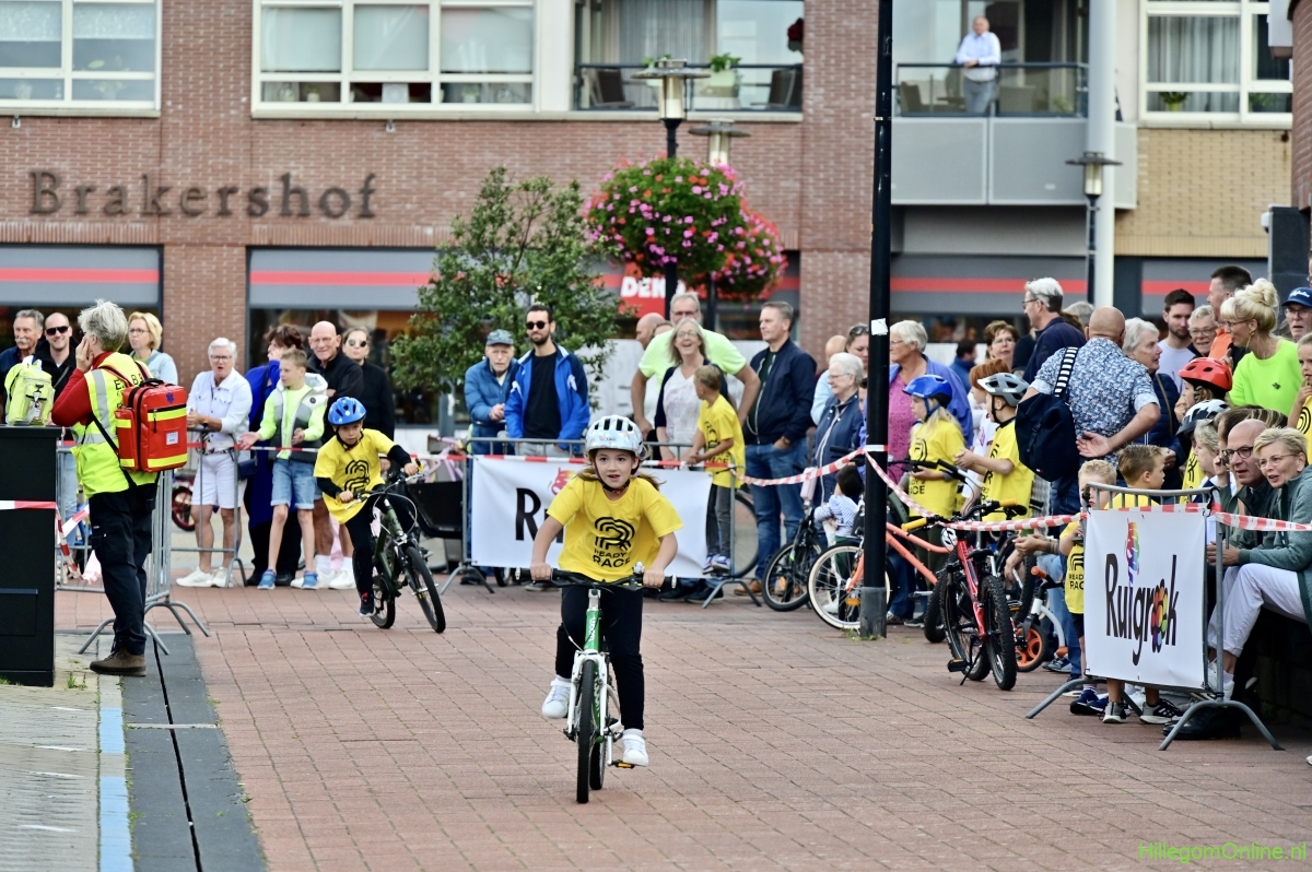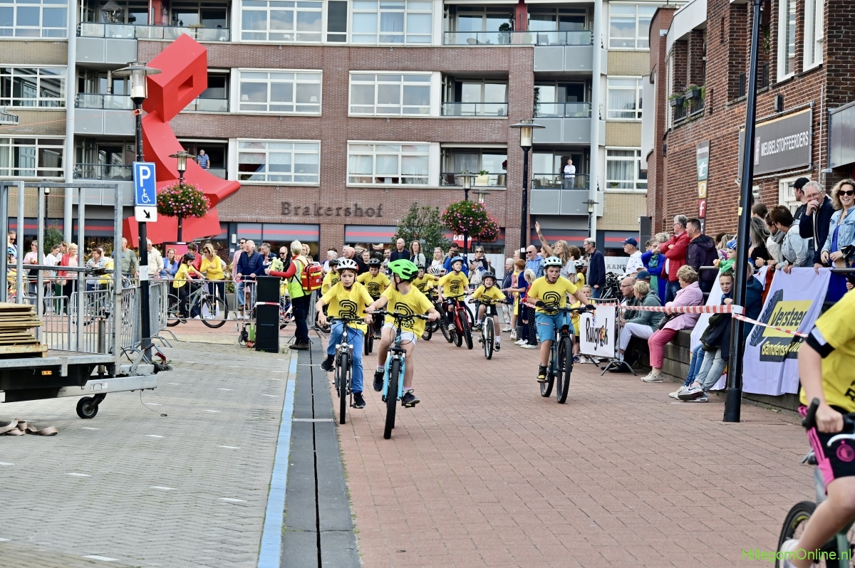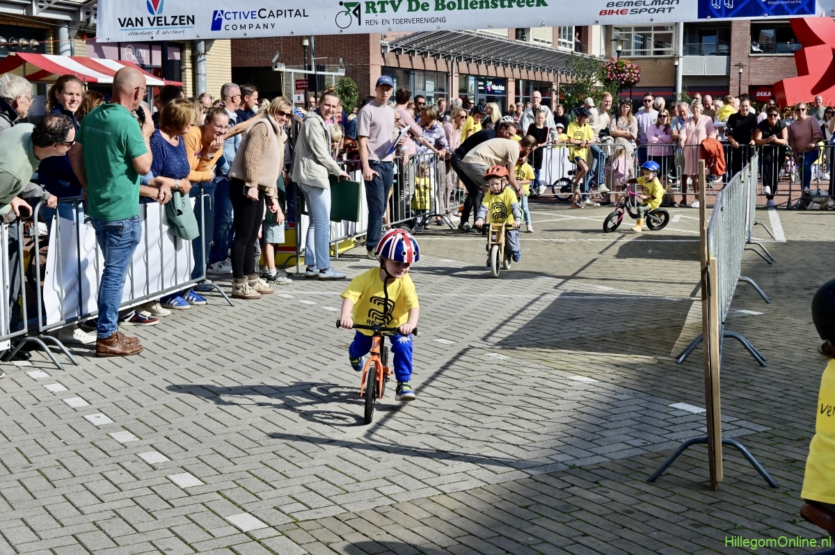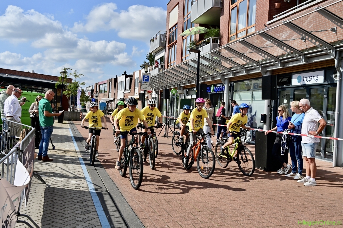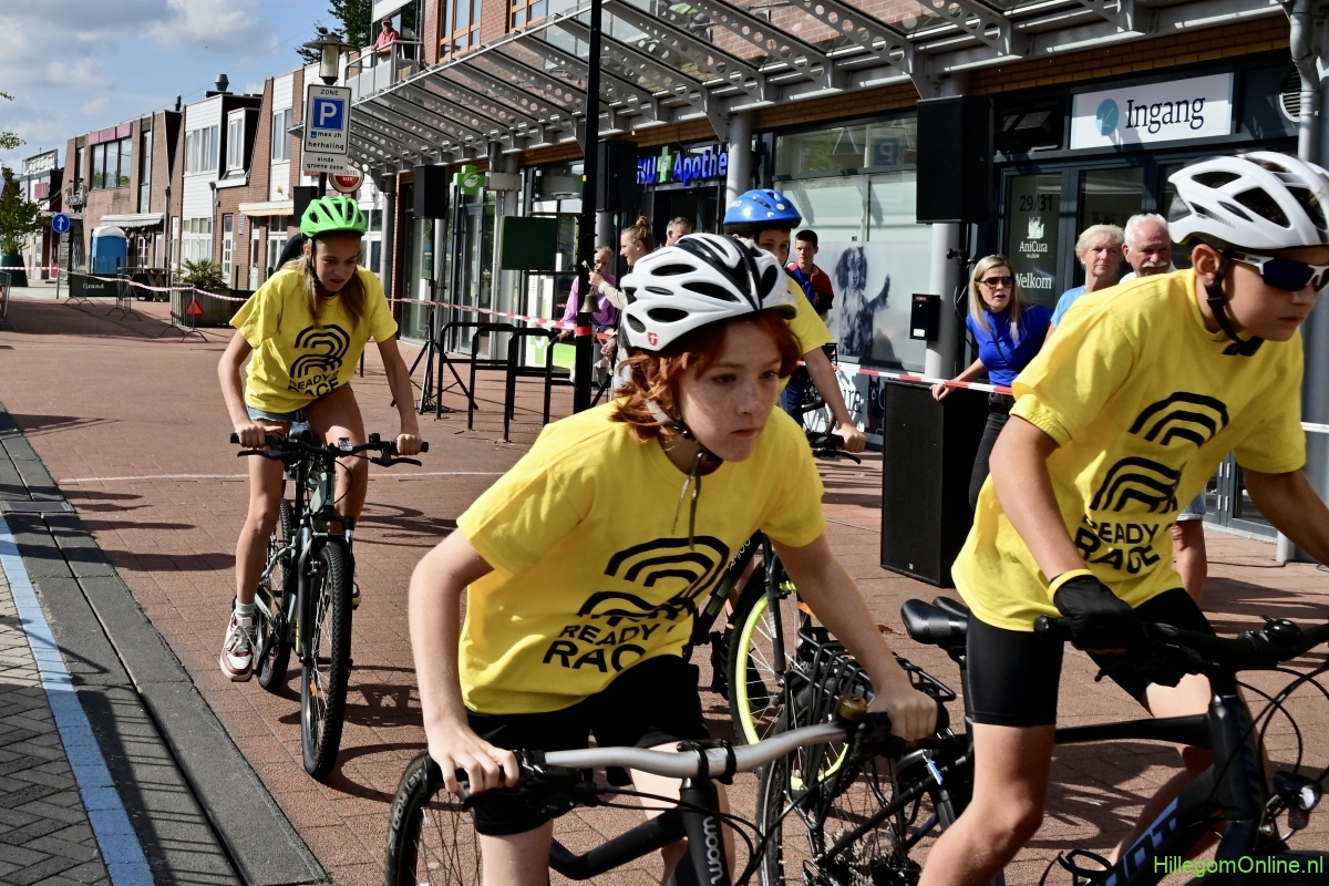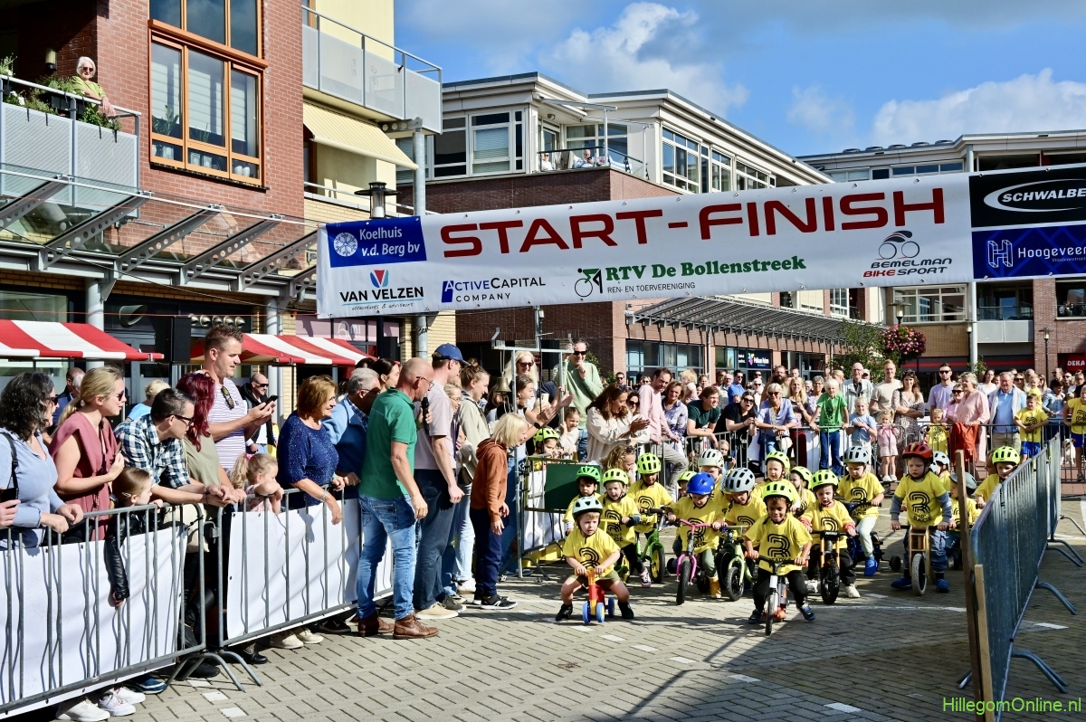Hillegom – Op het Henry Dunantplein waren verschillende wielerrondes uitgezet. In het midden die voor de hummeltjes op hun loopfietsen. En een grotere ronde voor de dikke bandenrace die in verschillende categorieën gereden werd. Elke leeftijdscategorie kreeg er een rondje bij.